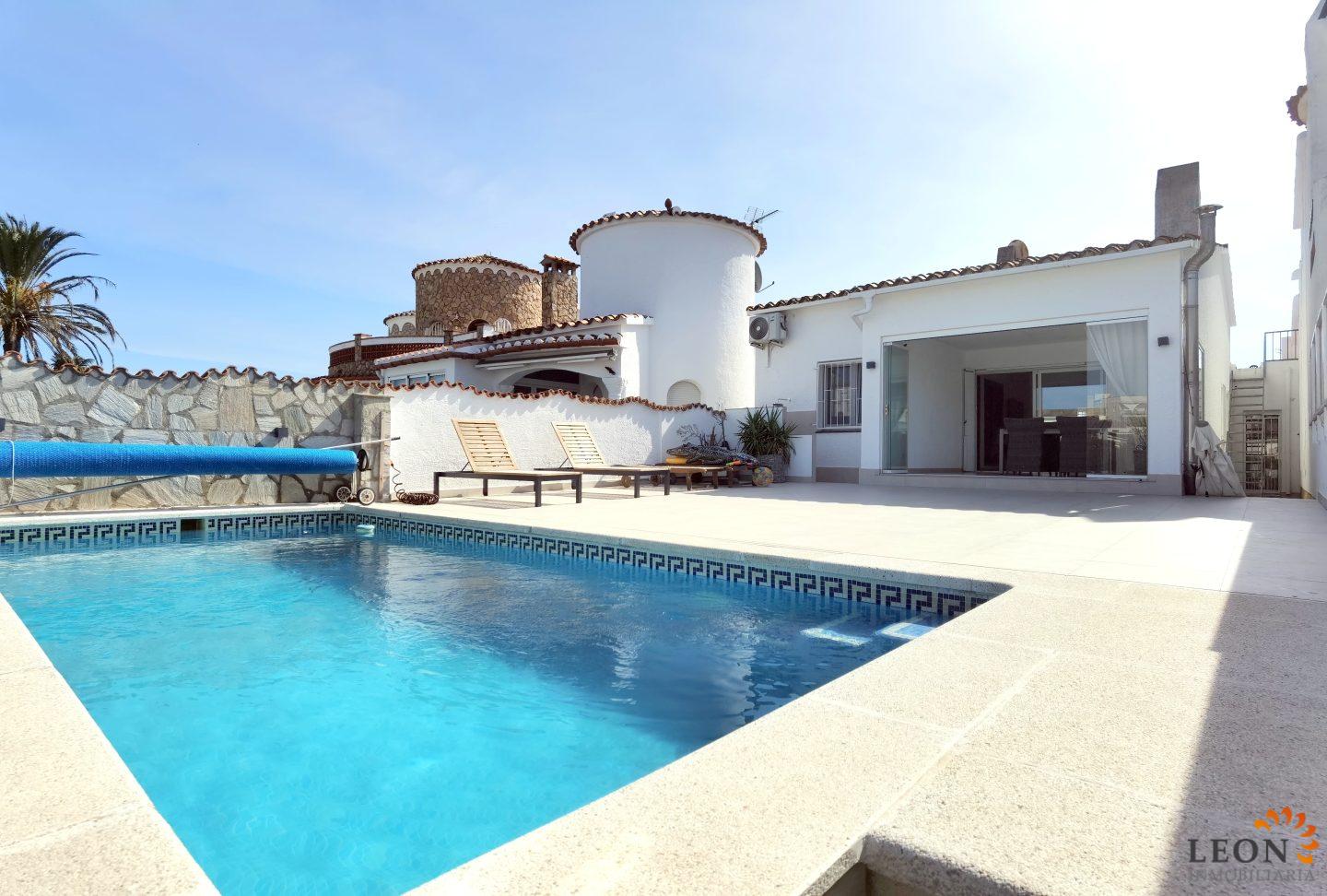 Modernisiertes Haus mit 8,5⬯m Liegeplatz, bezugsfertig. Zwei Suiten und ein zusätzlicher Raum als Gästezimmer oder Waschküche. Offene Küche mit Insel und Kamin im Wohnbereich. Verglaste Terrassen und große Sonnenterrasse im Obergeschoss. Alles auf einer Ebene, mit erhöhtem Sanitärbereich für Technik und Stauraum. Privater Pool, Außendusche, Garage, Stellplatz und zwei Abstellräume. Doppelverglaste Aluminiumfenster, Klimaanlage und Zentralheizung. Empuriabrava und Umgebung verfügen über eine sehr gute Infrastruktur. Der vor mehr als 40 Jahren entstandene Ort hat sich im Laufe der letzten Jahrzehnte zum Paradies für Feriengäste, Wassersport-Fans und Skydiver entwickelt. €Sber die Kanäle der Stadt fahren Sie mit dem Boot direkt zu Ihrem Liegeplatz, auch eine herrliche Ausfahrt aufs Mittelmeer zu den wunderschönen und abwechslungsreichen Buchten der Costa Brava. Zusätzlich bieten Empuriabrava und Umgebung grenzenlose Freizeitmöglichkeiten wie Fallschirmspringen, alle Arten von Wassersportaktivitäten und Golf, als auch eine reiche Auswahl von kulturellen Attraktionen, wie z.B. das Dali-Museum in Figueres, die Ruinen von Ampurias und das Kloster von Sant Pere de Rodes. Für weitere Informationen zum Objekt oder andere Ferienimmobilien kontaktieren Sie bitte LEON INMOBILIARIA per E-Mail oder Telefon im Hauptbüro in Empuriabrava unter: 0034 / 972 45 00 37.