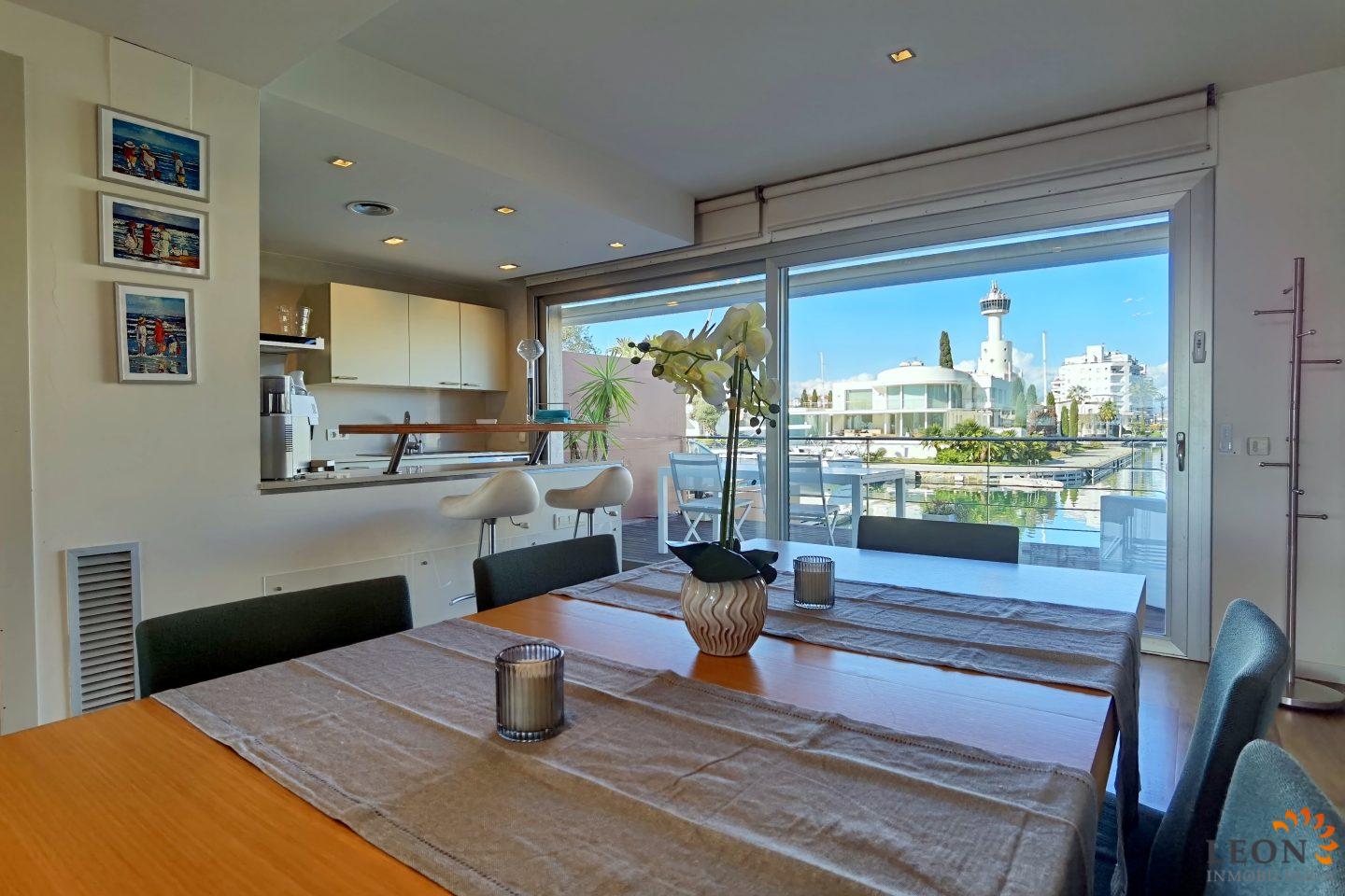 Zu verkaufen in Empuriabrava: Exklusive Immobilie in erster Meereslinie. Mit einem 15 m langen Bootsliegeplatz für Segelboote ist diese Residenz weit mehr als nur ein Haus – sie ist ein Lebensstil. Sie verfügt über einen hellen Wohn-Essbereich mit einer modernen, offenen Küche und Zugang zu einer herrlichen, gemütlichen Terrasse mit Blick auf den Anlegesteg und den Kanal. Die Immobilie umfasst 4 Schlafzimmer, 4 Badezimmer und einen privaten Pool, der für Erfrischung sorgt. Auf dieser prächtigen Dachterrasse, wo Himmel und Wasser verschmelzen, ist jeder Winkel darauf ausgelegt, genossen zu werden. Empuriabrava hat den größten Yachthafen Europas mit mehr als 25 Kilometern Schifffahrtskanälen und rund 5.000 Liegeplätzen. Darüber hinaus gilt Ampuriabrava als „Eldorado” für Fallschirmspringer. In diesem europäischen Zentrum für Fallschirmspringen können Sie sich auch das ganze Jahr über an Tandemsprüngen versuchen. Der Strand von Empuriabrava ist etwa 1,6 km lang, leicht abfallend, hell, mit feinem Sand und einer der breitesten der gesamten Costa Brava. Ideal für Erwachsene und Kinder. Die schönen Sandstrände von Empuriabrava, Rosas oder San Pedro Pescador laden zum Baden ein. Der Ort bietet eine Vielzahl von Sportarten (Tauchen, Segeln, Motorbootfahren, Windsurfen, Kitesurfen, Jetski, Wasserski, Hochseefischen, Angeln, Bowling, Fliegen, Fallschirmspringen, Reiten, Minigolf, Tennis, Kartbahn, Wandern, Boule). Neben dem Flugplatz gibt es einen Windkanal, in dem jeder fliegen kann, schon ab 4 Jahren! Das finden Sie kaum woanders in Europa, es ist absolut sensationell und sicher. Von der Bar/Restaurant aus können Sie auch die Flüge beobachten. Für weitere Informationen zu diesem Objekt oder weiteren spanischen Immobilien kontaktieren Sie bitte LEON INMOBILIARIA per E-Mail oder Telefon im Hauptbüro in Empuriabrava unter: 0034 / 972 45 00 37.