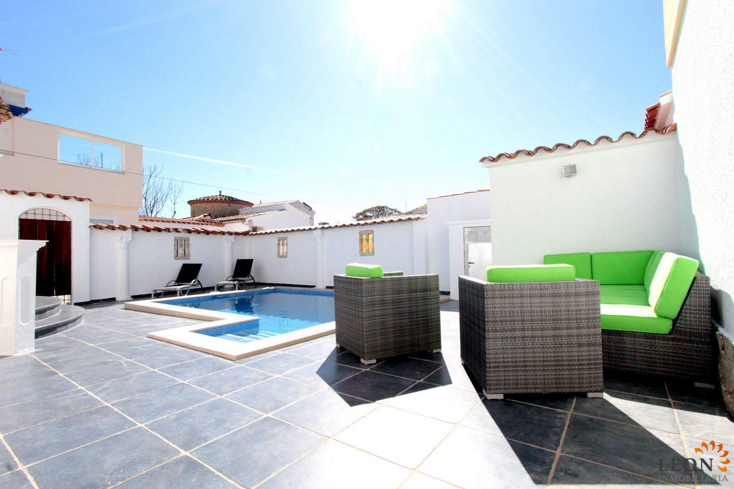 stilvolle, moderne Villa zu Verkaufen in Empuriabrava auf einem 239 m² großen, pflegeleichten Grundstück vereint maximaler Komfort. Mit 79 m² optimal aufgeteilter Wohnfläche ist dieses Objekt sowohl als exklusiver Erstwohnsitz als auch als renditestarke Ferienimmobilie perfekt geeignet. Das Herzstück des Hauses ist der lichtdurchflutete, offene Wohn- und Essbereich mit integrierter, voll ausgestatteter Küche (inkl. Geschirrspüler und Mikrowelle). Eine moderne Klimaanlage sorgt hier ganzjährig für das ideale Wohlfühlklima. Die Aufteilung umfasst zwei gemütliche Schlafzimmer, darunter eine Suite mit eigenem Bad, sowie ein zweites, separates Badezimmer. Der Außenbereich ist eine private Oase mit einer herrlich überdachten Terrasse die zu geselligen Grillabenden einlädt, während der private Pool für Erfrischung sorgt. Dank der elektrischen Rollläden und der durchdachten Grundstücksgestaltung genießen Sie im Inneren und auf der Terrasse eine geschützte, private Atmosphäre. Komplett abgeschlossenes Grundstück mit 2 bequemen Parkplätzen, Klimaanlage im Wohnbereich, Waschmaschine, internationales Satelliten-TV. Wo mediterraner Lifestyle und Abenteuer zu Hause sind. Empuriabrava, das „Venedig Spaniens“, ist weit mehr als nur einer der größten Yachthäfen der Welt – es ist ein pulsierendes Urlaubsparadies mit einer Infrastruktur, die keine Wünsche offen lässt. Freizeit und Kulinarik direkt vor der Tür: Die Umgebung besticht durch eine außergewöhnliche Vielfalt an Freizeitmöglichkeiten. Genießen Sie eine Bootsfahrt durch die malerischen Kanäle, entdecken Sie den weitläufigen Sandstrand oder nutzen Sie das erstklassige Angebot an Wassersport, Radwegen und Wanderpfaden im nahegelegenen Naturschutzpark „Aiguamolls“. Für Adrenalin-Fans ist das weltberühmte Skydive-Zentrum nur wenige Minuten entfernt. Kulinarisch bietet Empuriabrava eine beeindruckende Auswahl: Von charmanten Tapas-Bars und gemütlichen Cafés bis hin zu exklusiven Restaurants mit internationaler und mediterraner Küche ist alles bequem erreichbar. Dank der zentralen Lage profitieren Sie von kurzen Wegen zu allen Einkaufsmöglichkeiten und Dienstleistungen des täglichen Bedarfs. Die Nähe zu den Pyrenäen und der französischen Grenze macht diesen Standort zudem zu einem strategisch wertvollen Investment an der Costa Brava. Hier investieren Sie nicht nur in eine moderne Immobilie, sondern in ein Lebensgefühl voller Abwechslung und Genuss. Für weitere Informationen zu diesem Objekt oder weiteren spanischen Immobilien kontaktieren Sie bitte LEON INMOBILIARIA per E-Mail oder Telefon im Hauptbüro in Empuriabrava unter: 0034 / 972 45 00 37.