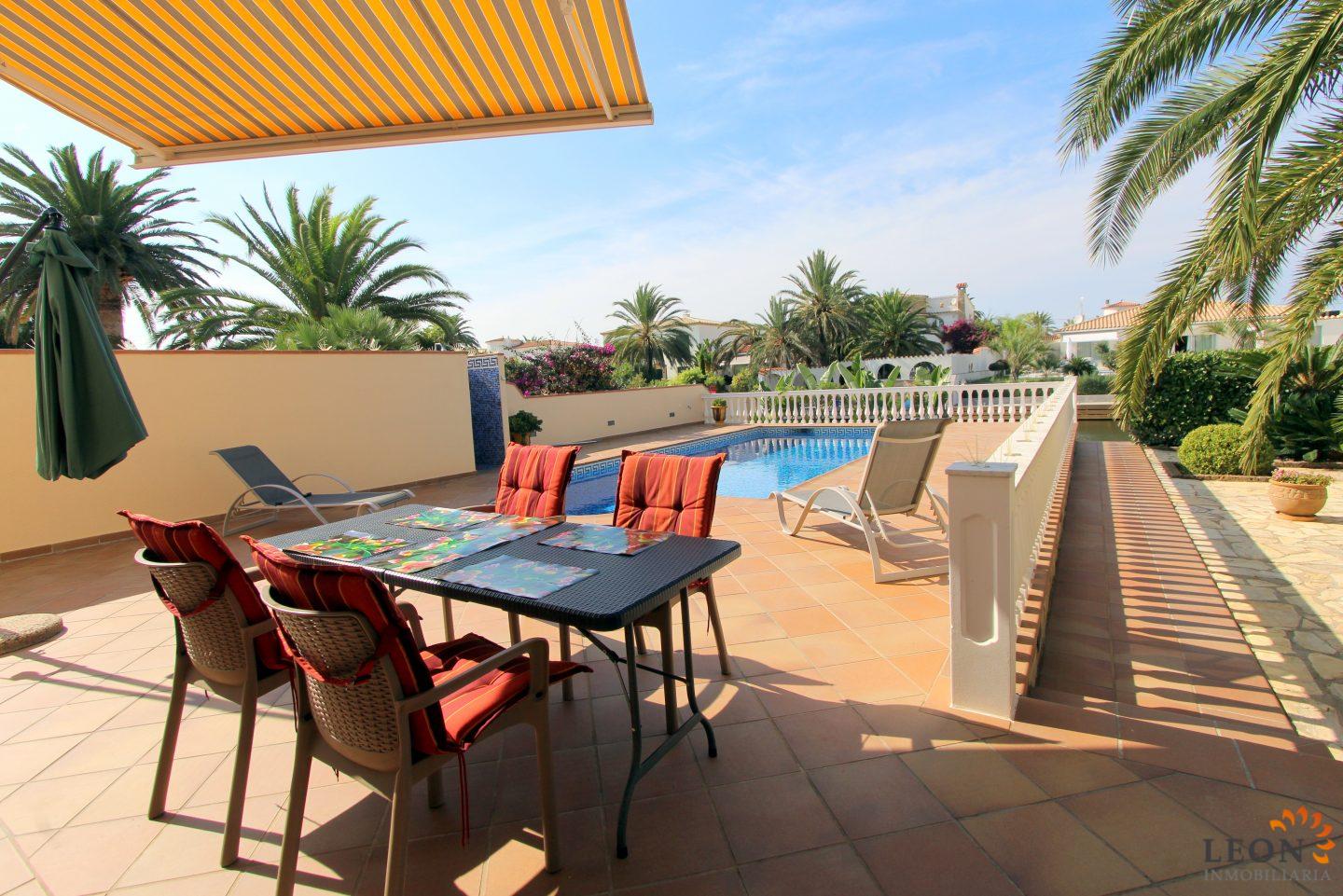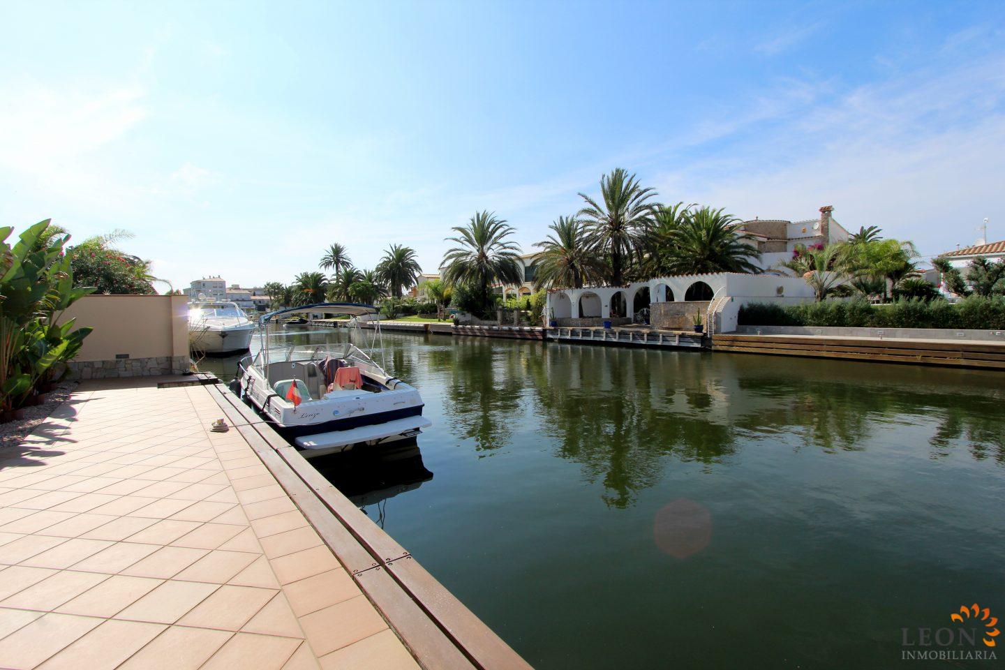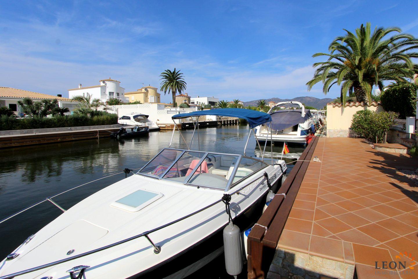 Casa de 3 habitacions al canal situada en un dels grans canals i prop del canal principal d'Empuriabrava. La planta baixa de la casa consta d'una gran cuina oberta totalment equipada, un saló-menjador amb vistes a la piscina i el canal, un lavabo de cortesia i un garatge. A la planta superior hi ha 2 dormitoris i un bany, a més d'un dormitori en suite amb terrassa amb vistes al canal i a la muntanya. La casa està equipada amb terra radiant, plaques solars per a l'aigua sanitària i la piscina, aire condicionat, finestres de PVC amb doble vidre. La casa es troba a pocs minuts de la bonica platja de sorra fina daurada, botigues, restaurants i bars, etc... Empuriabrava i els seus voltants ofereixen moltes activitats d'oci com ara paracaigudisme, esports aquàtics i snorkel, golf, així com un ampli varietat d'atraccions culturals. Empuriabrava és un fantàstic punt de partida per descobrir una gran varietat de platges de la Costa Brava així com per fer excursions al camp i visitar els fascinants pobles de l'interior. Per a més informació sobre aquesta propietat i altres immobles a Espanya, poseu-vos en contacte amb LEON INMOBILIARIA per correu electrònic o per telèfon a la nostra oficina central d'Empuriabrava: 0034 / 972 45 00 37.