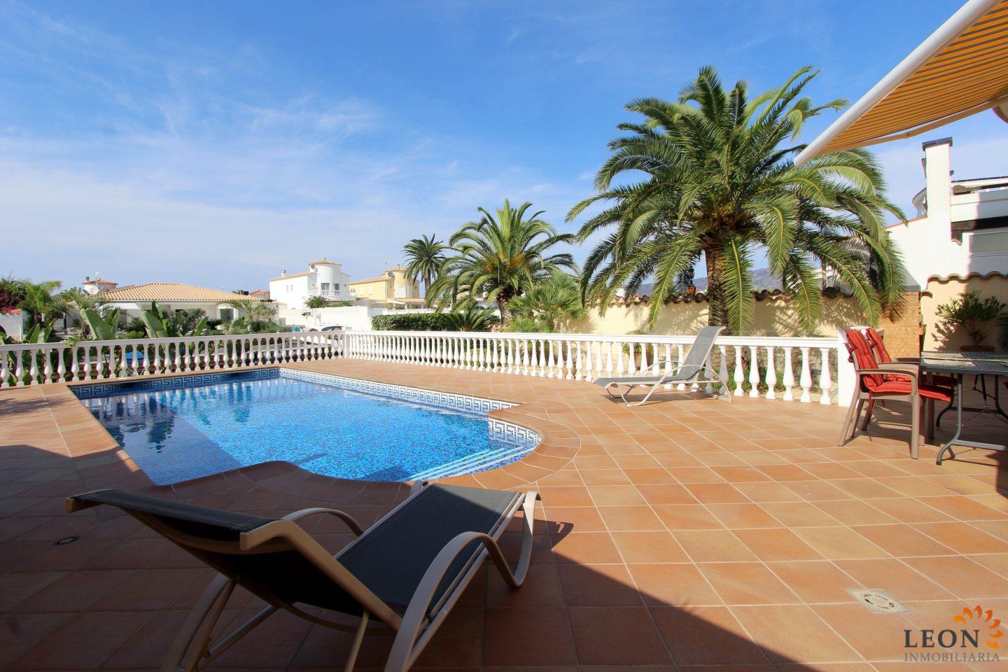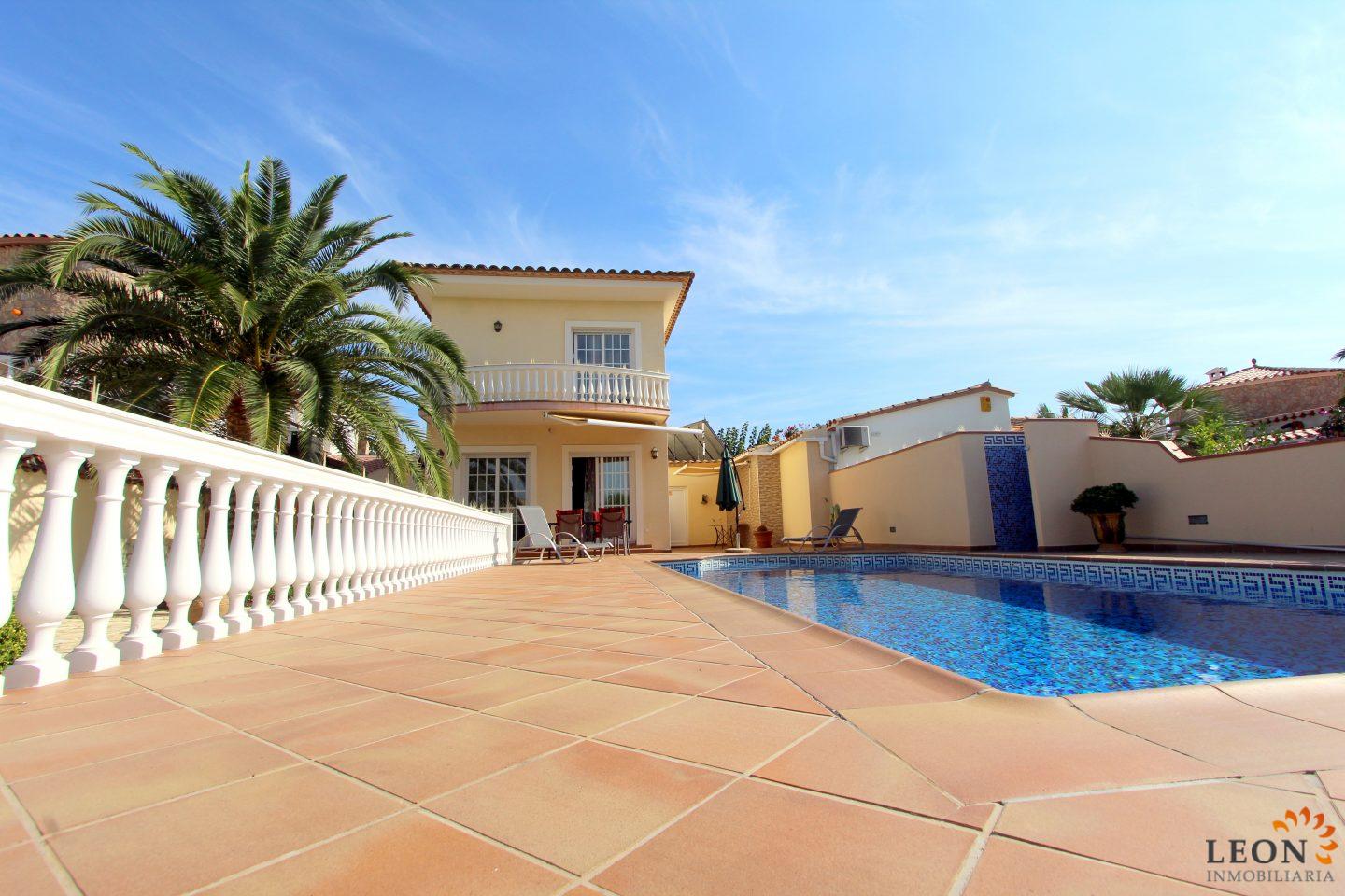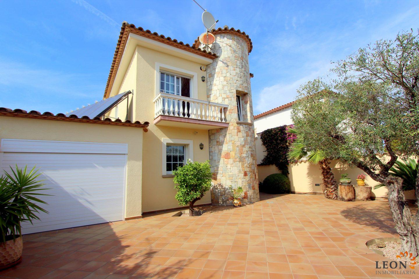 Casa de 3 habitacions al canal situada en un dels grans canals i prop del canal principal d'Empuriabrava. La planta baixa de la casa consta d'una gran cuina oberta totalment equipada, un saló-menjador amb vistes a la piscina i el canal, un lavabo de cortesia i un garatge. A la planta superior hi ha 2 dormitoris i un bany, a més d'un dormitori en suite amb terrassa amb vistes al canal i a la muntanya. La casa està equipada amb terra radiant, plaques solars per a l'aigua sanitària i la piscina, aire condicionat, finestres de PVC amb doble vidre. La casa es troba a pocs minuts de la bonica platja de sorra fina daurada, botigues, restaurants i bars, etc... Empuriabrava i els seus voltants ofereixen moltes activitats d'oci com ara paracaigudisme, esports aquàtics i snorkel, golf, així com un ampli varietat d'atraccions culturals. Empuriabrava és un fantàstic punt de partida per descobrir una gran varietat de platges de la Costa Brava així com per fer excursions al camp i visitar els fascinants pobles de l'interior. Per a més informació sobre aquesta propietat i altres immobles a Espanya, poseu-vos en contacte amb LEON INMOBILIARIA per correu electrònic o per telèfon a la nostra oficina central d'Empuriabrava: 0034 / 972 45 00 37.