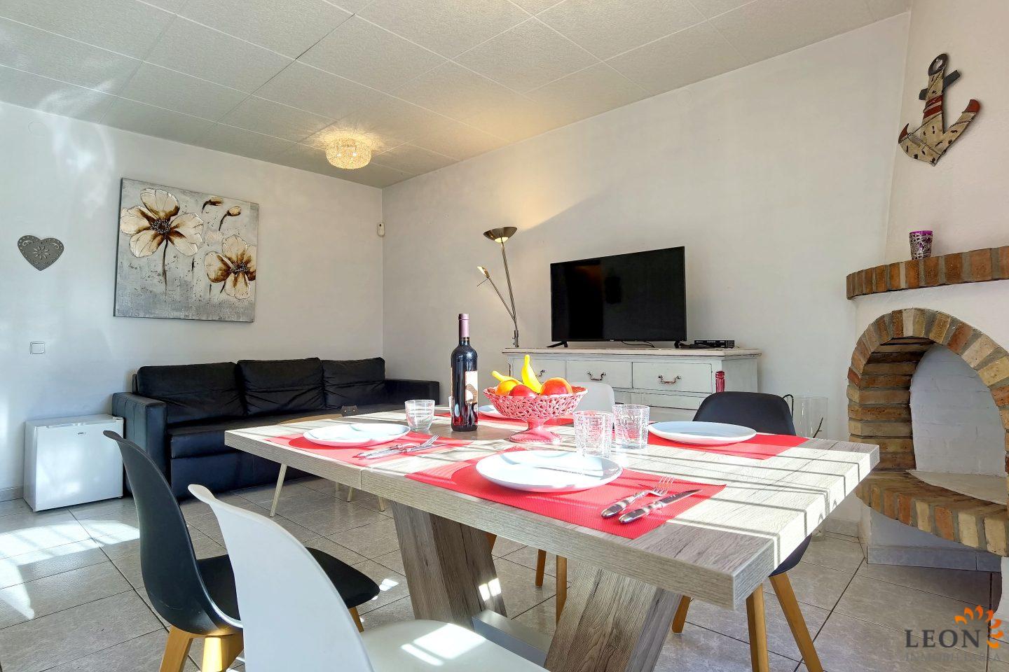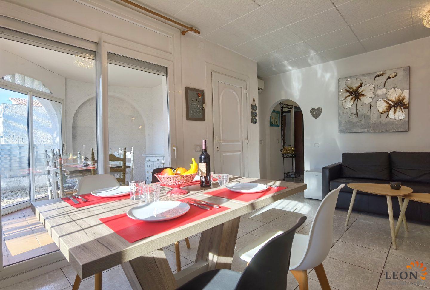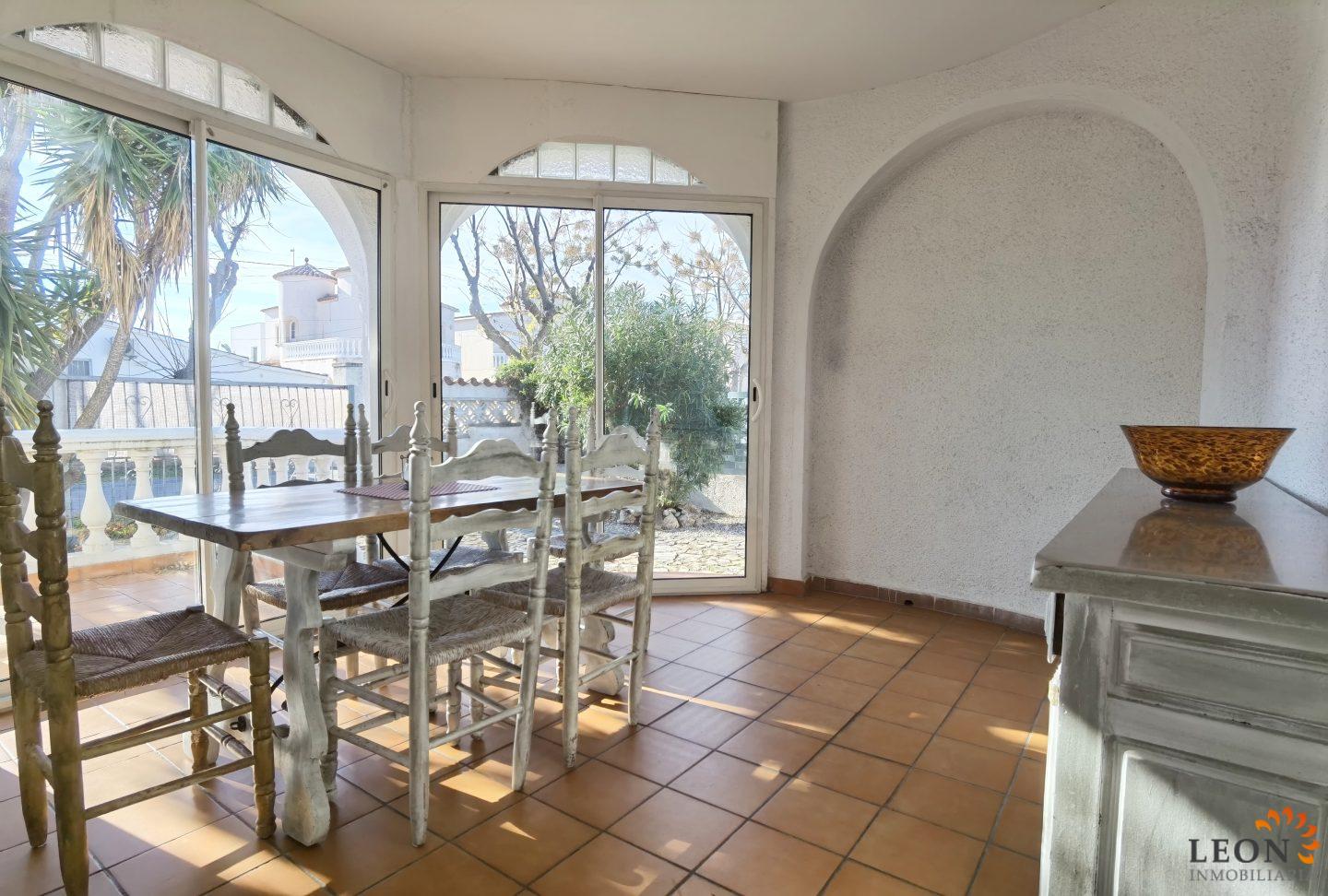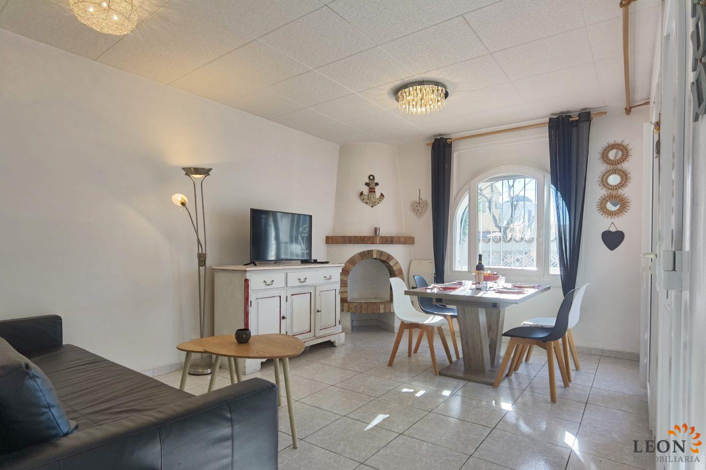 Aquesta acollidora casa adossada és a prop del centre d'Empuriabrava i consta de 2 dormitoris dobles, 1 bany, un ampli saló/menjador amb aire condicionat (reversible), SAT-TV (DE/FR/UK), una cuina totalment equipada amb rentavaixelles, rentadora al garatge. Des del menjador s´accedeix a la terrassa coberta, barbacoa, l´entrada al garatge (el garatge no és apte per a un cotxe) està pavimentada, parcel·la tancada amb possibilitat d´aparcament. Gràcies a la situació central de la casa, botigues, restaurants i la bonica platja de fina sorra es troben a tan sols uns minuts a peu. A més, Empuriabrava i els seus voltants l'ofereixen nombroses activitats d'oci com el paracaigudisme, diversos esports aquàtics i golf així com nombrosos llocs de gran interès cultural per visitar. A més de tots els esports nàùtics que el poble i els seus voltants posen a la seva disposició, a tan sols mitja hora en cotxe trobaran una gran selecció de llocs que val la pena visitar com el museu Dali a Figueres, el monestir de Sant Pere de Rodes i les ruïnes d'Empúries. Per obtenir més informació sobre aquesta propietat o sobre altres immobles de vacances, els hi preguem contactin LEON Inmobiliaria, per email, o per telèfon a la nostra agència central d'Empuriabrava: 0034 / 972 45 00 37.