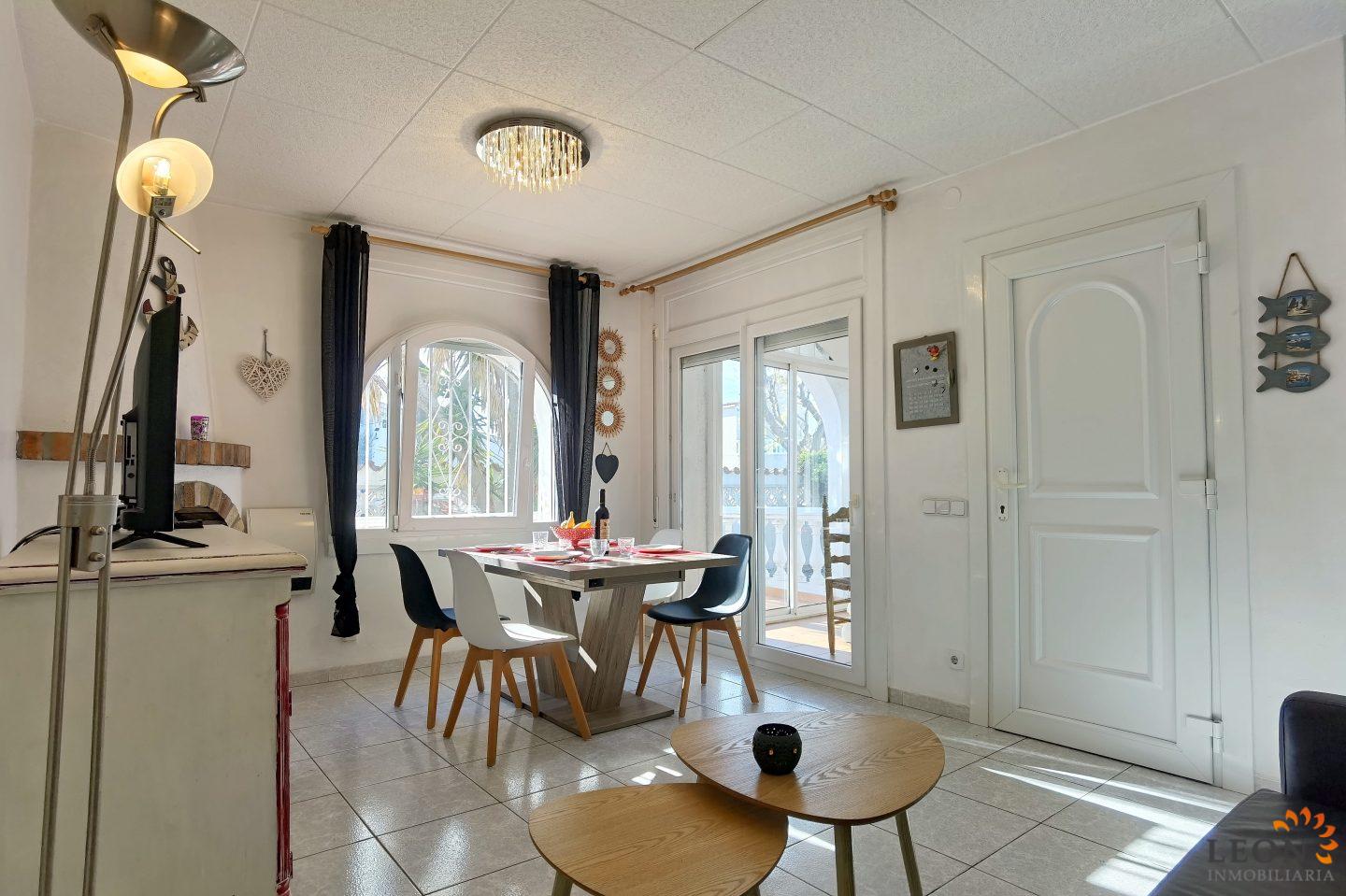 Coqueta casa adossada a prop del centre d'Empuriabrava i de la platja, per a un màxim de 4 persones, amb terrassa, barbacoa i plaça d´aparcament tancada dins la propietat