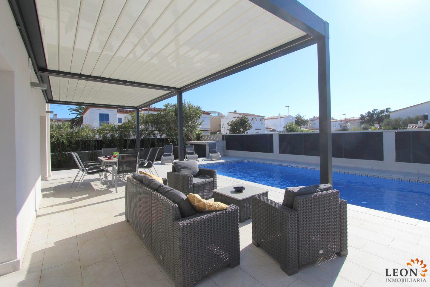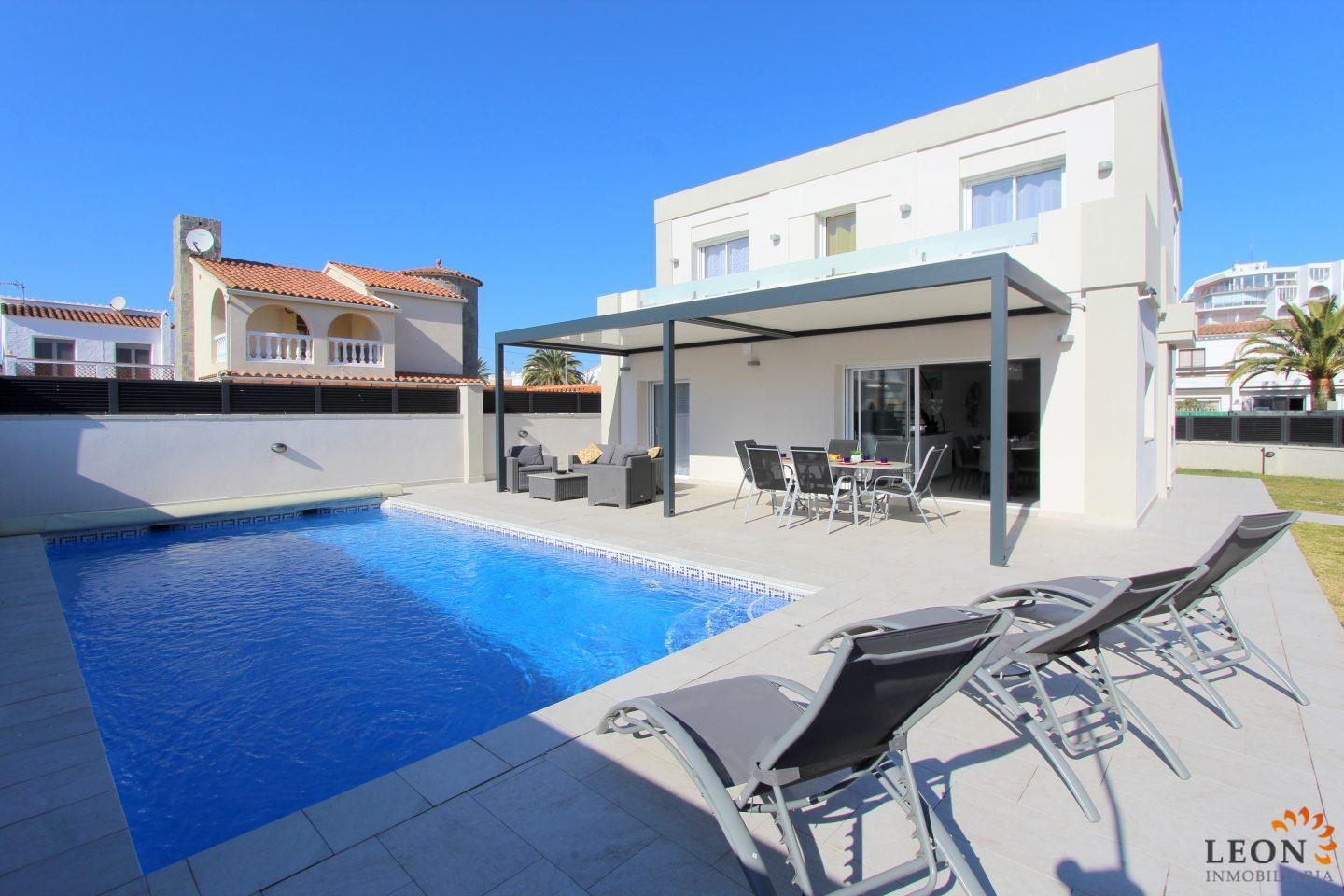 Moderna casa situada al centre d'Empuriabrava apte per a 8 persones, 4 dormitoris, magnífica terrassa amb piscina