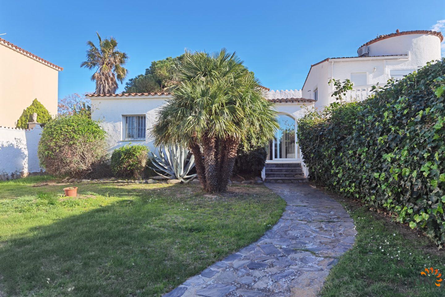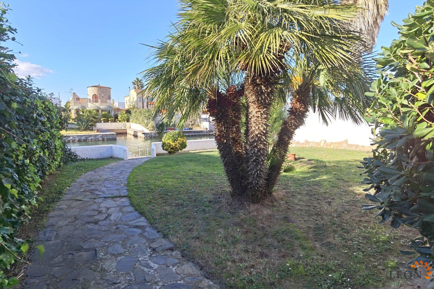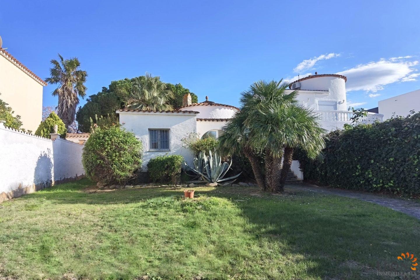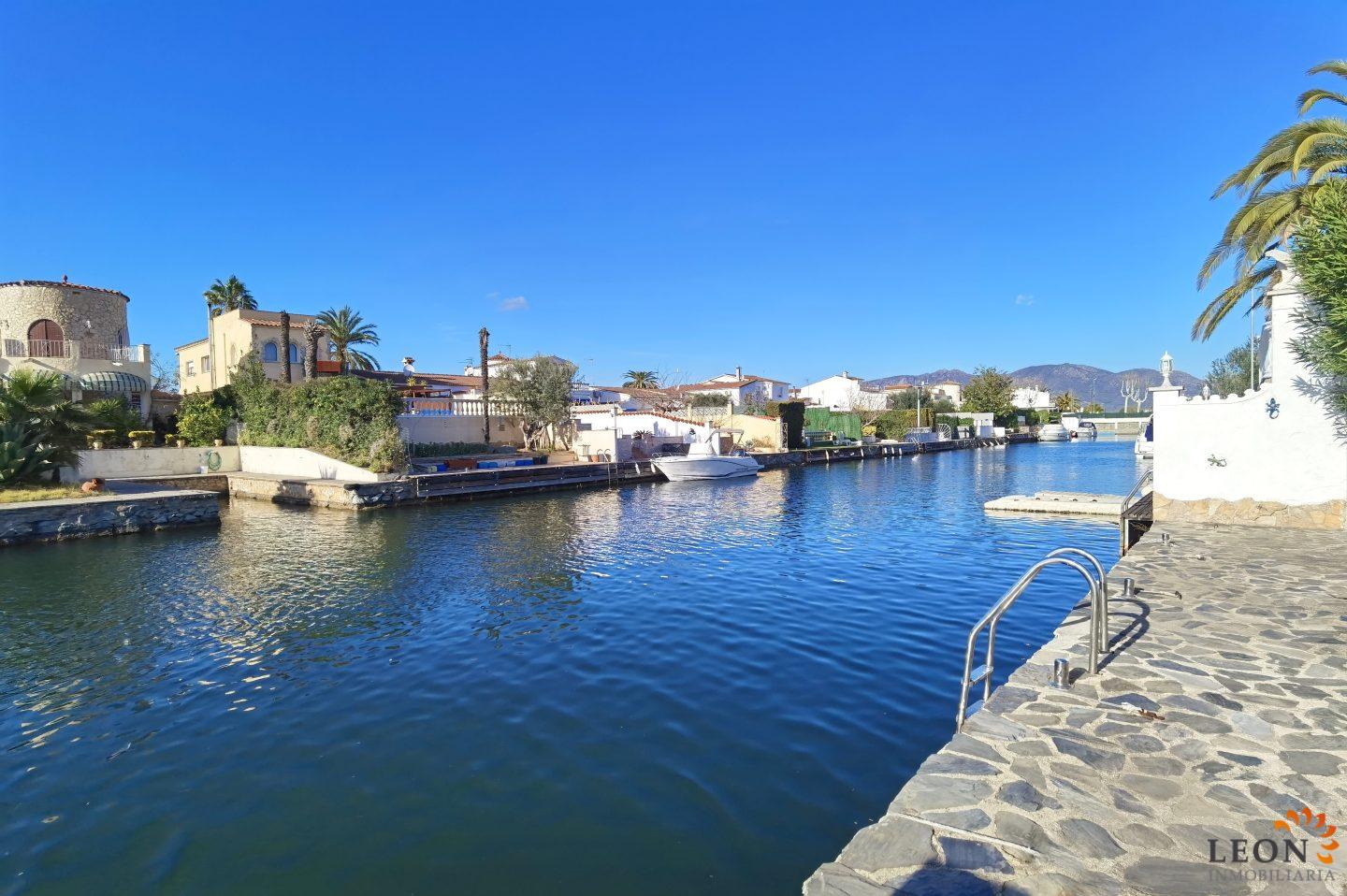 Aquesta casa de vacances en molt bon estat de conservació està situada sobre un gran terreny que dona directament al canal i a la vegada a l'amarratge privat 12m que es troba al fons del terreny. La casa disposa de 3 dormitoris (un amb llitera) i 2 banys, una gran sala d'estar/menjador i una cuina americana. La terrassa d'hivern dona al jardí i els hi ofereix unes boniques vistes del canal. Tenen a la seva disposició pàrking tancat devant la casa i garatge. Altres característiques són persianes per tota la casa, TV-Satèl.lit, rentadora i barbacoa. La casa es troba a l'entrada d'Empuriabrava i a tan sols uns minuts a peu trobaran restaurants i botigues. La magnífica platja es sitúa a un parell de kilòmetres i les boniques platges de Santa Margarita i Roses després d'un curt trajecte en cotxe. A més, Empuriabrava i els seus voltants els hi ofereixen una gran selecció d'activitats d'oci com el paracaigudisme, diversos esports nàutics i golf així com diversos llocs per visitar de gran interès cultural com el museu Dali a Figueres, el monestir de Sant Pere de Rodes i les ruïnes gregues d'Empúries. Per obtenir més informació sobre aquesta propietat o sobre altres immobles de vacances, els hi preguem contactin LEON INMOBILIARIA, per email, o per telèfon a la nostra agència central d'Empuriabrava: 0034 / 972 45 00 37.