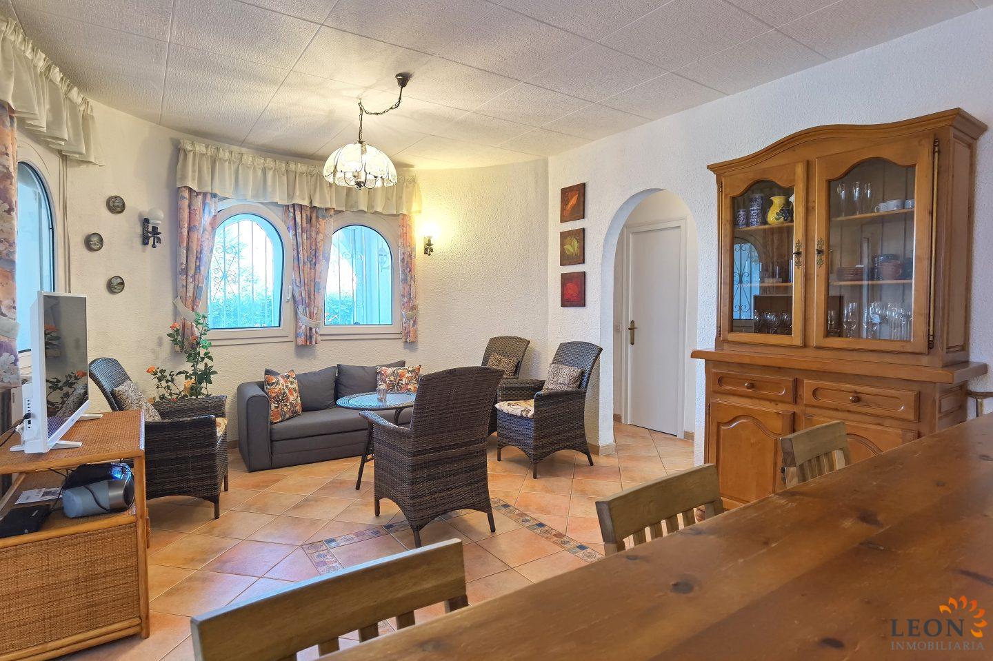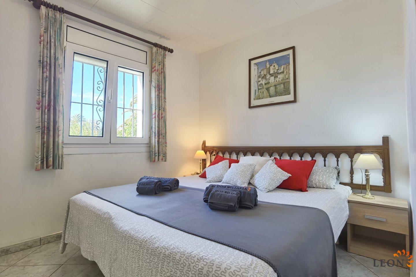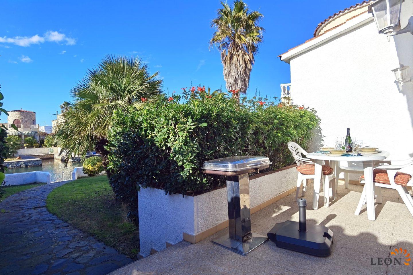Aquesta casa de vacances en molt bon estat de conservació està situada sobre un gran terreny que dona directament al canal i a la vegada a l'amarratge privat 12m que es troba al fons del terreny. La casa disposa de 3 dormitoris (un amb llitera) i 2 banys, una gran sala d'estar/menjador i una cuina americana. La terrassa d'hivern dona al jardí i els hi ofereix unes boniques vistes del canal. Tenen a la seva disposició pàrking tancat devant la casa i garatge. Altres característiques són persianes per tota la casa, TV-Satèl.lit, rentadora i barbacoa. La casa es troba a l'entrada d'Empuriabrava i a tan sols uns minuts a peu trobaran restaurants i botigues. La magnífica platja es sitúa a un parell de kilòmetres i les boniques platges de Santa Margarita i Roses després d'un curt trajecte en cotxe. A més, Empuriabrava i els seus voltants els hi ofereixen una gran selecció d'activitats d'oci com el paracaigudisme, diversos esports nàutics i golf així com diversos llocs per visitar de gran interès cultural com el museu Dali a Figueres, el monestir de Sant Pere de Rodes i les ruïnes gregues d'Empúries. Per obtenir més informació sobre aquesta propietat o sobre altres immobles de vacances, els hi preguem contactin LEON INMOBILIARIA, per email, o per telèfon a la nostra agència central d'Empuriabrava: 0034 / 972 45 00 37.