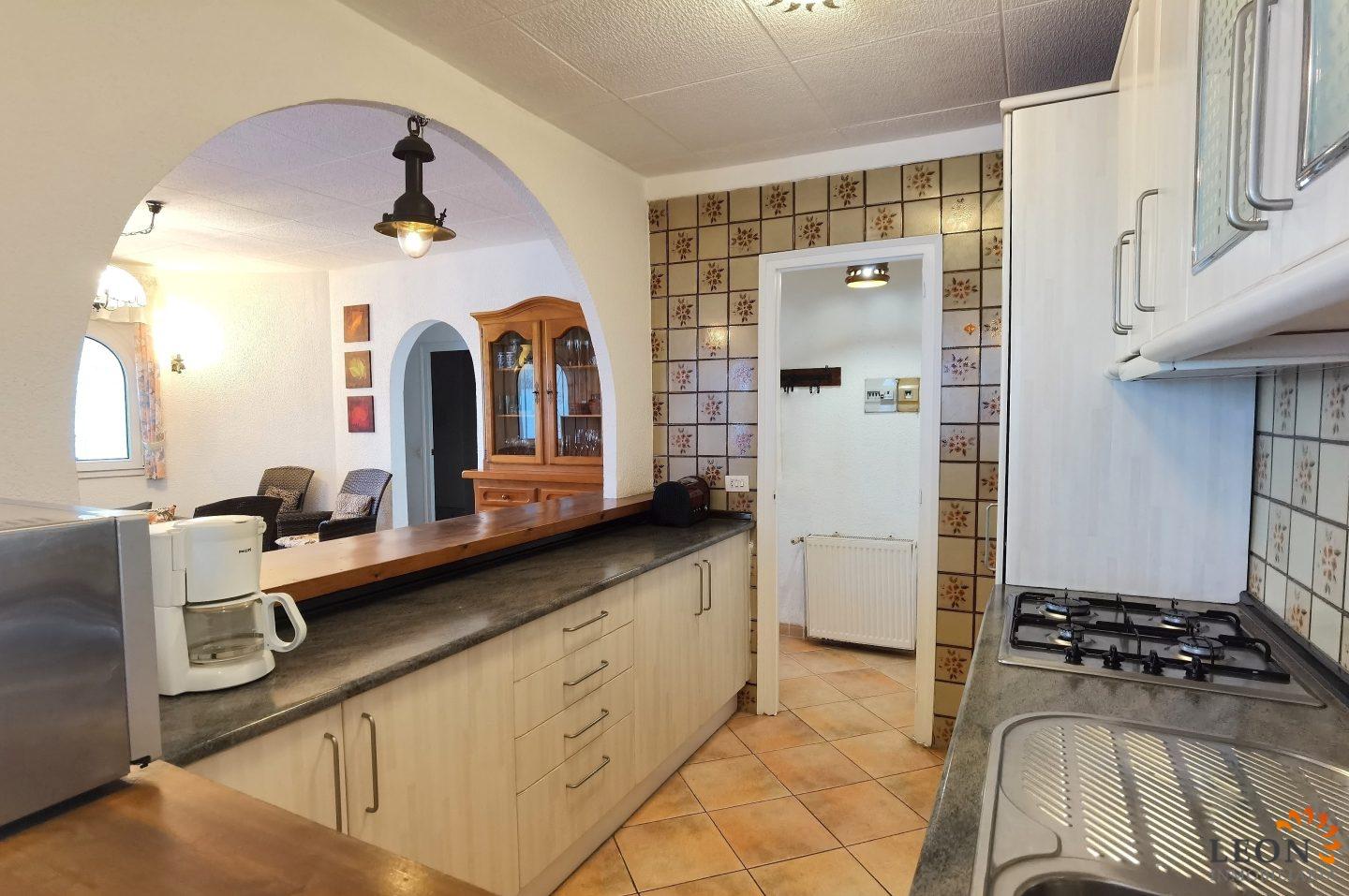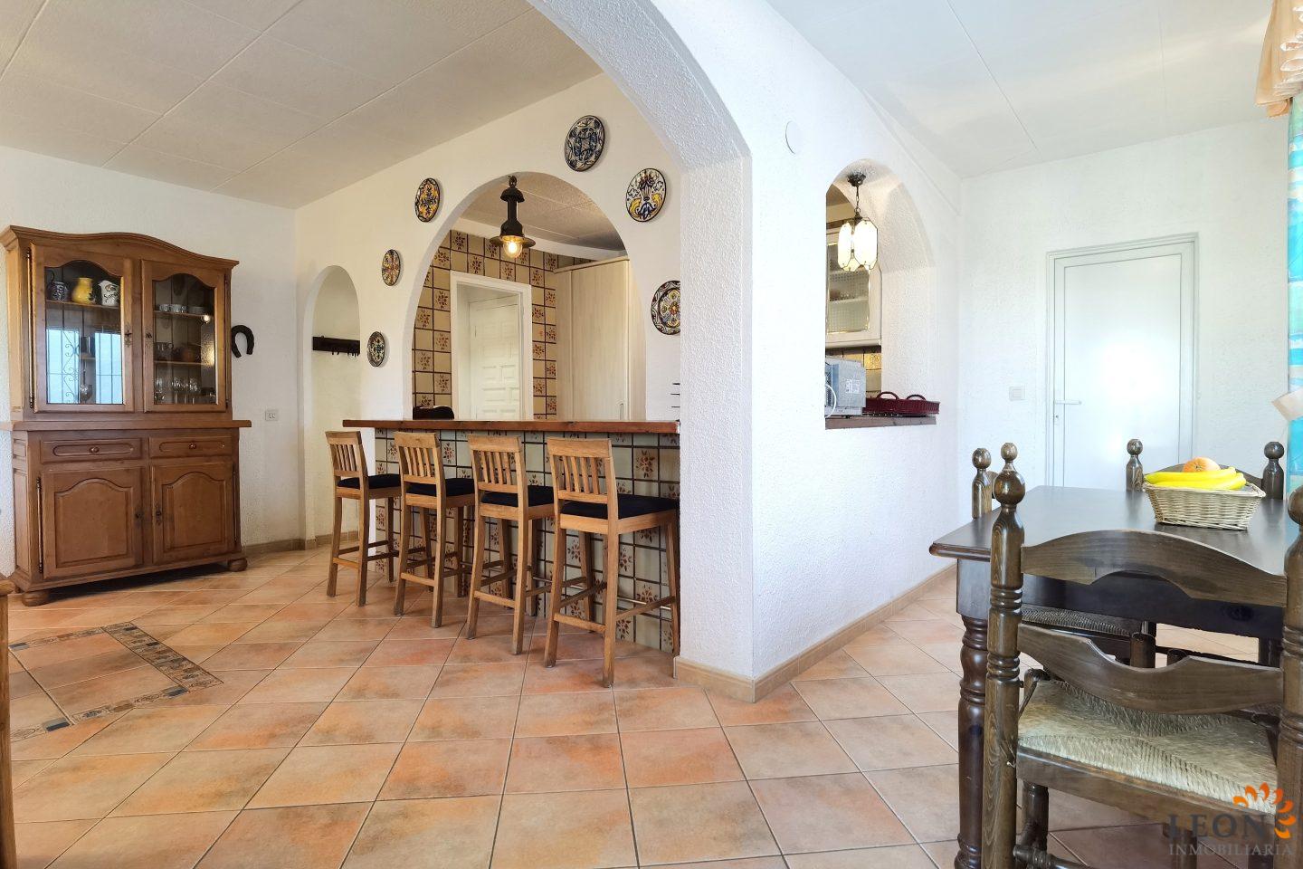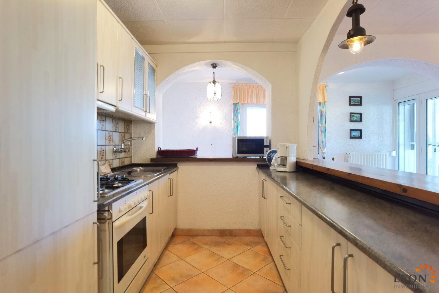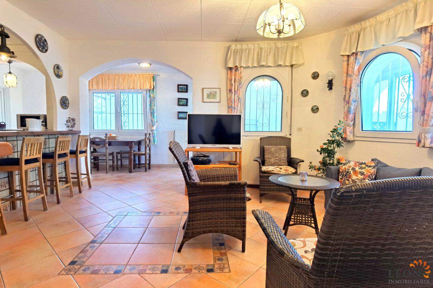 Aquesta casa de vacances en molt bon estat de conservació està situada sobre un gran terreny que dona directament al canal i a la vegada a l'amarratge privat 12m que es troba al fons del terreny. La casa disposa de 3 dormitoris (un amb llitera) i 2 banys, una gran sala d'estar/menjador i una cuina americana. La terrassa d'hivern dona al jardí i els hi ofereix unes boniques vistes del canal. Tenen a la seva disposició pàrking tancat devant la casa i garatge. Altres característiques són persianes per tota la casa, TV-Satèl.lit, rentadora i barbacoa. La casa es troba a l'entrada d'Empuriabrava i a tan sols uns minuts a peu trobaran restaurants i botigues. La magnífica platja es sitúa a un parell de kilòmetres i les boniques platges de Santa Margarita i Roses després d'un curt trajecte en cotxe. A més, Empuriabrava i els seus voltants els hi ofereixen una gran selecció d'activitats d'oci com el paracaigudisme, diversos esports nàutics i golf així com diversos llocs per visitar de gran interès cultural com el museu Dali a Figueres, el monestir de Sant Pere de Rodes i les ruïnes gregues d'Empúries. Per obtenir més informació sobre aquesta propietat o sobre altres immobles de vacances, els hi preguem contactin LEON INMOBILIARIA, per email, o per telèfon a la nostra agència central d'Empuriabrava: 0034 / 972 45 00 37.