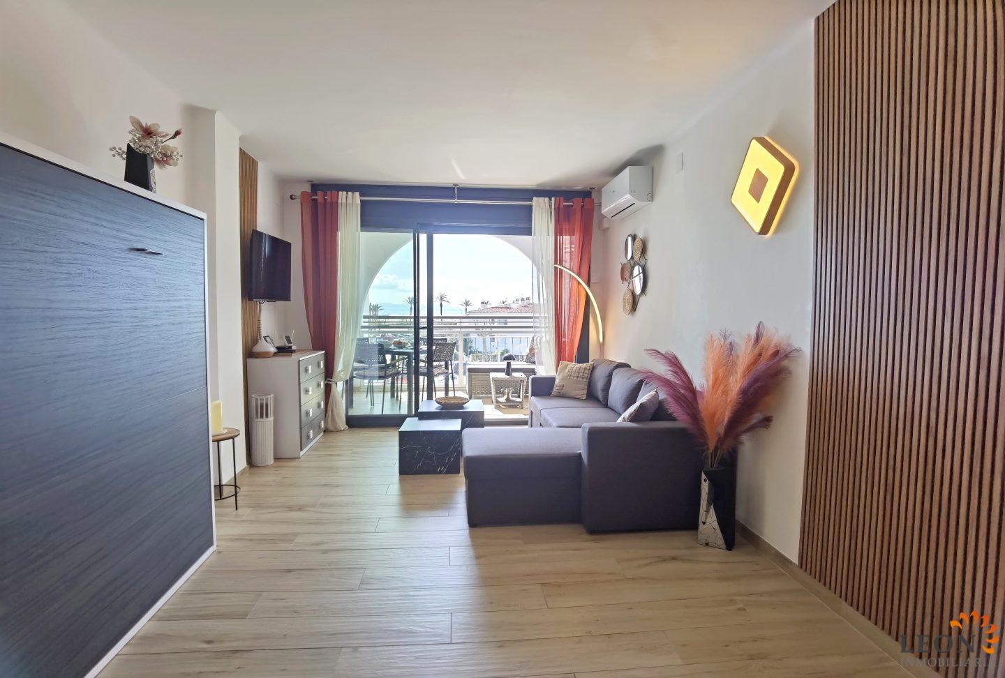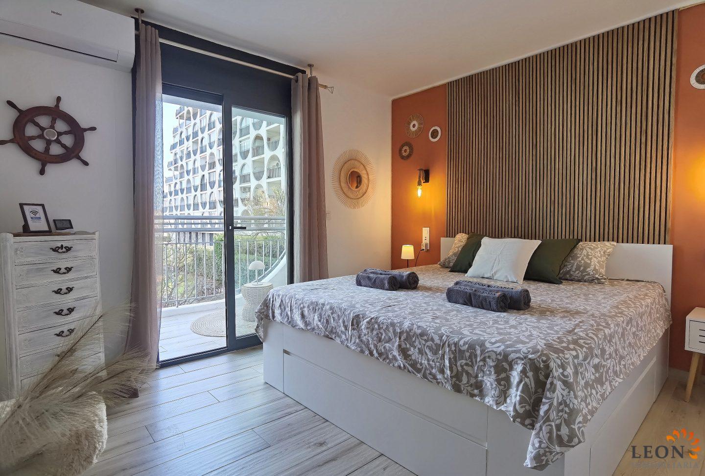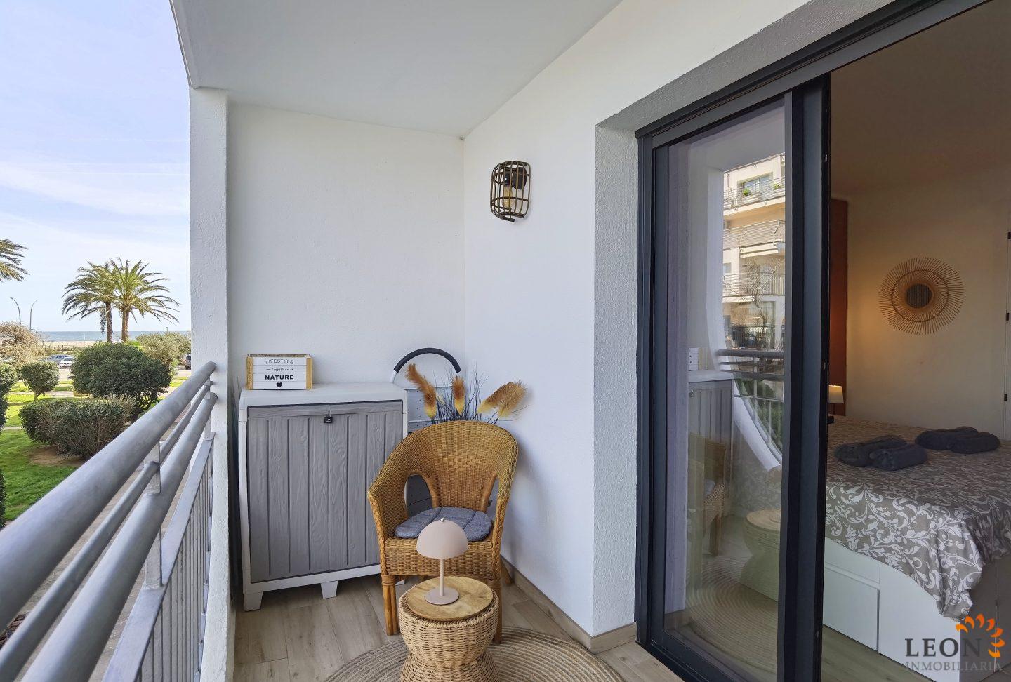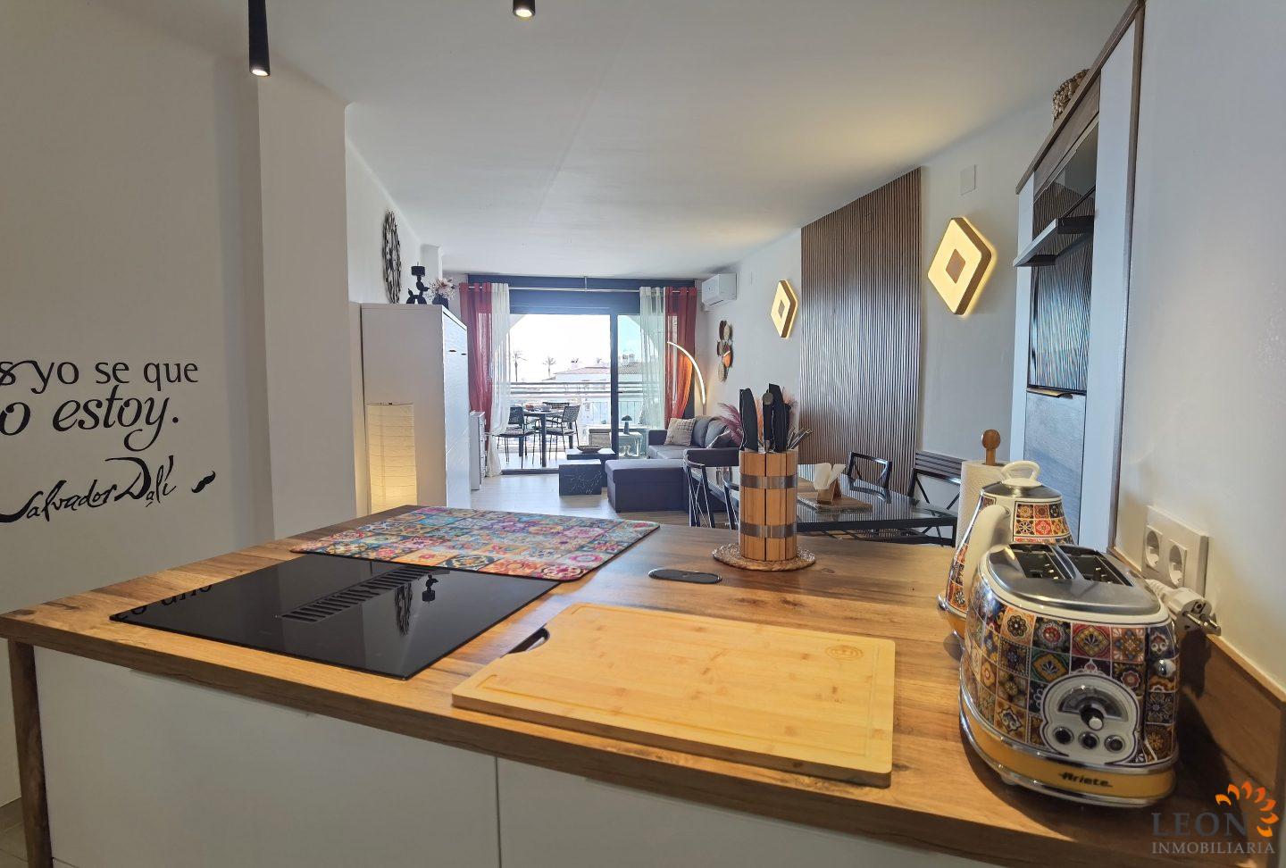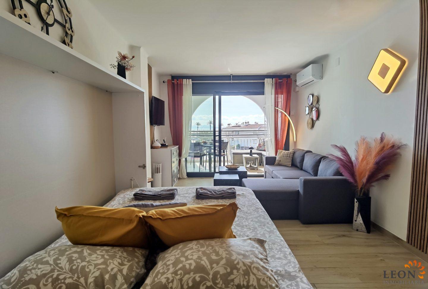 Dieses helle Duplex-Apartment überzeugt durch seine traumhafte Lage unmittelbar an der Strandpromenade. Die Aufteilung ist perfekt durchdacht: Direkt neben dem Eingang befindet sich das moderne Badezimmer mit Dusche sowie ein separat gelegenes, klimatisiertes Schlafzimmer. Von dort aus betreten Sie eine kleine, gemütliche Terrasse mit Blick auf den Kanal – ein wunderbarer Rückzugsort, um den Tag entspannt bei einem Glas Wein ausklingen zu lassen. Eine Innentreppe führt Sie vom Flur aus in das lichtdurchflutete Obergeschoss. Hier erwartet Sie eine modern ausgestattete Küche, die fließend in den hellen Wohn- und Essbereich übergeht. Dank der Klimaanlage herrscht hier auch an heißen Tagen ein angenehmes Wohlfühlklima. Ein clever integriertes Schrankbett im Wohnzimmer bietet zudem flexiblen Platz. Der besondere Glanzpunkt ist die angrenzende Terrasse: Genießen Sie von hier aus den spektakulären Ausblick auf das Meer und die belebte Strandpromenade. Die Wohnung liegt im ersten Stock, ist bequem per Aufzug erreichbar und bietet den idealen Ausgangspunkt, um sowohl den Strand als auch das Stadtzentrum in vollen Zügen zu genießen. Die zentrale Lage der Wohnung bietet Ihnen alle Annehmlichkeiten für das tägliche Leben, direkt vor der Tür die Restaurants, die Einkaufsmöglichkeiten, der Strand und das Meer. Das belebte Zentrum mit der Fußgängerzone und der Shoppingmeile, Empuriabrava bietet grenzenlose Freizeitmöglichkeiten. Von der Wohnung aus erreichen Sie in nur wenigen Autominuten das benachbarte Castelló d’Empúries oder das idyllische Städtchen Cadaqués. Viele kulturelle Attraktionen liegen in direkter Nähe, wie zum Beispiel das Dalí-Museum in Figueres, die Ruinen von Empúries oder das Kloster Sant Pere de Rodes. Für weitere Informationen zum Objekt oder andere Ferienimmobilien kontaktieren Sie bitte LEON INMOBILIARIA per E-Mail oder Telefon im Hauptbüro in Empuriabrava unter: 0034 / 972 45 00 37.