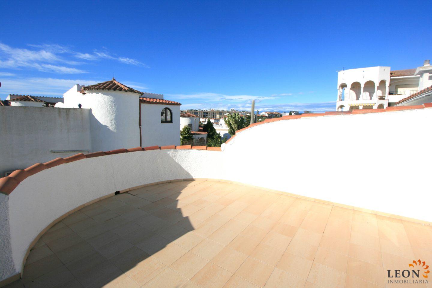 This attractive townhouse is situated at one of the canals in Empuriabrava. The living space of 150 m² consists of 3 bedrooms, 2 bathrooms and an open plan living room with an open fireplace and an American style kitchen, as well as an additional lounge at the top floor with access to the roof terrace. From the terrace, the views over the roofs of Empuriabrava with the Pyrenees in the background are quite stunning. This lovely house benefits from an oil generated central heating, as well as an air-conditioning system and shutters throughout the property. Along with the mooring site, there is also dedicated parking space for 2 cars. Situated near the entrance of Empuriabrava, there is a good choice of restaurants and shops within walking distance. The gorgeous sandy beach is a mere km away, whilst the beautiful beaches of Santa Margarita and Roses are easy and quick to reach by car. Additionally, Empuriabrava and the surrounding area offer unlimited recreational opportunities like skydiving, all kinds of water sport activities and golf, as well as numerous cultural attractions such as the Dali museum in Figueres, the monastery of Sant Pere de Rodes and the Greek and Roman ruins of Ampurias. For further information about this property, or indeed other Spanish properties, please contact LEON INMOBILIARIA by email or telephone at our main office in Empuriabrava: (+34) 972 45 00 37.