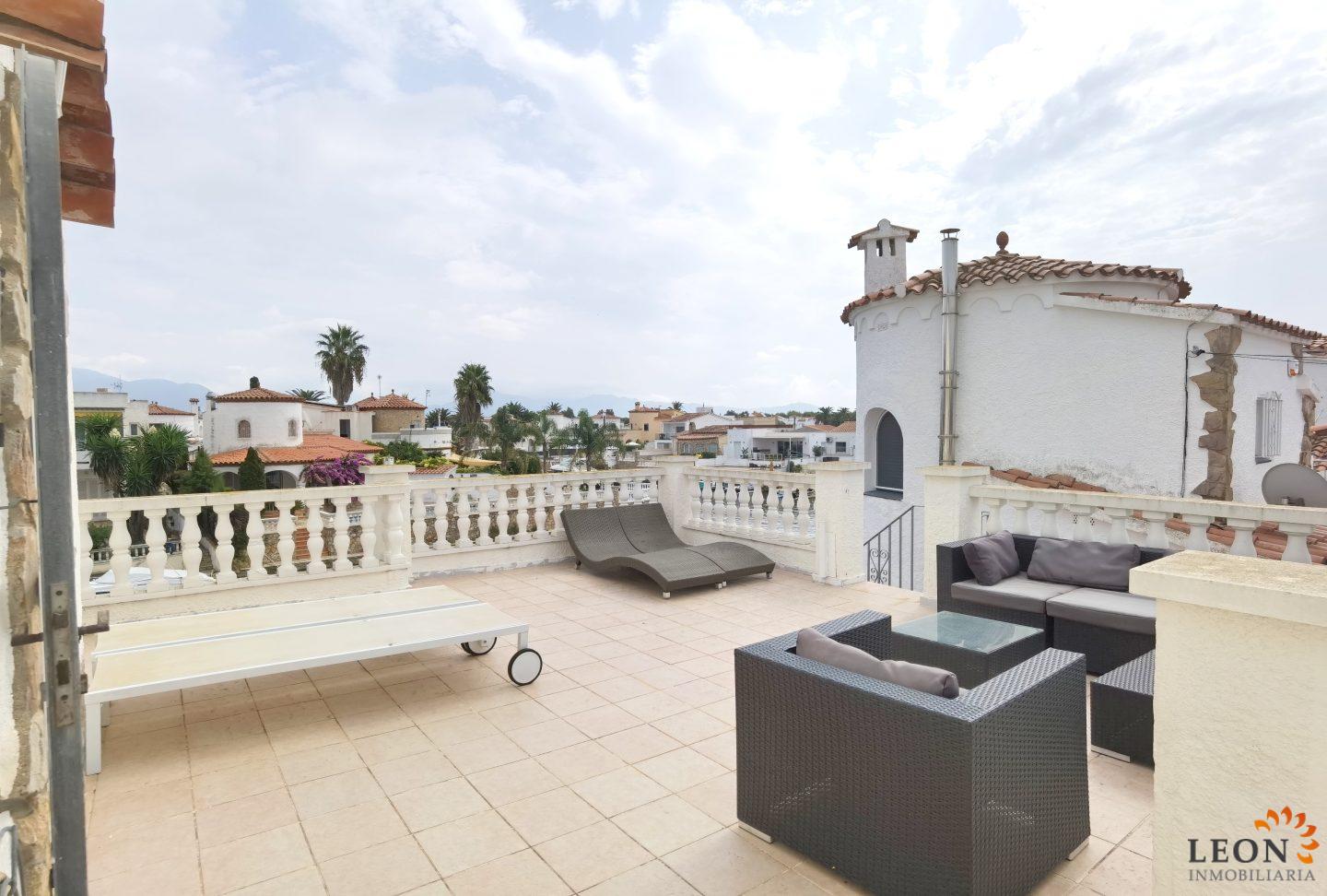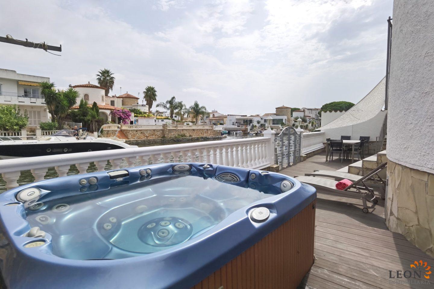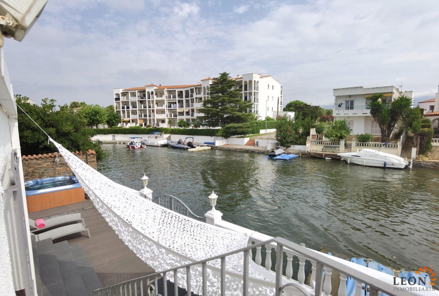 Unique opportunity facing the canal. We present this charming house with direct access to the canal, ideal for those seeking tranquility and connection with the sea. The main house has 2 bedrooms and a cozy atmosphere, perfect for enjoying with family or as a vacation home. It has a private 13-meter mooring, ideal for large boats, offering comfort and security right outside your door. On the upper floor is a separate apartment with one bedroom, private bathroom, and a spacious 30 m² terrace with exclusive access. A perfect space for guests, tourist rentals, or as an additional relaxation area. From there, you can enjoy panoramic views of the canal and the natural surroundings. Empuriabrava and its surroundings have excellent infrastructure. Built more than 40 years ago, the complex has developed over recent decades into a paradise for tourists, water sports enthusiasts, and skydivers. You can set off by boat directly from your mooring in the town's canals or take a pleasant trip on the Mediterranean Sea to visit the beautiful coves of the Costa Brava. In addition, Empuriabrava and its surroundings offer a wide range of leisure activities such as skydiving, various water sports and golf, as well as various culturally interesting sights such as the Dali Museum in Figueres, the monastery of Sant Pere de Rodes and the Greek ruins. For more information about this property or other vacation properties, please visit LEON INMOBILIARIA, send us an email, or call our central agency in Empuriabrava at 0034 / 972 45 00 37.