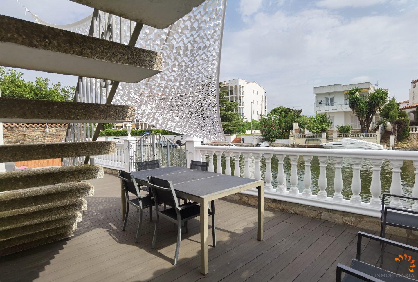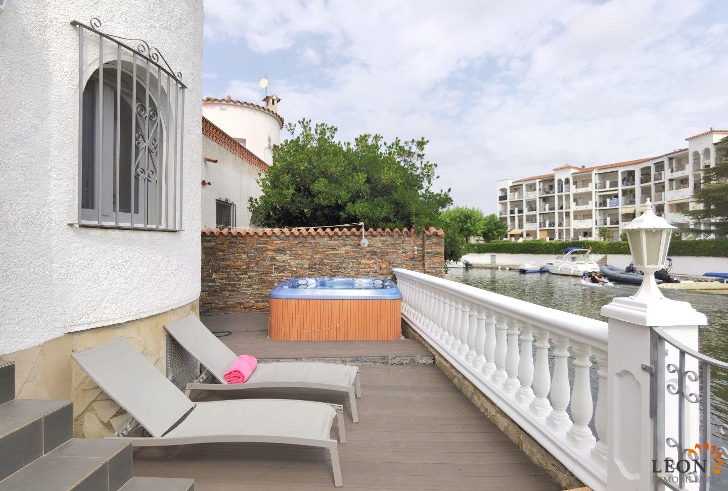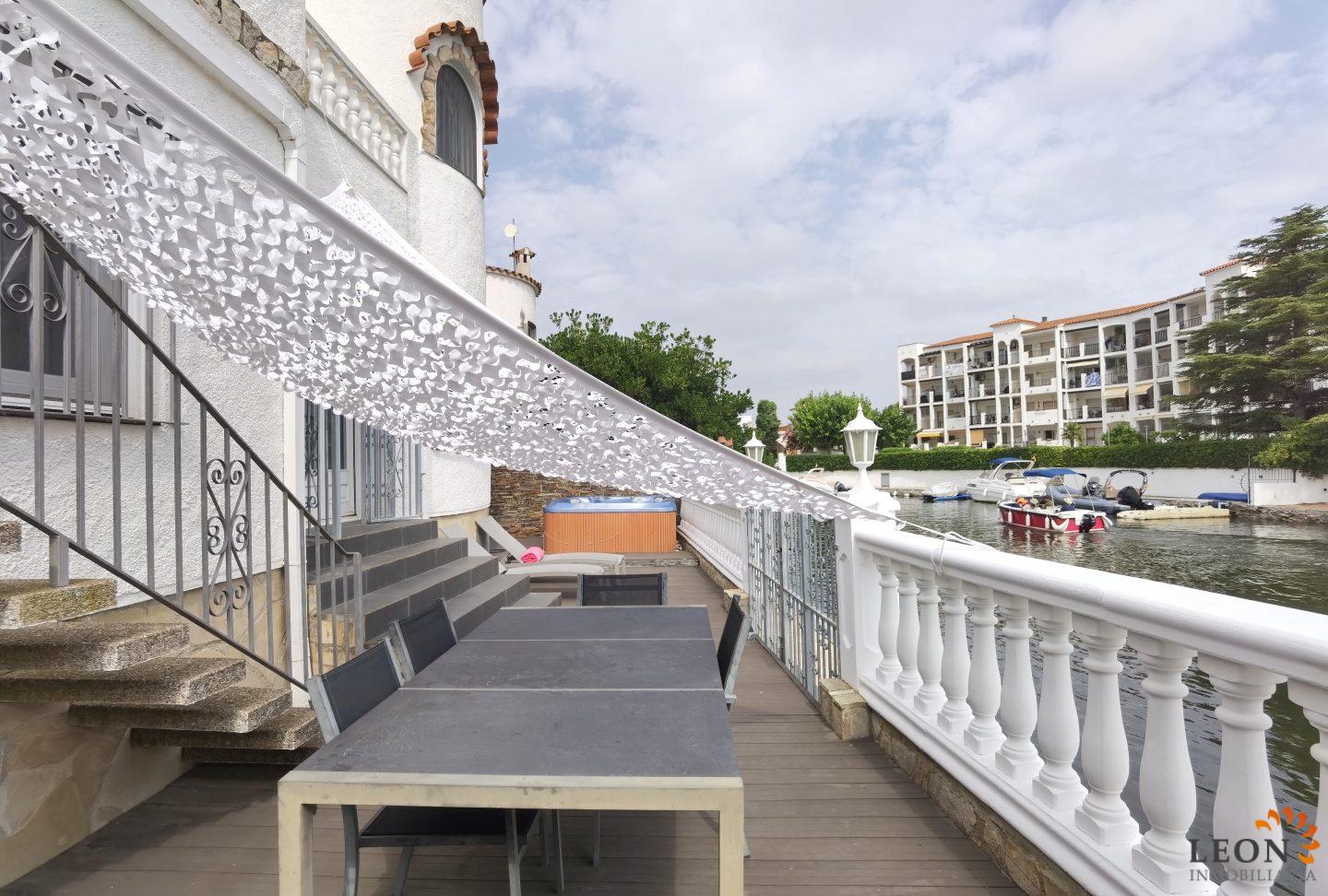 Unique opportunity facing the canal. We present this charming house with direct access to the canal, ideal for those seeking tranquility and connection with the sea. The main house has 2 bedrooms and a cozy atmosphere, perfect for enjoying with family or as a vacation home. It has a private 13-meter mooring, ideal for large boats, offering comfort and security right outside your door. On the upper floor is a separate apartment with one bedroom, private bathroom, and a spacious 30 m² terrace with exclusive access. A perfect space for guests, tourist rentals, or as an additional relaxation area. From there, you can enjoy panoramic views of the canal and the natural surroundings. Empuriabrava and its surroundings have excellent infrastructure. Built more than 40 years ago, the complex has developed over recent decades into a paradise for tourists, water sports enthusiasts, and skydivers. You can set off by boat directly from your mooring in the town's canals or take a pleasant trip on the Mediterranean Sea to visit the beautiful coves of the Costa Brava. In addition, Empuriabrava and its surroundings offer a wide range of leisure activities such as skydiving, various water sports and golf, as well as various culturally interesting sights such as the Dali Museum in Figueres, the monastery of Sant Pere de Rodes and the Greek ruins. For more information about this property or other vacation properties, please visit LEON INMOBILIARIA, send us an email, or call our central agency in Empuriabrava at 0034 / 972 45 00 37.