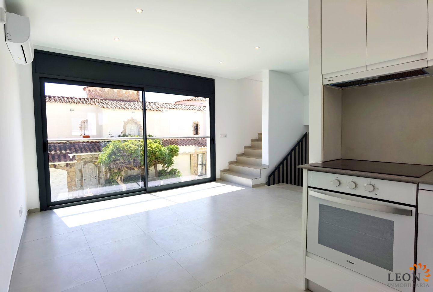 New modern semi-detached house with 2 bedrooms and terrace in an ideal location On the first floor you will find a practical garage with space for a car, a bright bedroom with full bathroom. On the second floor there is a modern, open kitchen that flows seamlessly into the living/dining room, creating a functional and bright space. On this level there is also the second bedroom and another bathroom equipped with high quality finishes. The house is located close to the entrance of Empuriabrava, where the stores and restaurants are just a few minutes' walk away. The magnificent golden sandy beach of Empuriabrava is only a few kilometers away, so the beautiful beaches of Santa Margarita and Roses are also within quick and easy reach by car. Empuriabrava is located in the Gulf of Roses, surrounded by the natural park €SEls Aiguamolls de l'Empordà⬝ and is the largest residential marina in Europe, with about 24 km of navigable canals. Empuriabrava is a good starting point to explore the beaches on the Costa Brava or for excursions into nature and also to discover the fascinating villages inland. For more information about this property or other Spanish properties, please contact LEON INMOBILIARIA by email or call the main office in Empuriabrava on 0034 / 972 45 00 37.