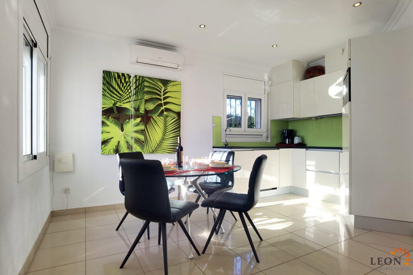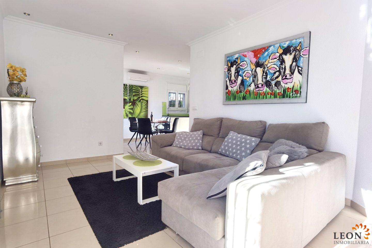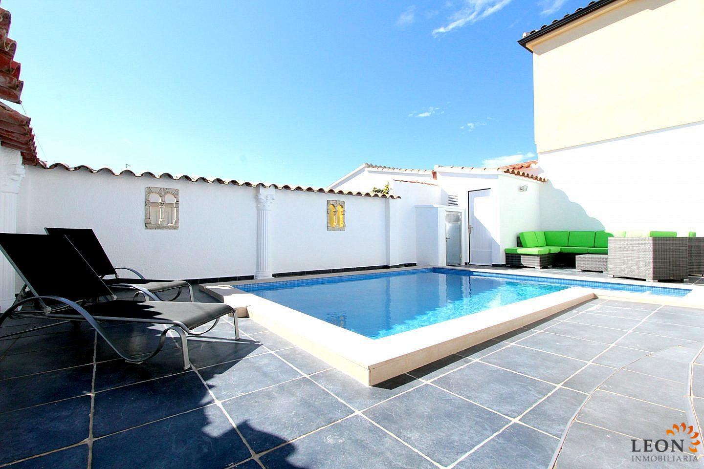 Stylish, modern villa for sale in Empuriabrava on a 239 m², low-maintenance plot combines maximum comfort. With 79 m² of optimally distributed living space, this property is perfectly suited as both an exclusive primary residence and a high-yield holiday property. The heart of the house is the light-flooded, open-plan living and dining area with an integrated, fully equipped kitchen (incl. dishwasher and microwave). A modern air conditioning system ensures the ideal feel-good climate here all year round. The layout includes two cozy bedrooms, including a suite with its own bathroom, as well as a second, separate bathroom. The outdoor area is a private oasis with a wonderfully covered terrace that invites you to social BBQ evenings, while the private pool provides refreshment. Thanks to the electric shutters and the thoughtful layout of the plot, you enjoy a protected, private atmosphere both inside and on the terrace. Completely enclosed plot with 2 convenient parking spaces, air conditioning in the living area, washing machine, international satellite TV. Where Mediterranean lifestyle and adventure are at home. Empuriabrava, the "Venice of Spain," is much more than just one of the largest marinas in the world – it is a vibrant holiday paradise with an infrastructure that leaves nothing to be desired. Leisure and Gastronomy right on your doorstep: The surrounding area captivates with an extraordinary variety of leisure activities. Enjoy a boat trip through the picturesque canals, discover the extensive sandy beach, or take advantage of the excellent range of water sports, cycling paths, and hiking trails in the nearby "Aiguamolls" Nature Park. For adrenaline fans, the world-famous Skydive center is only a few minutes away. Culinary-wise, Empuriabrava offers an impressive selection: from charming tapas bars and cozy cafés to exclusive restaurants serving international and Mediterranean cuisine – everything is within easy reach. Thanks to the central location, you benefit from short distances to all shopping facilities and daily services. The proximity to the Pyrenees and the French border also makes this location a strategically valuable investment on the Costa Brava. Here, you are not just investing in a modern property, but in a lifestyle full of variety and enjoyment. For further information about this object, or indeed other Spanish properties, please contact LEON INMOBILIARIA by email or telephone at our main office in Empuriabrava: 0034 / 972 45 00 37.