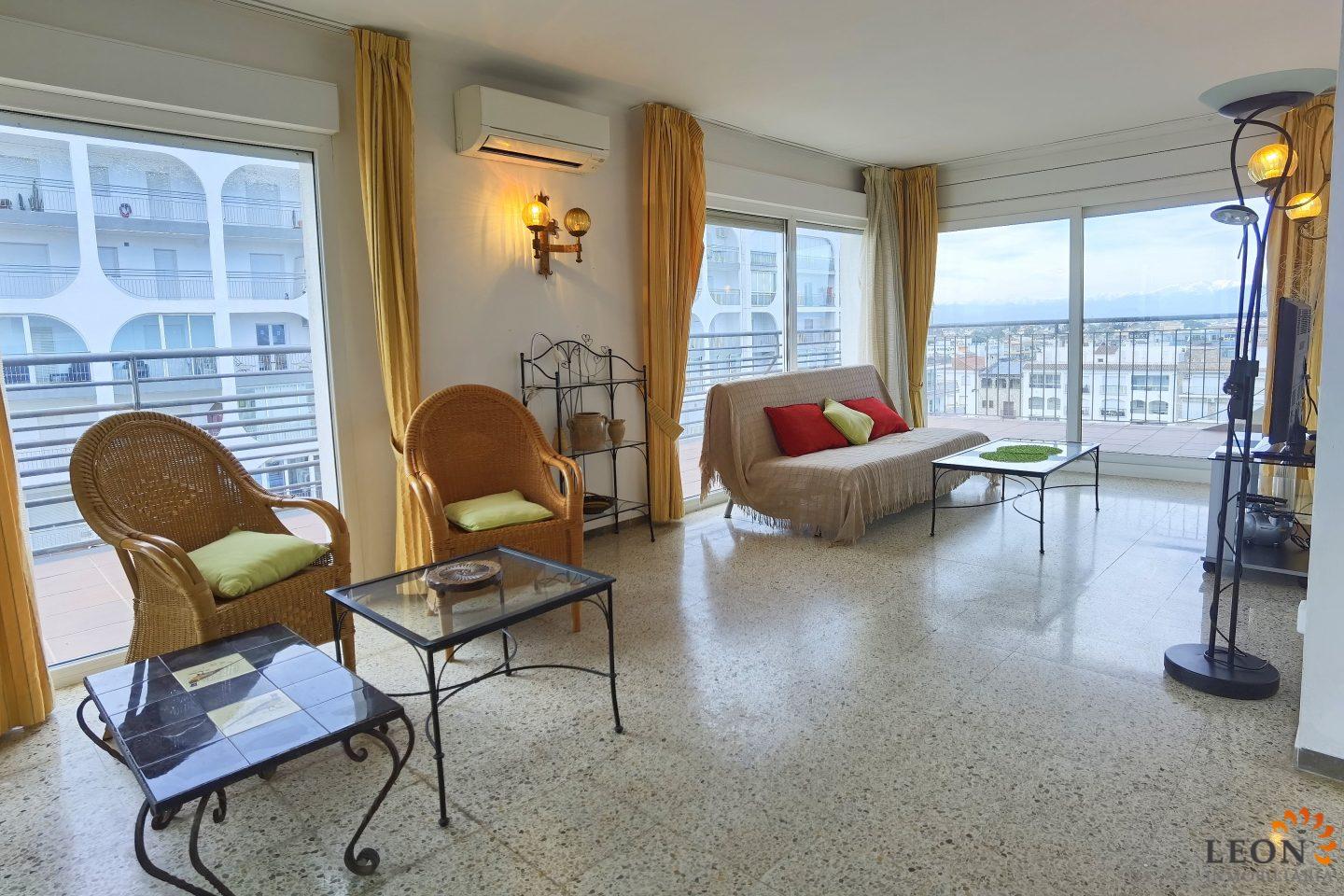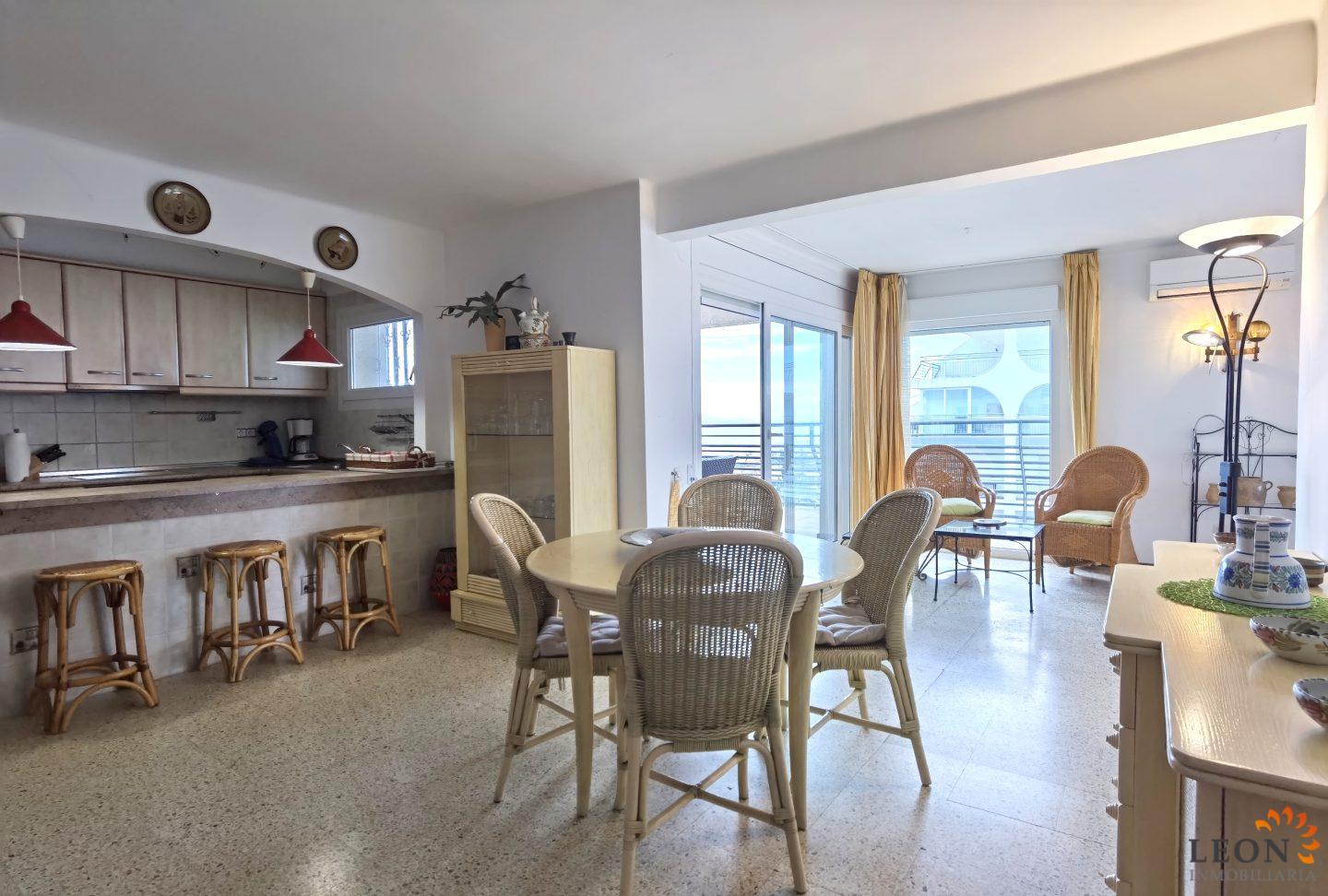 Bright apartment on the seafront, located on the sixth floor with elevator, offering spectacular views of the Gulf of Roses and the wide beach. It has two bedrooms, two bathrooms, and a living-dining room with an open kitchen that connects to a terrace perfect for enjoying the sea and the promenade. Its excellent orientation guarantees natural light throughout the day. In addition, it has a tourist license, making it an ideal option for both living and investing. Empuriabrava has the largest marina in Europe with more than 25 kilometers of navigation channels and around 5,000 moorings. In addition, Ampuriabrava is considered an “Eldorado” for skydivers. In this European skydiving center, you can also try tandem jumps all year round. The beach at Empuriabrava is approximately 1.6 km long, slightly sloping, light, with fine sand, and one of the widest on the entire Costa Brava. Great for adults and children. The beautiful sandy beaches of Empuriabrava, Rosas, and San Pedro Pescador invite you to take a dip. The area offers a variety of sports (diving, sailing, motorboating, windsurfing, kitesurfing, jet skiing, water skiing, deep-sea fishing, fishing, bowling, flying, skydiving, horse riding, mini golf, tennis, go-karting, hiking, and petanque). Next to the airfield, there is a wind tunnel where everyone can fly, starting at age 4! You will hardly find this anywhere else in Europe; it is absolutely sensational and safe. From the bar/restaurant, you can also enjoy watching the flights. For further information about this object, or indeed other Spanish properties, please contact LEON INMOBILIARIA by email or telephone at our main office in Empuriabrava: 0034 / 972 45 00 37.