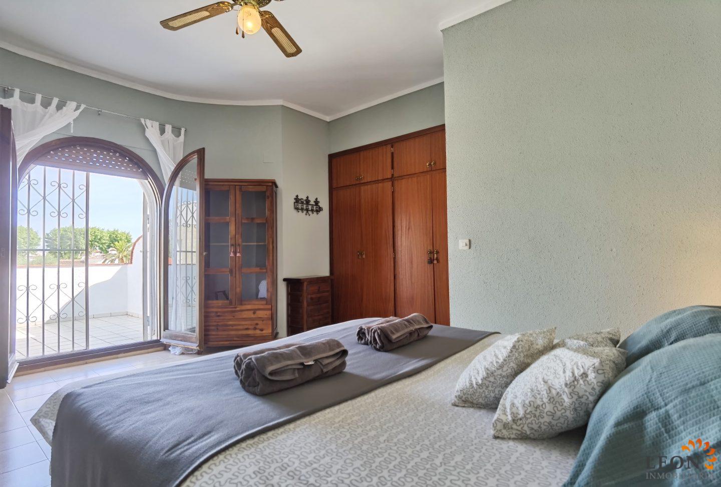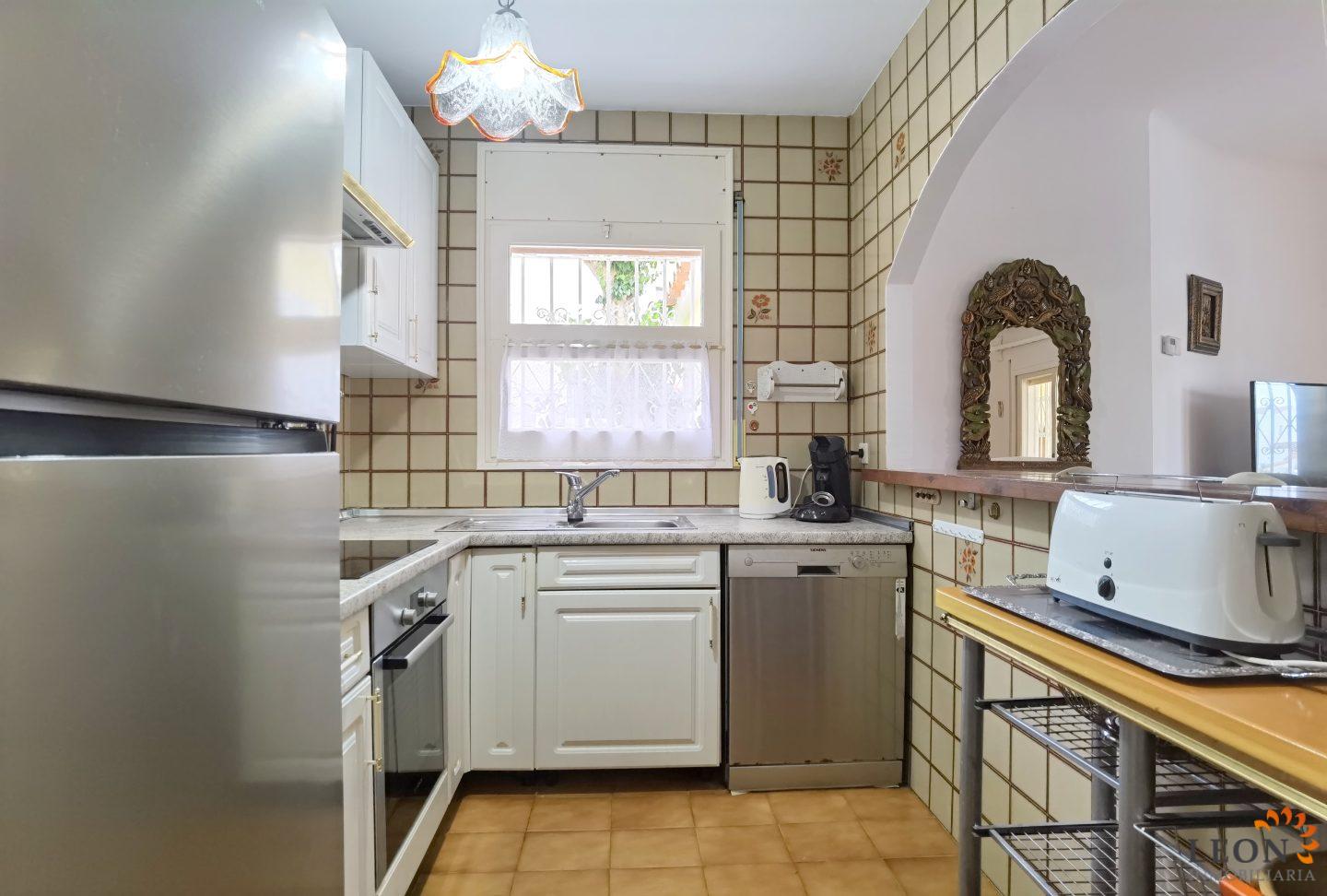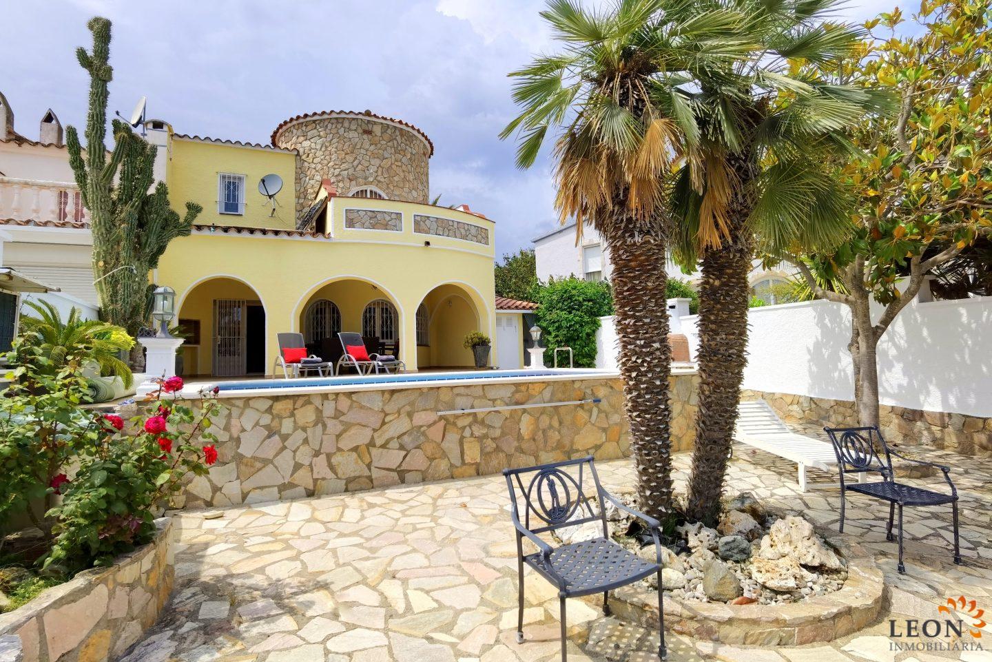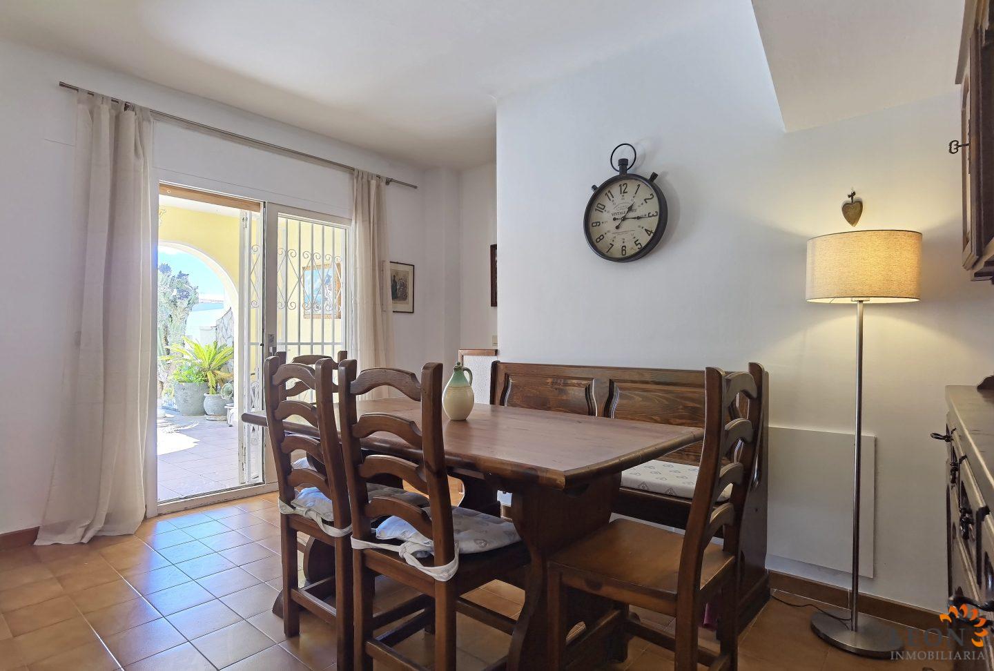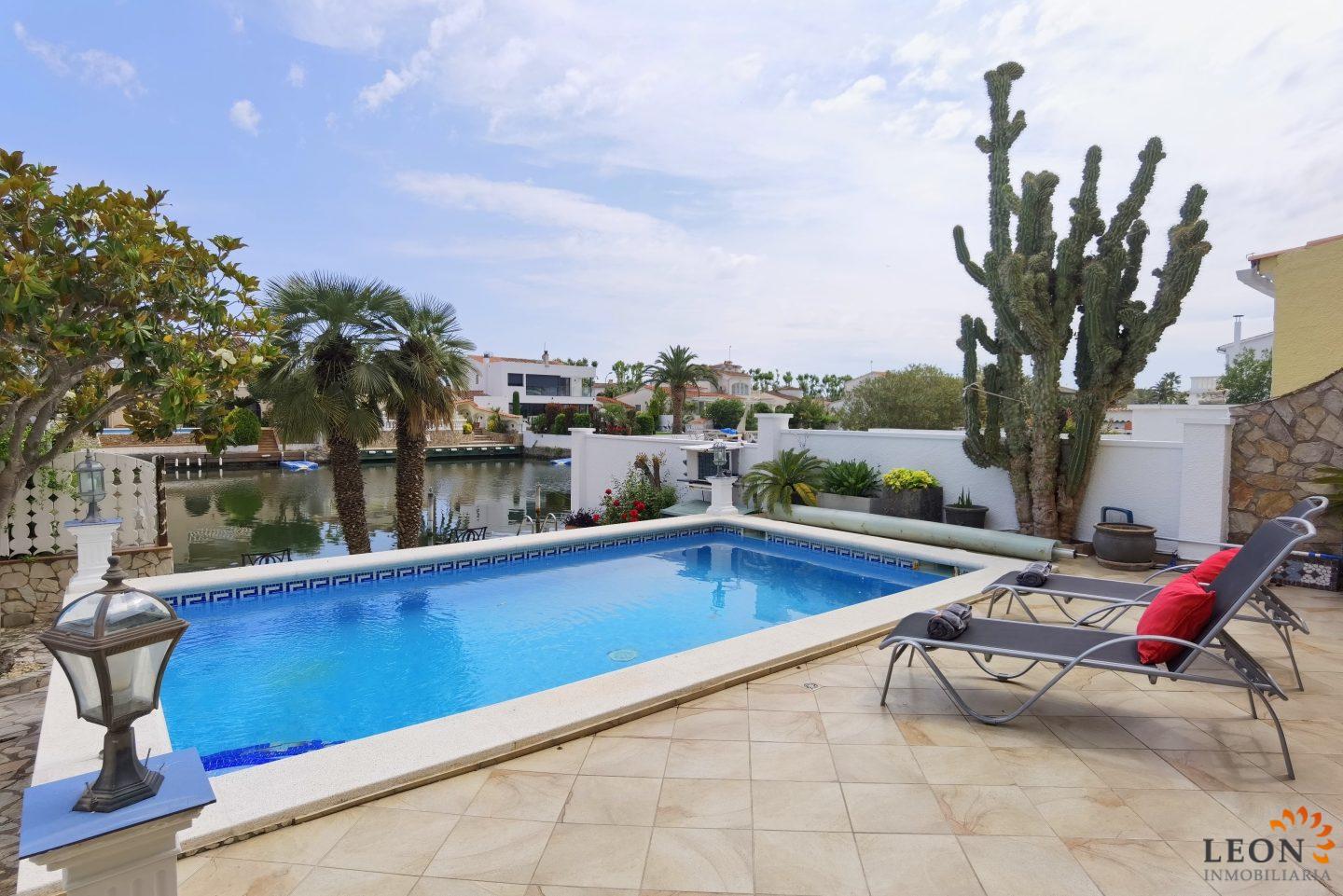 This cosy corner terraced house has a living area of 130 m2 and stands on a 354 m2 plot at the end of the canal (wide canal) with a 10 m jetty, has 3 double bedrooms (2 bedrooms on the ground floor, 1 bedroom on the 1st floor all with air conditioning), 2 bathrooms, a bright and spacious living/dining room with open, well-equipped kitchen and access to the lovely covered terrace with pool and access to the jetty. This property is equipped with: SAT-TV (DE) dishwasher, washing machine, parking in the enclosed property. Empuriabrava and its surroundings boast an excellent infrastructure. Built over 40 years ago, the complex has become a paradise for holidaymakers, water sports enthusiasts and skydivers. You can go out to sea directly from your villa and visit the beautiful bays of the Costa Brava. You'll be just a short drive from the historic centre of Castelló d'Empúries or the beautiful fishing village of Cadaqués, with its idyllic harbour and many restaurants. A wide variety of cultural activities are just half an hour's drive away, including the Dali Museum in Figueres, the ruins of Empúries and the monastery of Sant Pere de Rodes. For more information on this or other holiday rentals, please contact LEON INMOBILIARIA by email or telephone at our central agency in Empuriabrava: 0034 / 972 45 00 37.