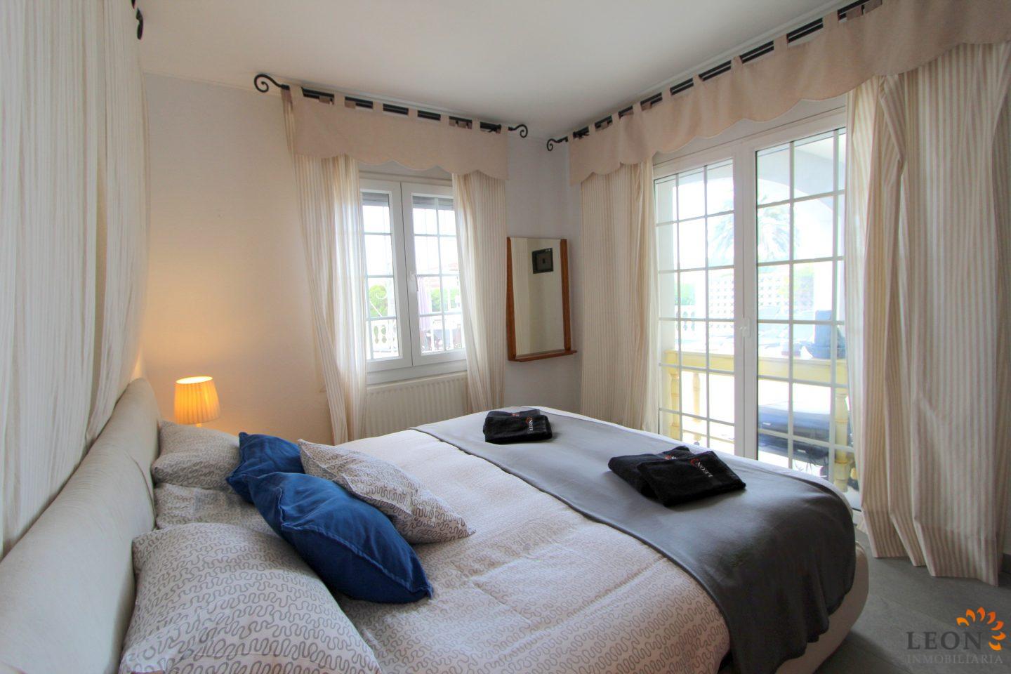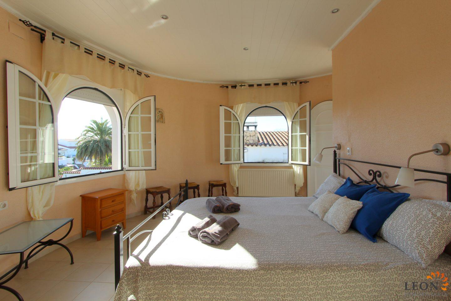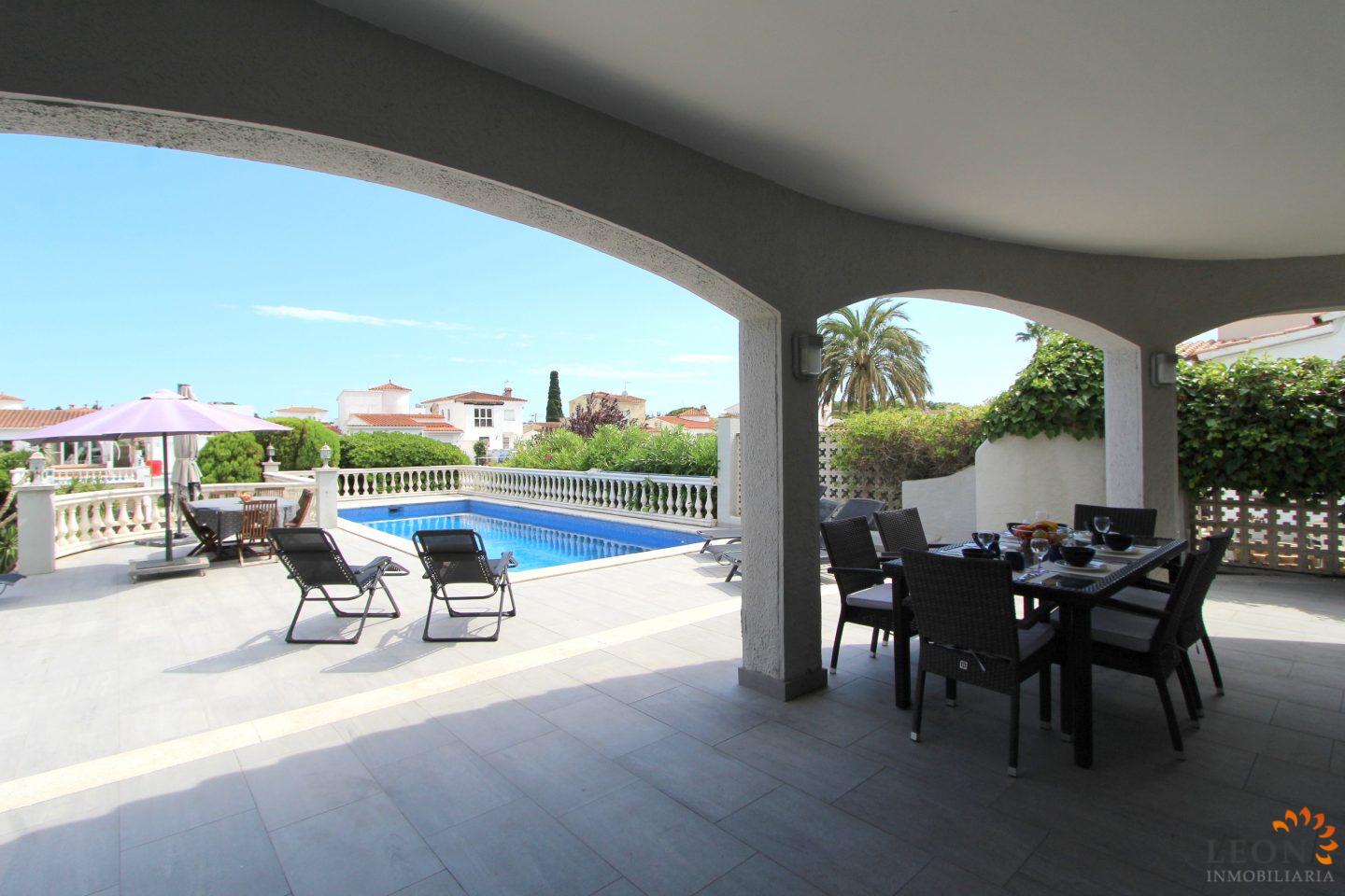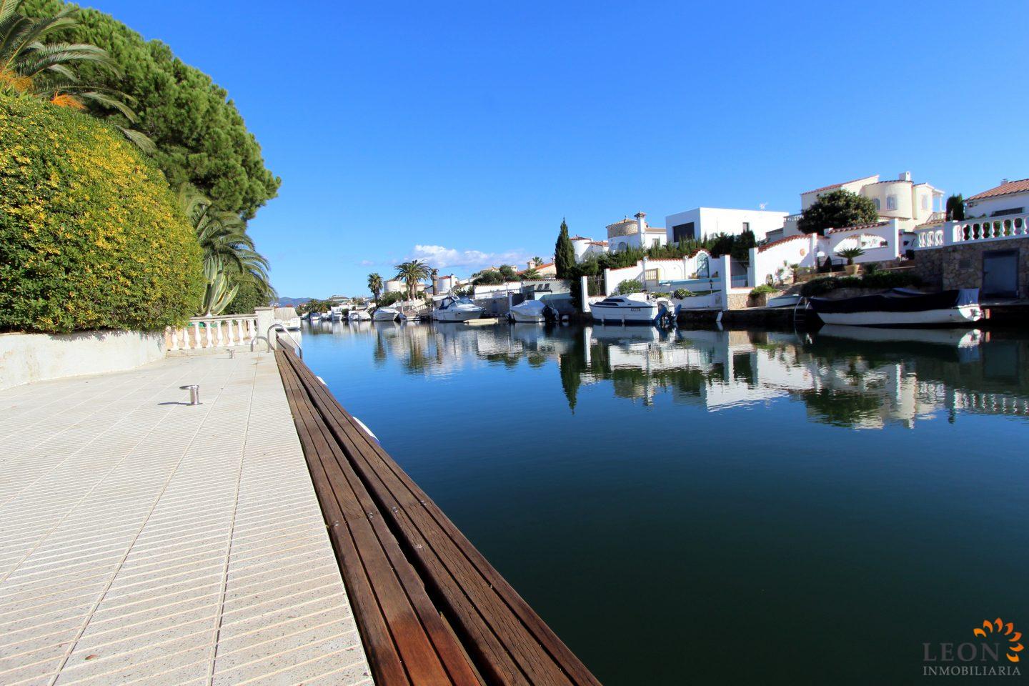 This beautiful villa is located near the entrance of Empuriabrava with a plot of 674 m2 and a living area of 140 m2 and is divided as follows. On the ground floor there is a spacious and bright living area with access to the beautiful terrace with pool, 15 m jetty and a fantastic view over the wide canal, a well equipped open kitchen, 3 bedrooms and 2 bathrooms. An outside staircase from the terrace leads to the 1st floor, where you will find the 4 bedroom with bathroom.. Equipped with: Air conditioning, shutters, satellite TV (ES/DE/FR). Outside there is a barbecue, outdoor shower, parking space in the enclosed property. Empuriabrava is located in the Gulf of Roses, surrounded by the Natural Park of the Aiguamolls de l'Empordà. It represents the largest marina in Europe, with about 24 km of navigable canals. Empuriabrava is a fantastic starting point to discover a great variety of beaches of the Costa Brava, as well as for excursions to the countryside and fascinating coastal villages. The surrounding area offer unlimited recreational opportunities like skydiving, all kinds of water sport activities and golf, as well as numerous cultural attractions such as the Dali museum in Figueres, the monastery of Sant Pere de Rodes and the Greek and Roman ruins of Ampurias. For further information about this property, or indeed other holiday properties, please contact LEON INMOBILIARIA by email or telephone at our main office in Empuriabrava: 0034 / 972 45 00 37.