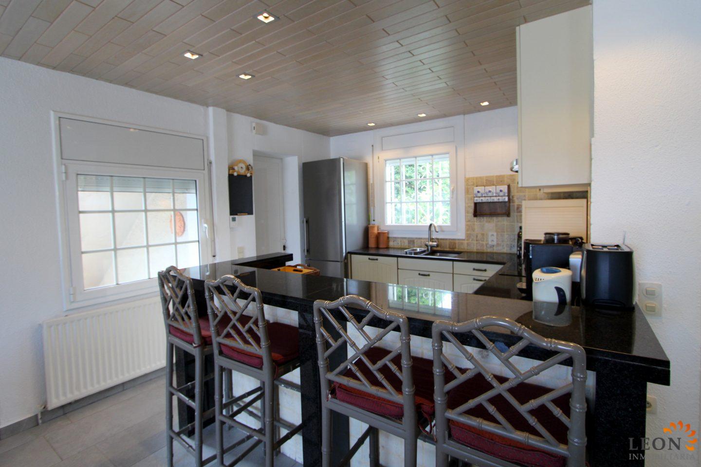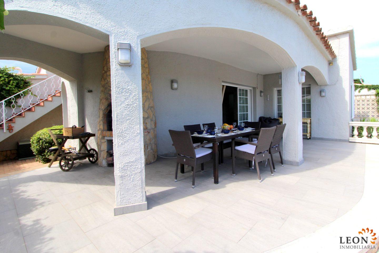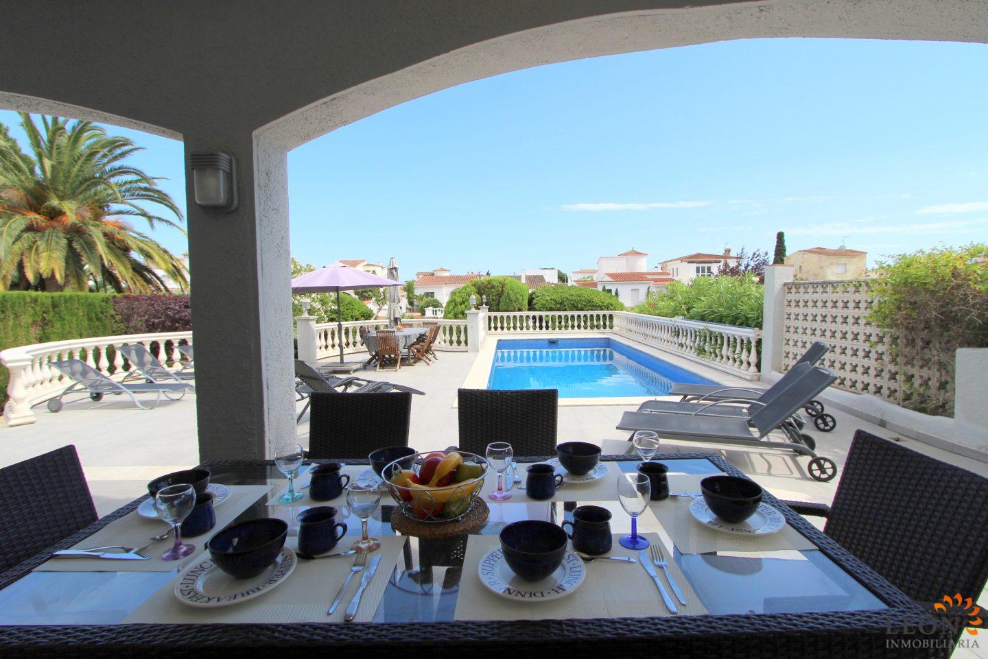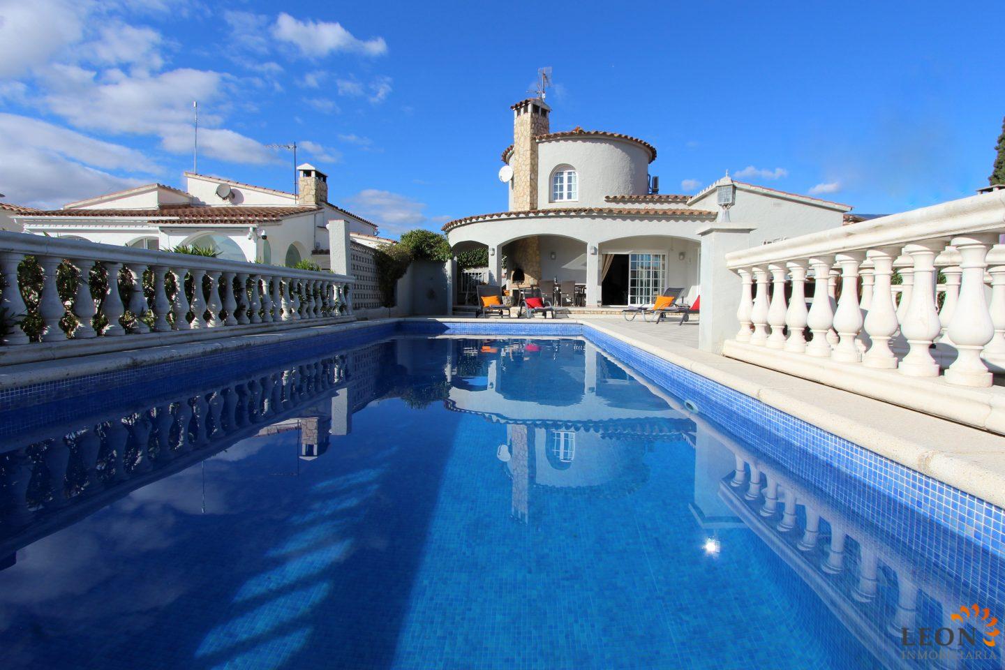 This beautiful villa is located near the entrance of Empuriabrava with a plot of 674 m2 and a living area of 140 m2 and is divided as follows. On the ground floor there is a spacious and bright living area with access to the beautiful terrace with pool, 15 m jetty and a fantastic view over the wide canal, a well equipped open kitchen, 3 bedrooms and 2 bathrooms. An outside staircase from the terrace leads to the 1st floor, where you will find the 4 bedroom with bathroom.. Equipped with: Air conditioning, shutters, satellite TV (ES/DE/FR). Outside there is a barbecue, outdoor shower, parking space in the enclosed property. Empuriabrava is located in the Gulf of Roses, surrounded by the Natural Park of the Aiguamolls de l'Empordà. It represents the largest marina in Europe, with about 24 km of navigable canals. Empuriabrava is a fantastic starting point to discover a great variety of beaches of the Costa Brava, as well as for excursions to the countryside and fascinating coastal villages. The surrounding area offer unlimited recreational opportunities like skydiving, all kinds of water sport activities and golf, as well as numerous cultural attractions such as the Dali museum in Figueres, the monastery of Sant Pere de Rodes and the Greek and Roman ruins of Ampurias. For further information about this property, or indeed other holiday properties, please contact LEON INMOBILIARIA by email or telephone at our main office in Empuriabrava: 0034 / 972 45 00 37.