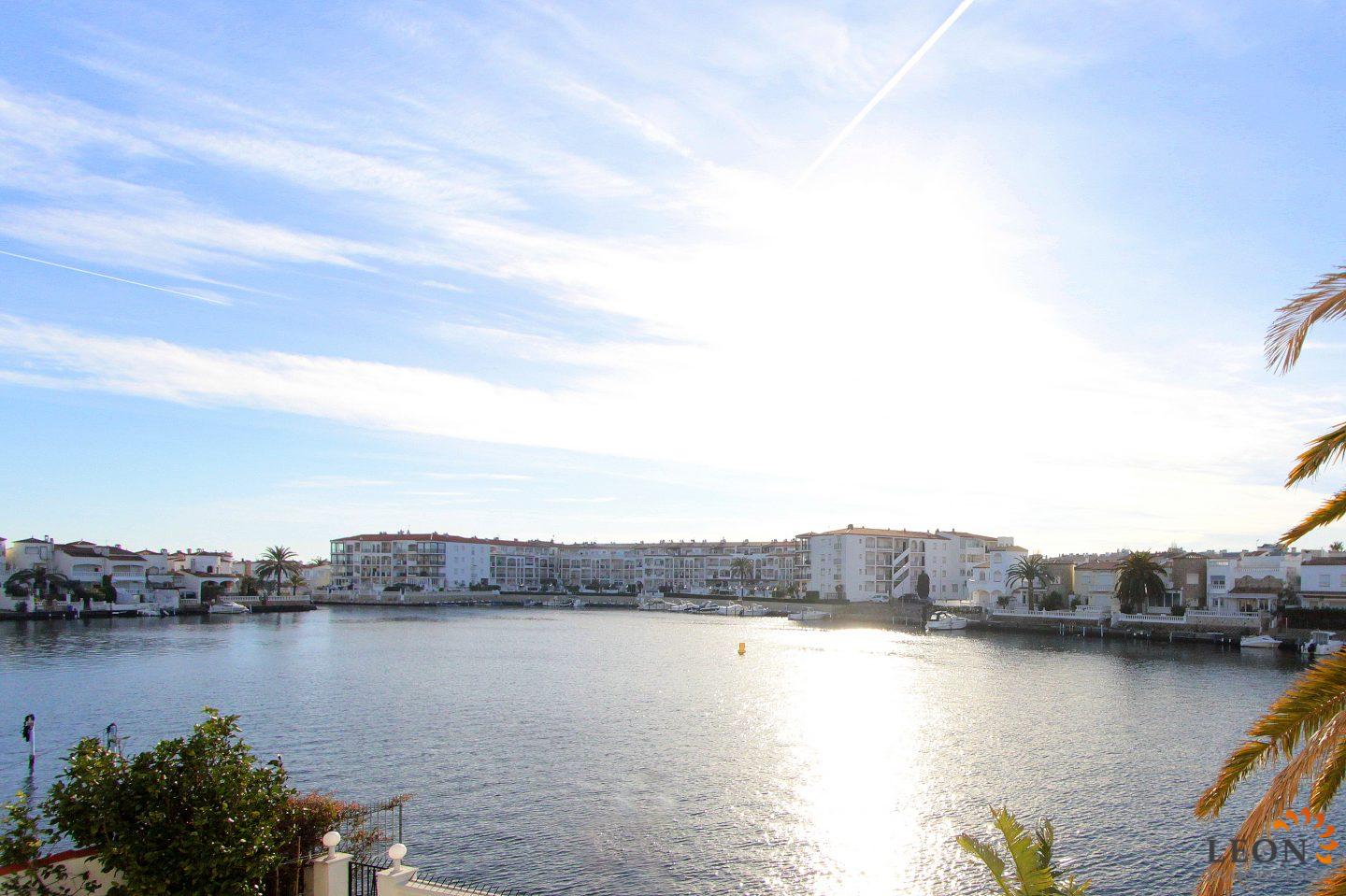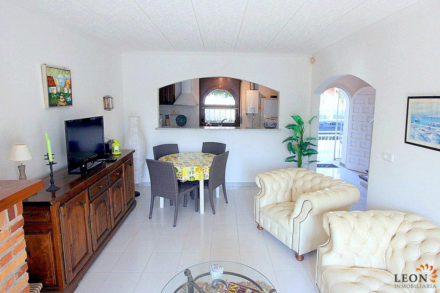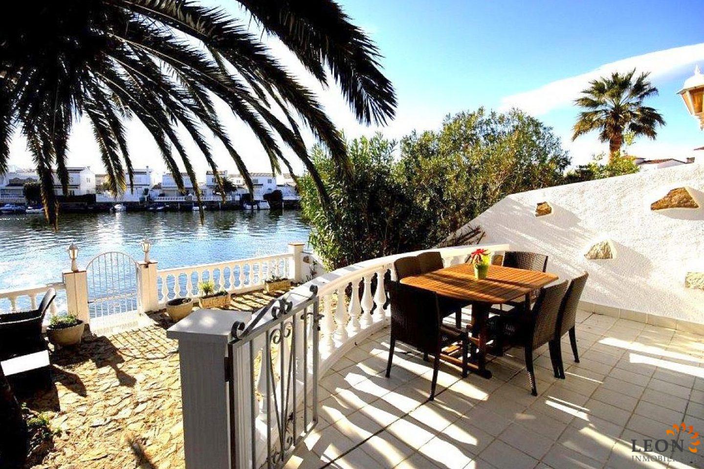 This terraced house is located on Lake San Maurici in Empuriabrava and offers beautiful views from the balcony, the covered terrace and the garden. The house consists of 3 bedrooms (2 with reversible air conditioning), 1 bathroom and a guest toilet, a pleasant living/dining room (also with air conditioning) with fireplace and a well-equipped kitchen with breakfast bar. From the living room you have access to the terrace with beautiful lake views. A few steps down, a terrace with a small garden ideal for sunbathing, from where you can reach the private jetty. The house is equipped with reversible air conditioning (hot/cold air), a washing machine and a dishwasher, the garage is not suitable for the car. Situated near the entrance of Empuriabrava, there is a good choice of restaurants and shops within walking distance. The gorgeous sandy beach is a mere km away, whilst the beautiful beaches of Santa Margarita and Roses are easy and quick to reach by car. Additionally, Empuriabrava and the surrounding area offer a large range of recreational opportunities like skydiving, all kinds of water sport activities and golf, as well as numerous cultural attractions such as the Dali museum in Figueres, the monastery of Sant Pere de Rodes and the Greek and Roman ruins of Ampurias. For further information about this property, or indeed other holiday properties, please contact LEON INMOBILIARIA by email or telephone at our main office in Empuriabrava: 0034 / 972 45 00 37.