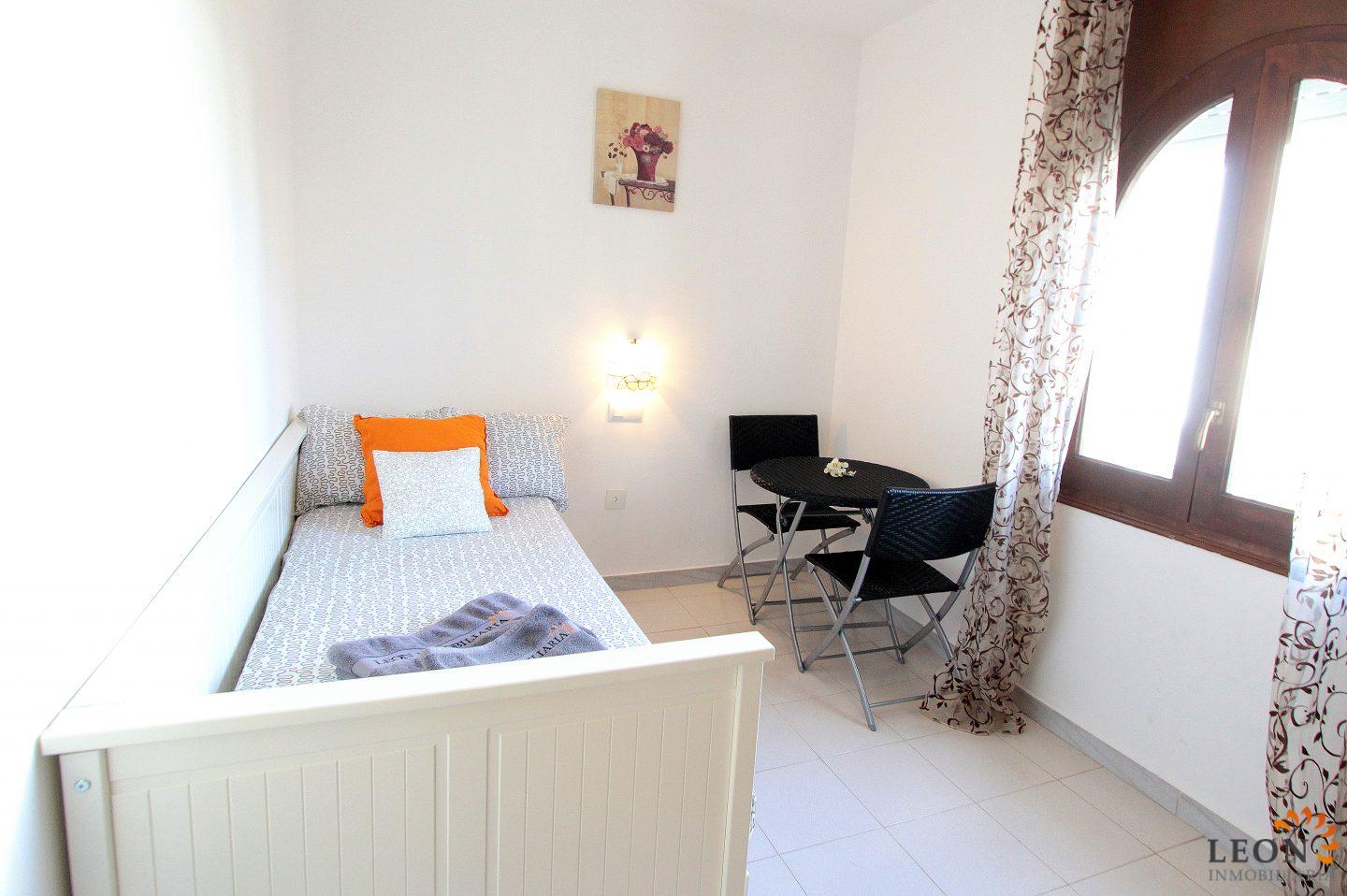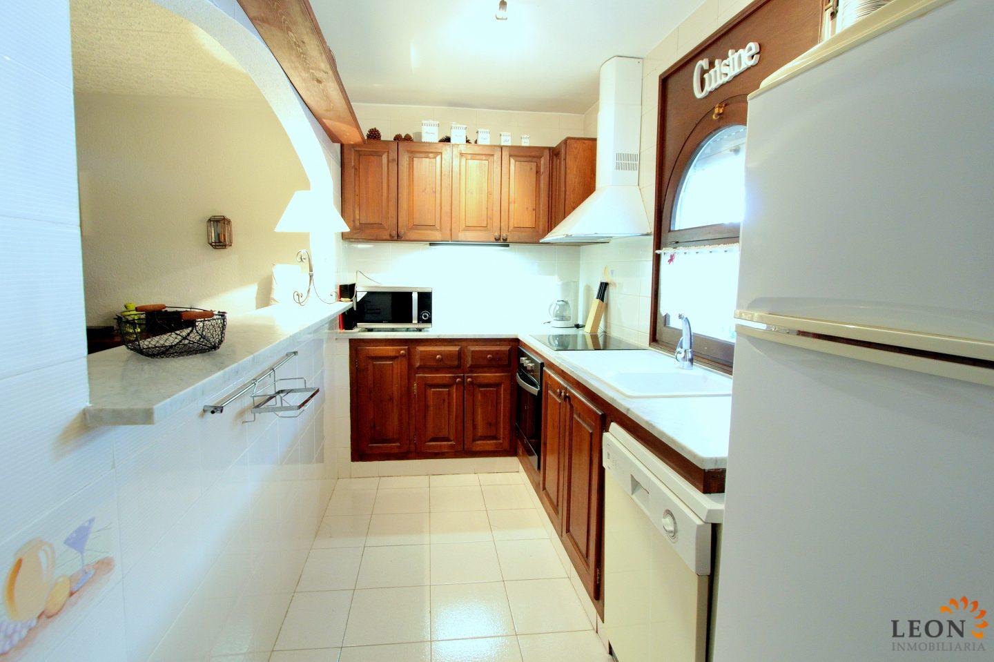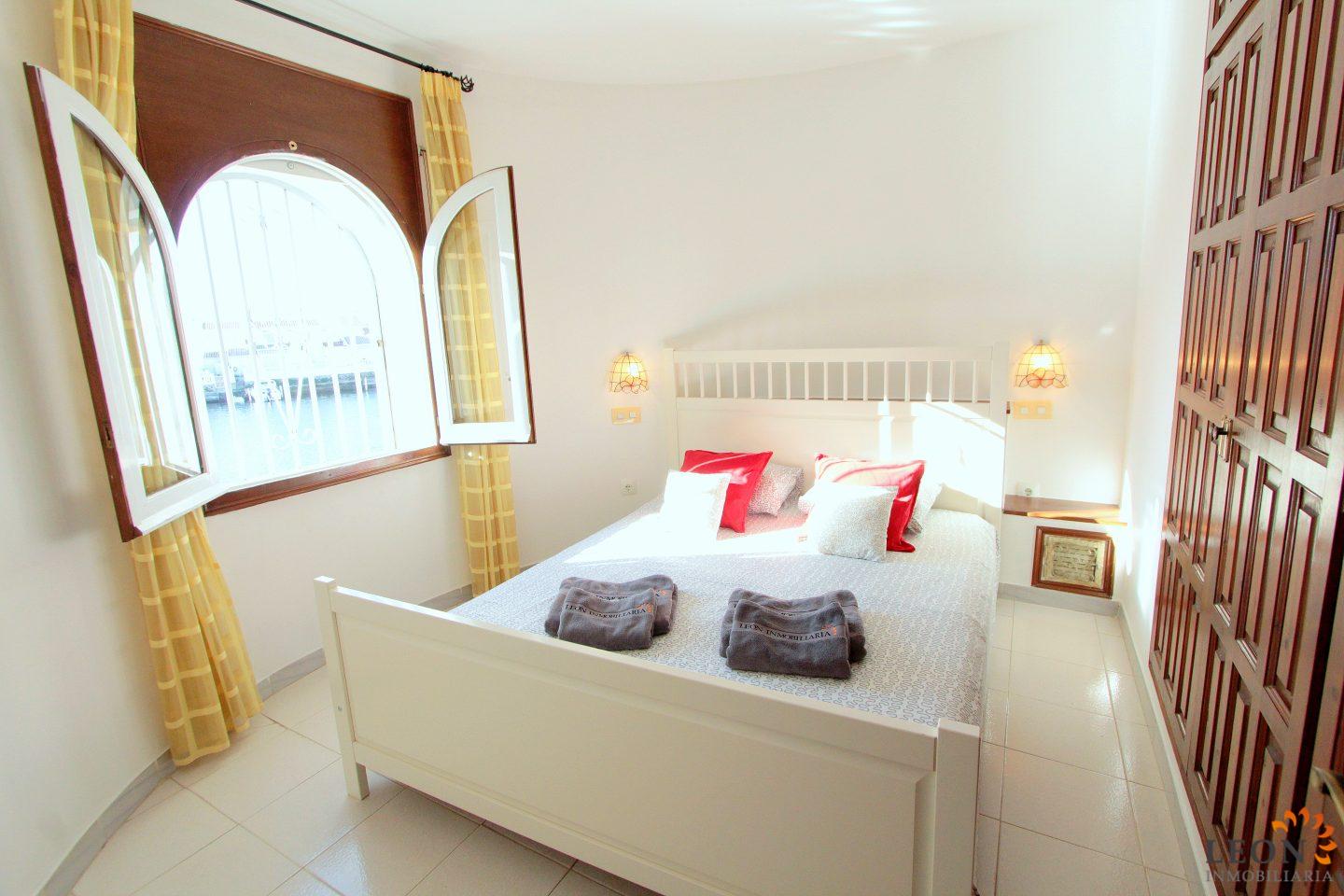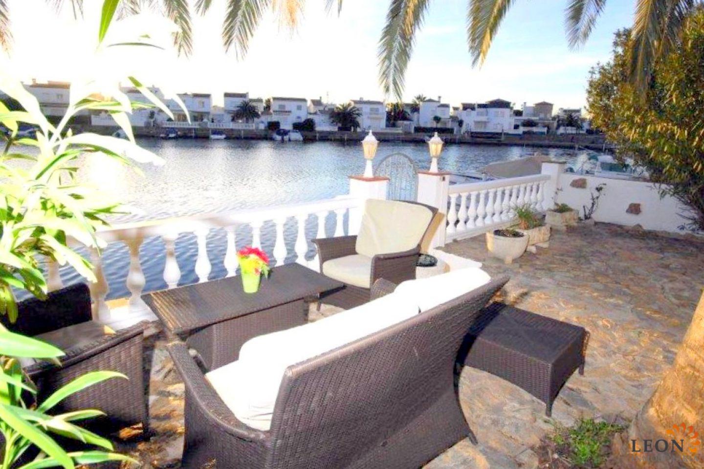 This terraced house is located on Lake San Maurici in Empuriabrava and offers beautiful views from the balcony, the covered terrace and the garden. The house consists of 3 bedrooms (2 with reversible air conditioning), 1 bathroom and a guest toilet, a pleasant living/dining room (also with air conditioning) with fireplace and a well-equipped kitchen with breakfast bar. From the living room you have access to the terrace with beautiful lake views. A few steps down, a terrace with a small garden ideal for sunbathing, from where you can reach the private jetty. The house is equipped with reversible air conditioning (hot/cold air), a washing machine and a dishwasher, the garage is not suitable for the car. Situated near the entrance of Empuriabrava, there is a good choice of restaurants and shops within walking distance. The gorgeous sandy beach is a mere km away, whilst the beautiful beaches of Santa Margarita and Roses are easy and quick to reach by car. Additionally, Empuriabrava and the surrounding area offer a large range of recreational opportunities like skydiving, all kinds of water sport activities and golf, as well as numerous cultural attractions such as the Dali museum in Figueres, the monastery of Sant Pere de Rodes and the Greek and Roman ruins of Ampurias. For further information about this property, or indeed other holiday properties, please contact LEON INMOBILIARIA by email or telephone at our main office in Empuriabrava: 0034 / 972 45 00 37.