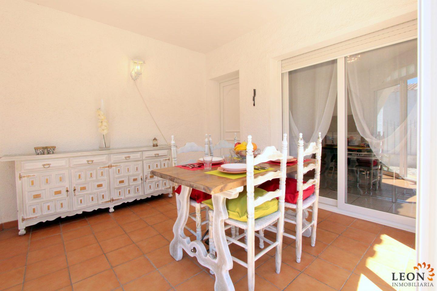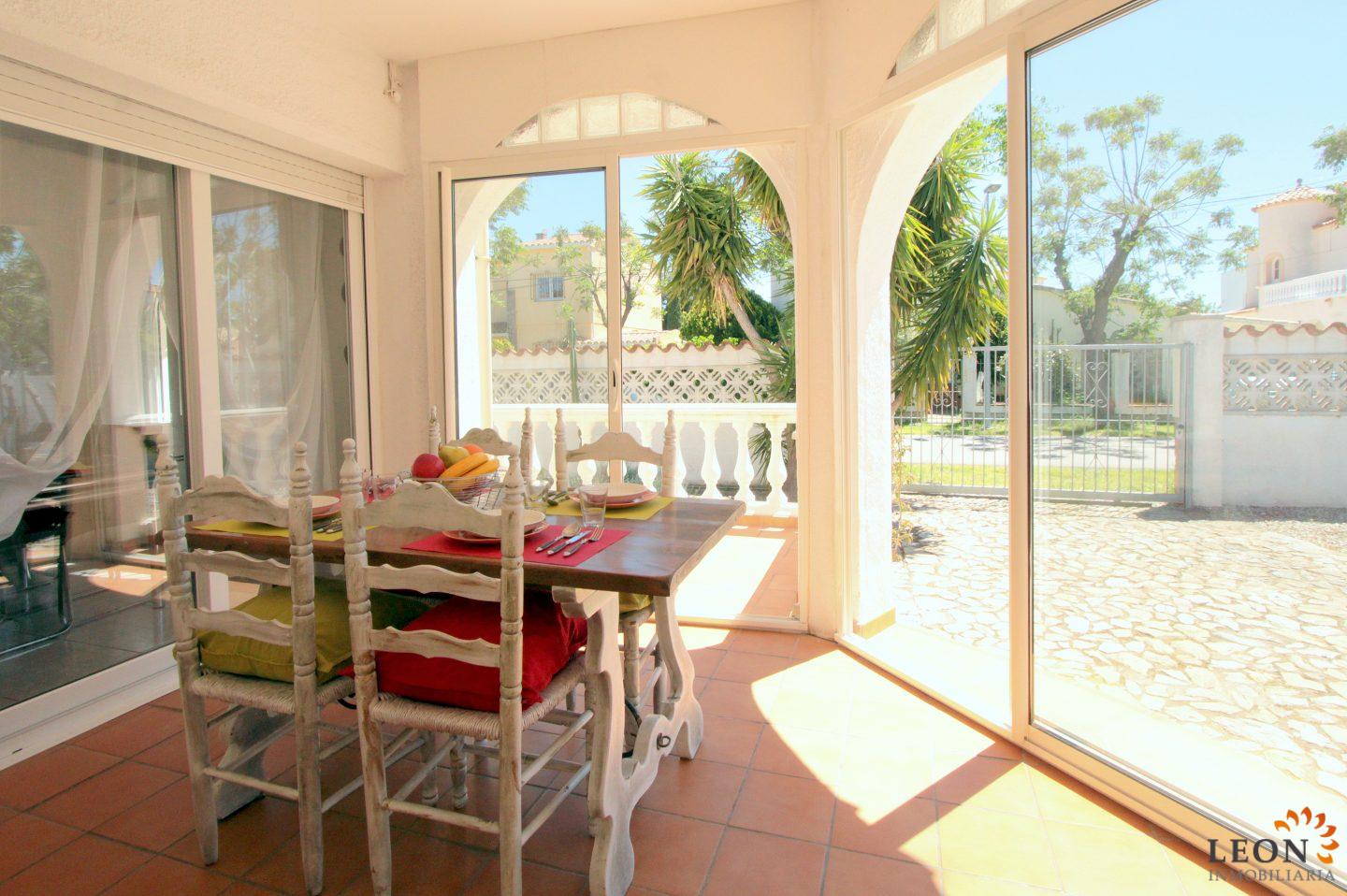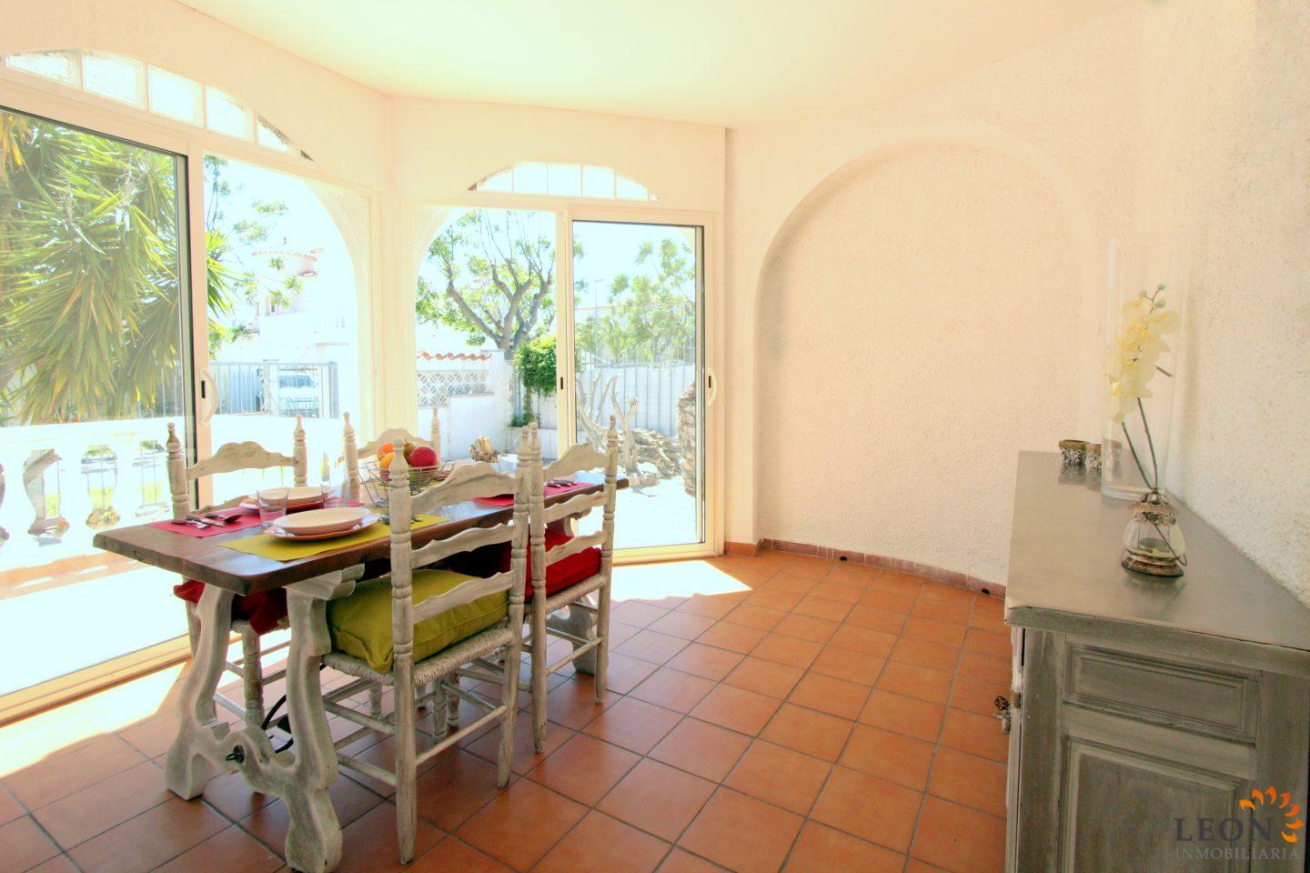 This lovely semi-detached house is located near the centre of Empuriabrava and consists of 2 double bedrooms, 1 bathroom, a spacious living/dining area with air conditioning (hot/cold air), SAT-TV (DE/FR/UK), a fully equipped kitchen with dishwasher, washing machine in the garage. From the dining room you have access to the covered terrace, BBQ, the entrance to the garage (the garage is not suitable for a car) is paved, closed plot with parking possibility. Due to the central location of the villa, shops, restaurants and the sandy beach are all within easy walking distance. Additionally, Empuriabrava and the surrounding area offer unlimited recreational opportunities like skydiving, all kinds of water sport activities and golf, as well as a wide choice of cultural attractions. While spoilt for choice of water sport activities in the town and its surroundings, there is also a wide variety of cultural attractions within half an hour by car, such as the Dali Museum in Figueres, the ruins of Ampurias and the monastery of Sant Pere de Rodes. For further information about this property, or indeed other holiday properties, please contact LEON INMOBILIARIA by email or telephone at our main office in Empuriabrava: 0034 / 972 45 00 37.