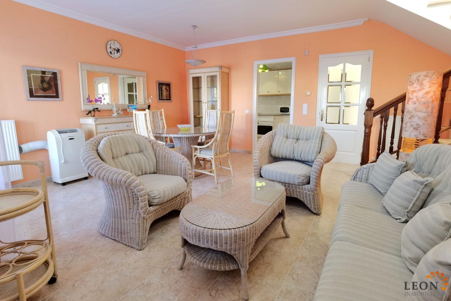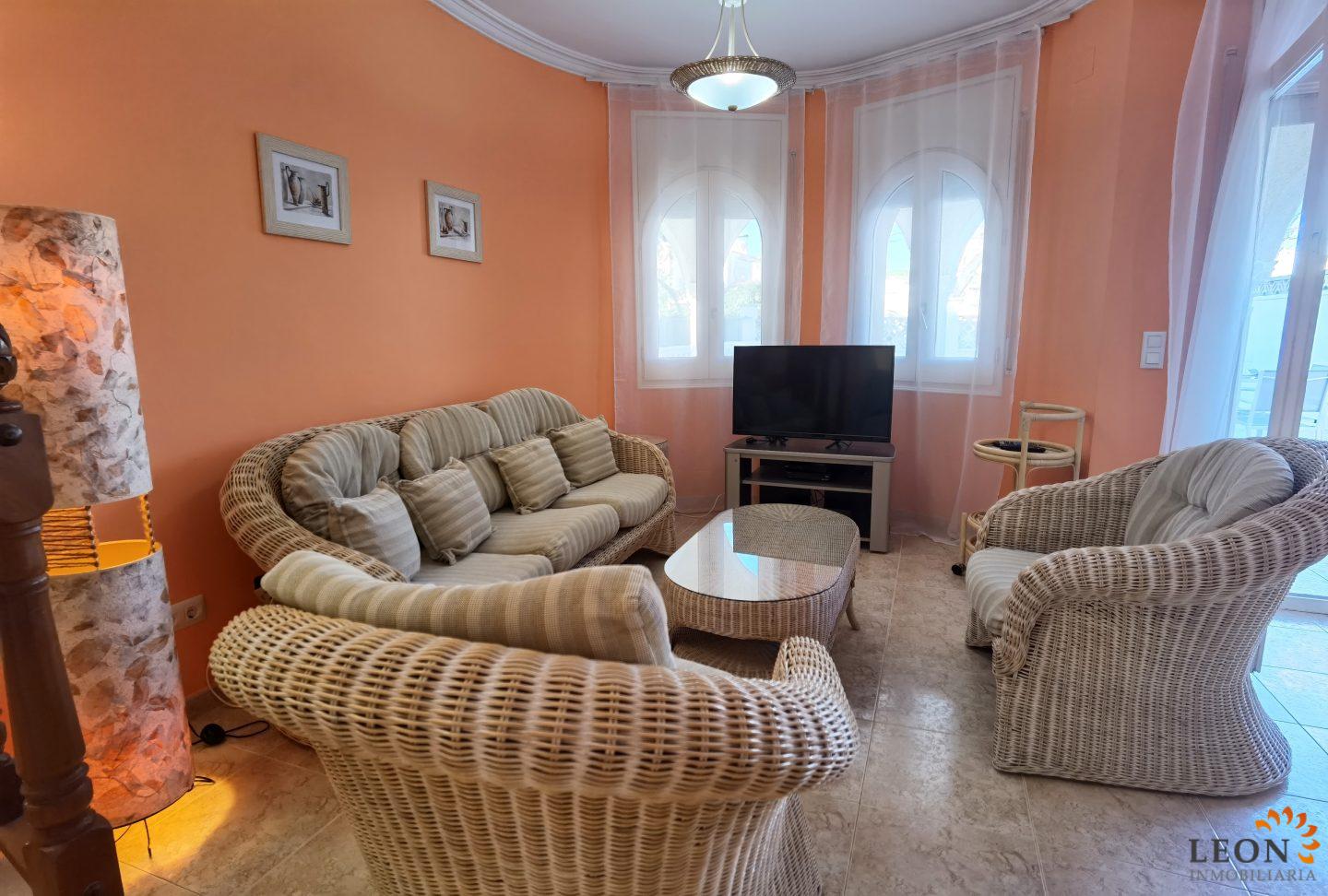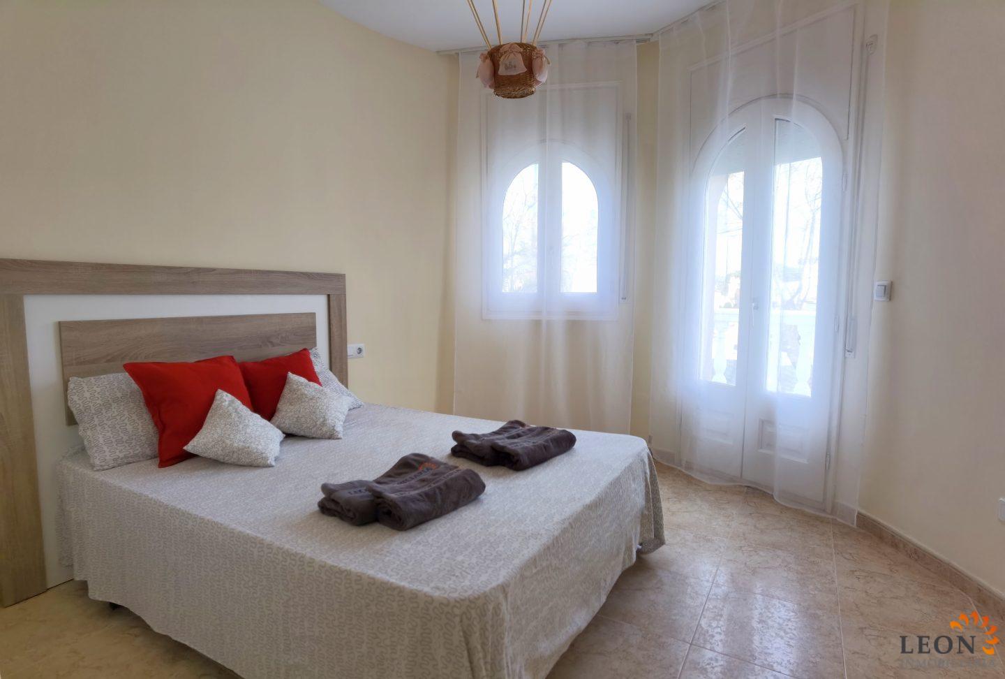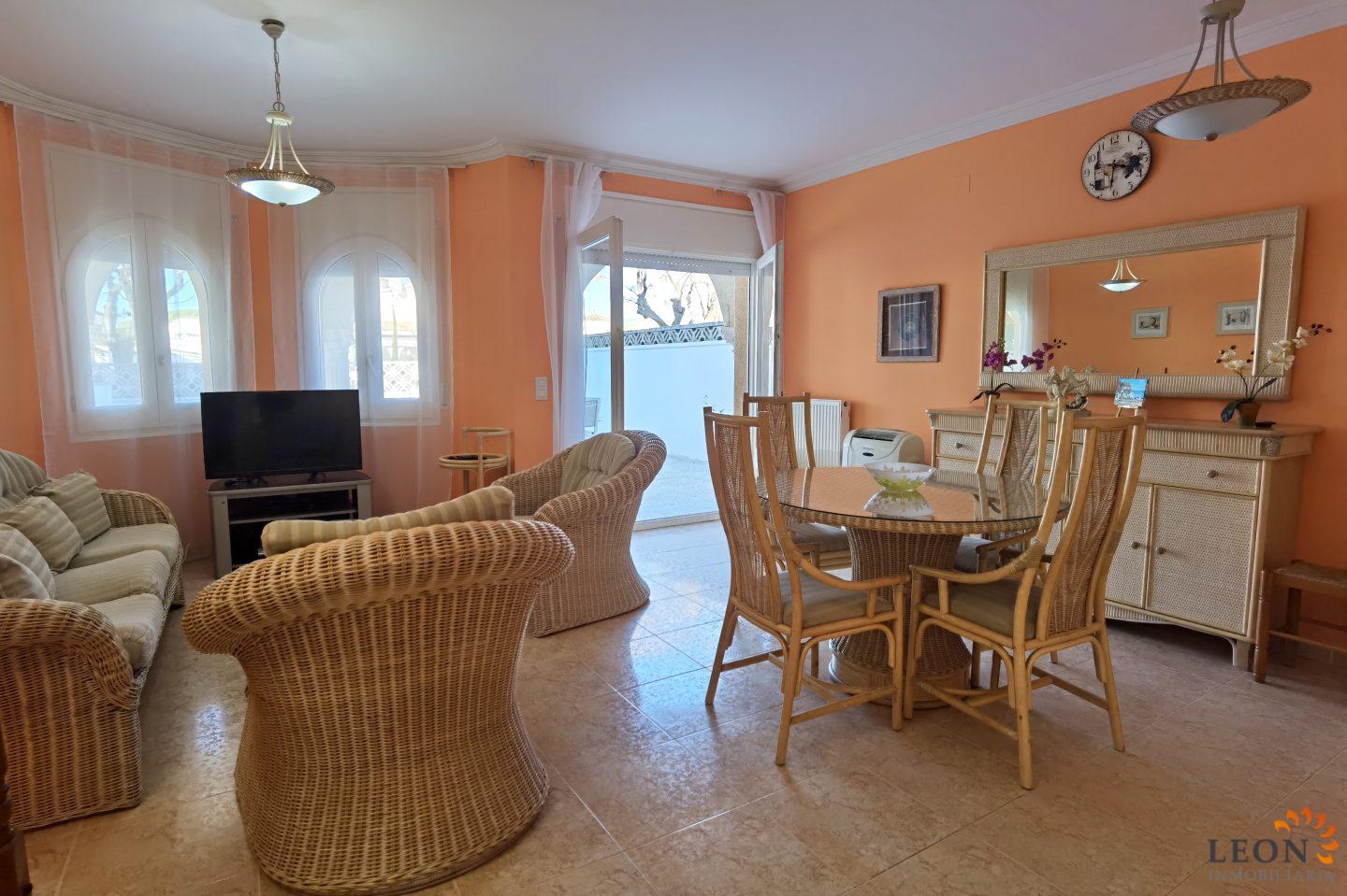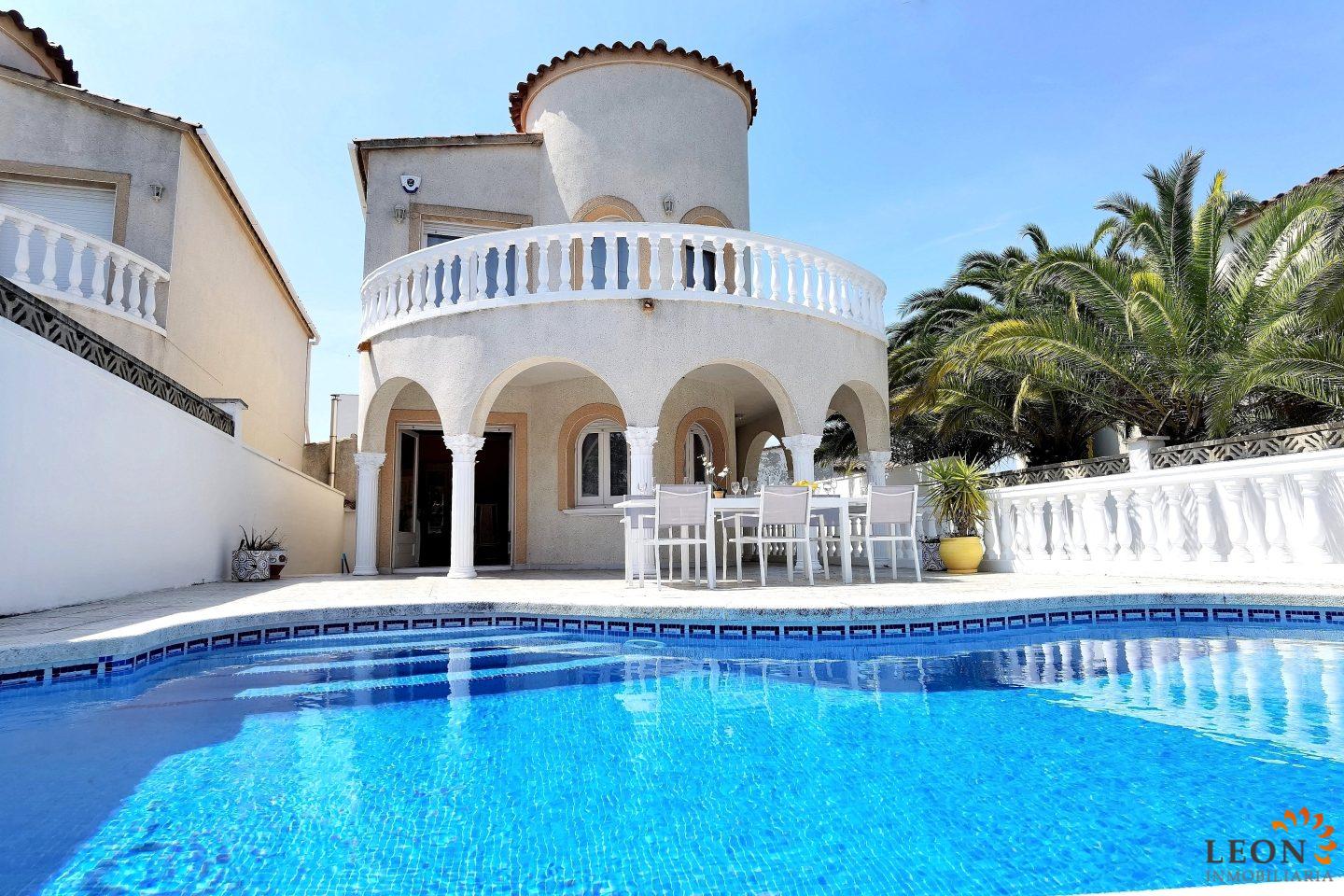 This charming holiday villa is located in a quiet residential area close to the centre of Empuriabrava. The property distributes its 191 m² of living space over two floors and stands on a 292m² plot. The ground floor consists of a bedroom with double bed, a bathroom with shower, a fully equipped kitchen and a bright, cosy living/dining room, which allows direct access to the lovely terrace with pool. A pretty stone staircase leads to the first floor, which consists of three bedrooms (two with double bed, one with two loft beds) and a bathroom with shower and bathtub. In addition, one of the two double bedrooms and the room with two loft beds, have direct access to the large balcony with a view of the beautiful mountains and the pool. Outside, there is a covered terrace with a large pool, perfect for relaxing and sunbathing, a garage converted into a laundry room and several parking spaces. The elegant arches of the villa and the traditional tiles on the balcony and terrace reflect the typical style of Empuriabrava. In addition, the villa has air conditioning, satellite TV, WIFI, a dishwasher, a washing machine and roller shutters. The central location of the holiday villa in Empuriabrava offers relatively short distances to local amenities, its lively centre and the fine sandy beach along the Mediterranean coast. Empuriabrava and its surroundings offer limitless leisure opportunities such as skydiving, all kinds of water sports activities and golf courses, as well as a rich selection of cultural attractions such as the Dali Museum in Figueres, the ruins of Ampurias and the monastery of Sant Pere de Rodes. For more information about the property or other holiday properties, please contact LEON INMOBILIARIA by email or telephone at the main office in Empuriabrava on: 0034 / 972 45 00 37.