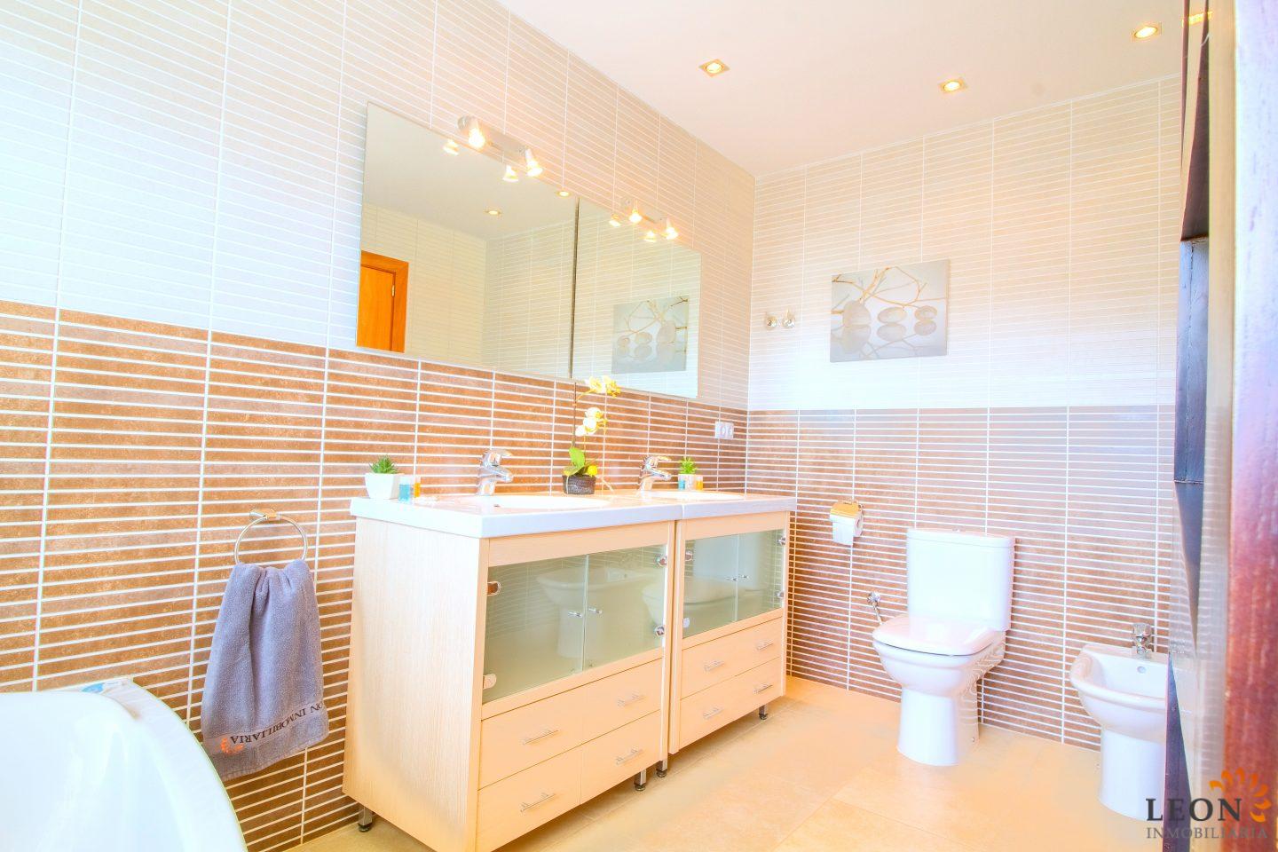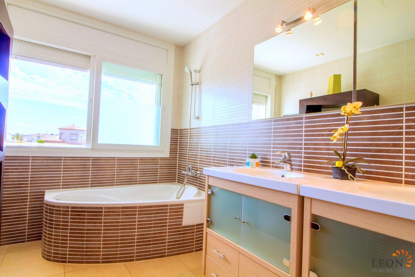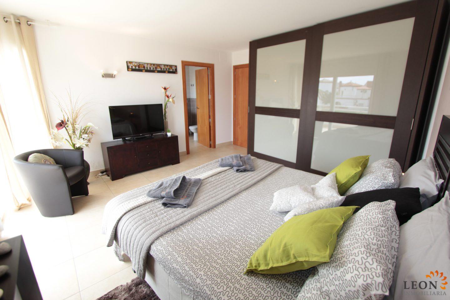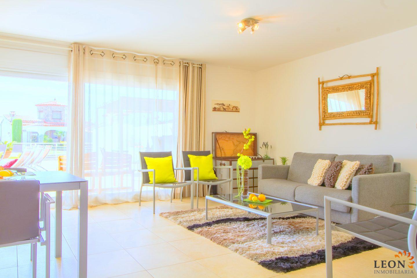 This modern villa has a living area of 125 m² spread over 2 floors. The living space consists of a spacious open plan living area with reversible air conditioning (hot/cold air), a fully equipped American style kitchen, 3 bedrooms (1 ensuite) all with reversible air conditioning, 2 bathrooms (1 with bath) and a guest toilet. The outdoor area offers a large terrace with barbecue, swimming pool and a magnificent view to the canal, jetty of 13m (wide canal), SAT-TV (DE/UK/FR/ES), washing machine, private parking in the enclosed property. Empuriabrava has the largest marina in Europe with over 25 kilometers of navigable canals and about 5,000 moorings. In addition, Ampuriabrava is considered "Eldorado" paratroopers. In this European parachuting center you can also dare with tandem jumps throughout the year. The beach of Ampúriabrava is about 1.6 km long, is slightly inclined, light, with fine sand and one of the widest of the Costa Brava. Great for adults and children. The beautiful sandy beaches of Empuriabrava, Rosas or San Pedro Pescador invite you to take a bath. The place offers a variety of sports (diving, sailing, motorboat, yachting, surfing, kite surfing, jet skiing, water skiing, deep sea fishing, fishing, bowling, flying, parachuting, horseback riding, mini golf, tennis, go-kart track, hiking, bocce) , Next to the airfield is a flight wind tunnel where everyone can fly - from 4 years old! You will hardly find it anywhere else in Europe, it is absolutely sensational and safe. From the bar / restaurant you can also enjoy watching the flights. For further information about this property, or indeed other holiday properties, please contact LEON INMOBILIARIA by email or telephone at our main office in Empuriabrava: 0034 / 972 45 00 37.