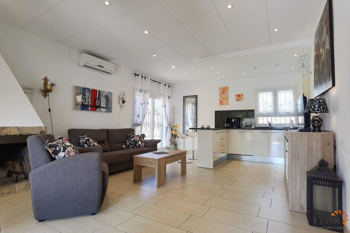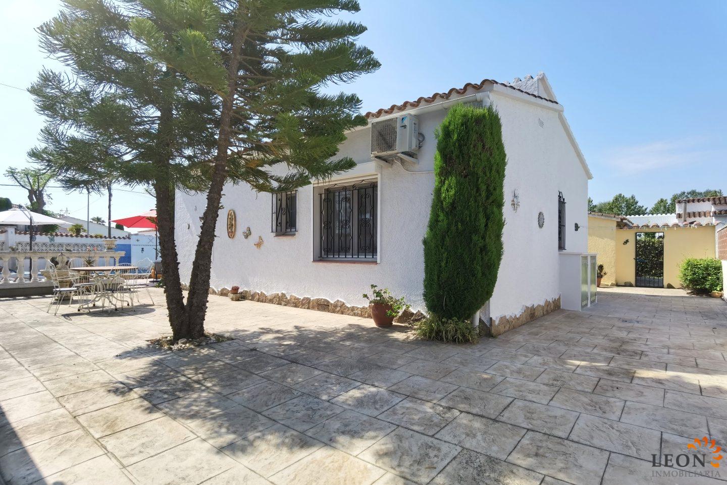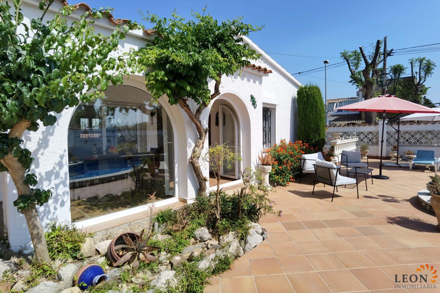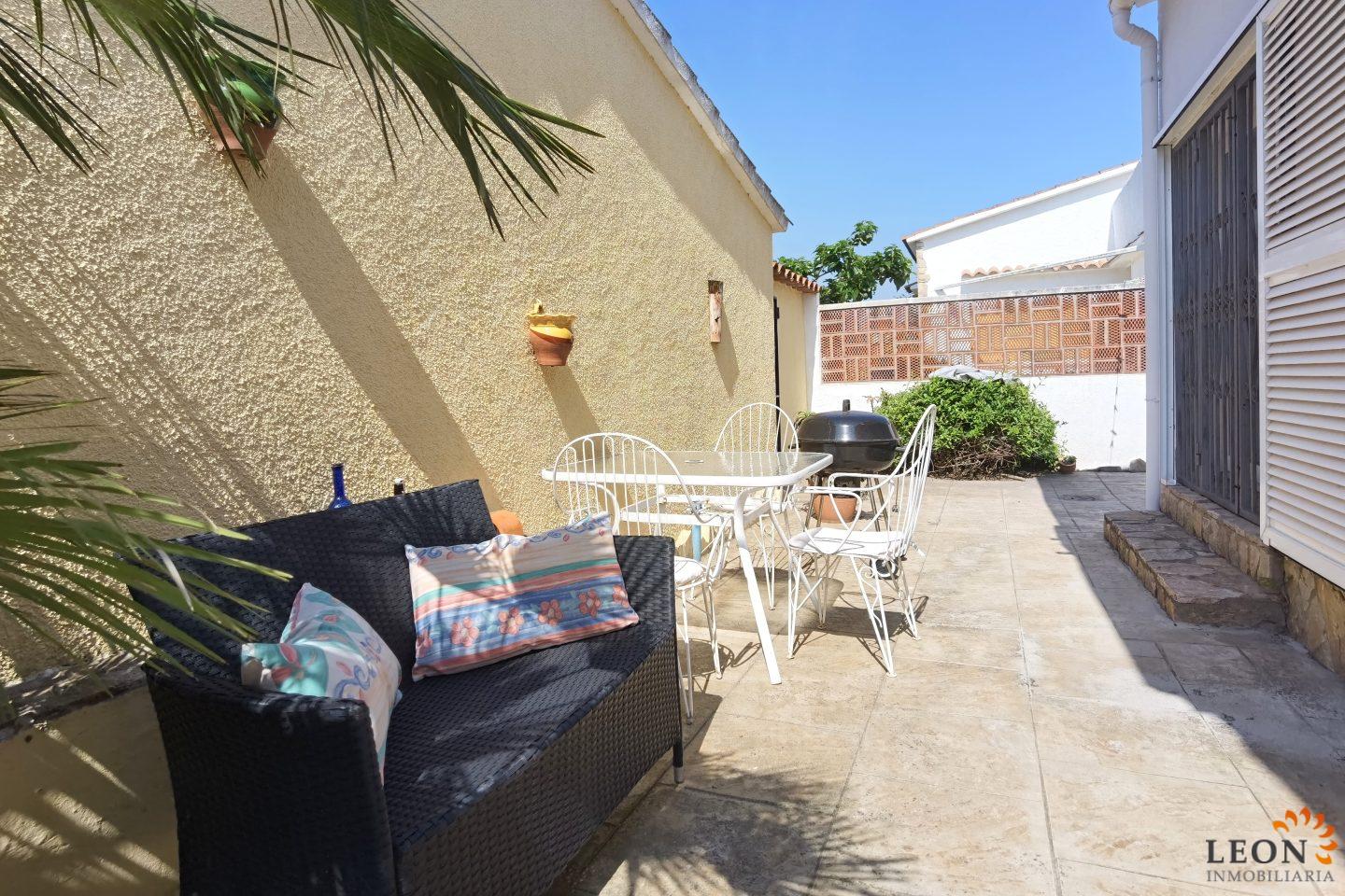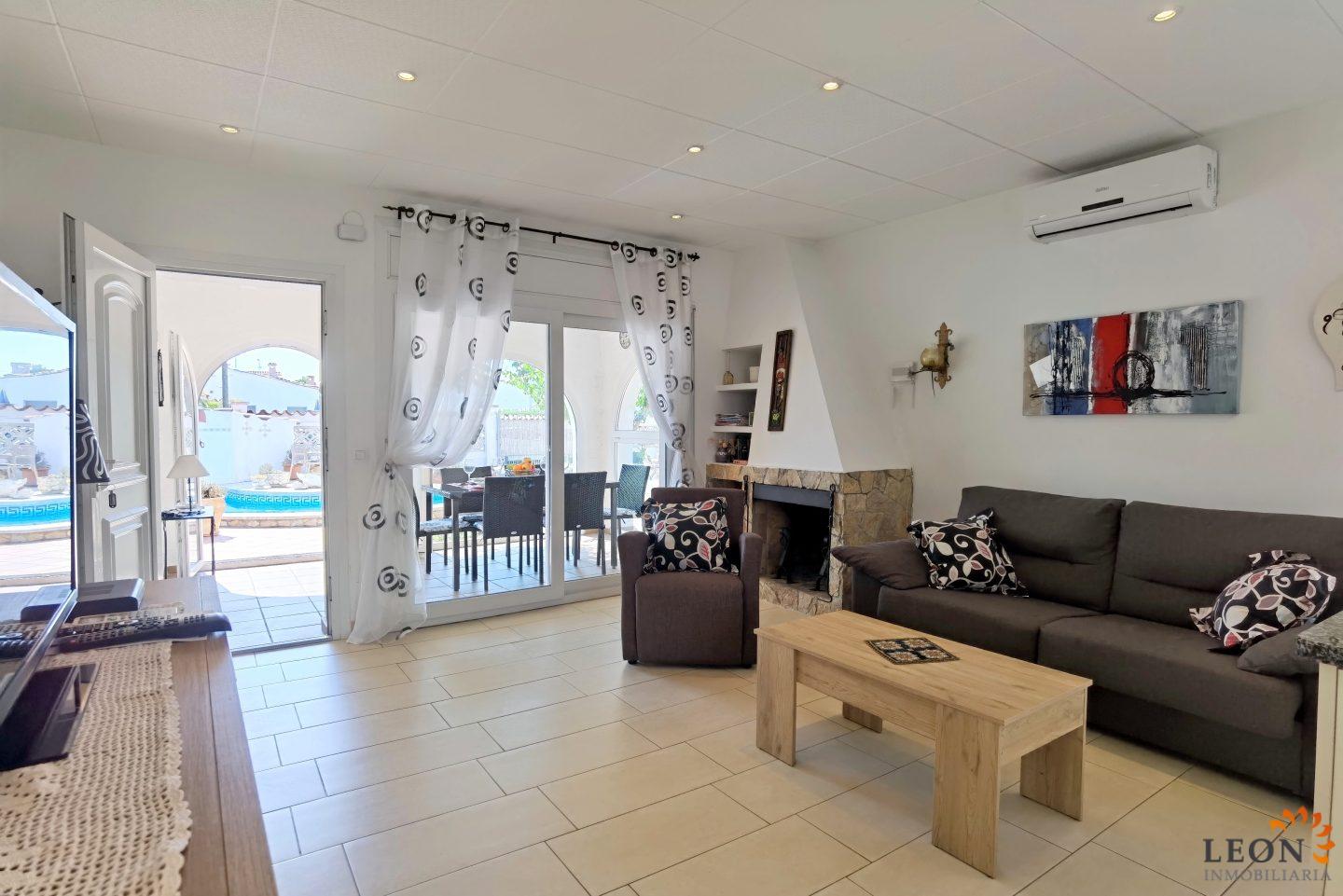 This charming house is located on a plot of 449 m² and has a living area of 64 m² with a bright living/dining room with air conditioning and open and well equipped kitchen, 2 bedrooms (1 bedroom with air conditioning) and 1 bathroom, a nice covered terrace with access to the terrace next to the private pool and parking space on the property for 1 car. This property is equipped with: Air conditioning in the living area and in one bedroom, cable/satellite TV (DE/ES), dishwasher, washing machine, barbecue, shutters, microwave, etc.. Empuriabrava has the largest marina in Europe with over 25 kilometers of navigable canals and about 5,000 moorings. In addition, Ampuriabrava is considered "Eldorado" paratroopers. In this European parachuting center you can also dare with tandem jumps throughout the year. The beach of Ampúriabrava is about 1.6 km long, is slightly inclined, light, with fine sand and one of the widest of the Costa Brava. Great for adults and children. The beautiful sandy beaches of Empuriabrava, Rosas or San Pedro Pescador invite you to take a bath. The place offers a variety of sports (diving, sailing, motorboat, yachting, surfing, kite surfing, jet skiing, water skiing, deep sea fishing, fishing, bowling, flying, parachuting, horseback riding, mini golf, tennis, go-kart track, hiking, bocce) , Next to the airfield is a flight wind tunnel where everyone can fly - from 4 years old! You will hardly find it anywhere else in Europe, it is absolutely sensational and safe. From the bar / restaurant you can also enjoy watching the flights. For further information about this property, or indeed other holiday properties, please contact LEON INMOBILIARIA by email or telephone at our main office in Empuriabrava: 0034 / 972 45 00 37.