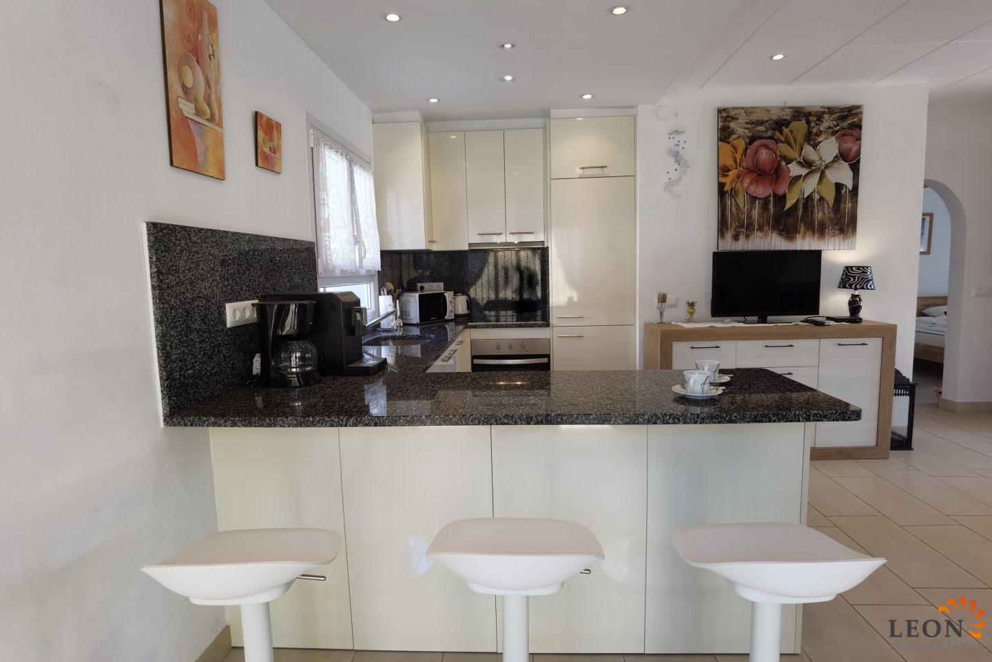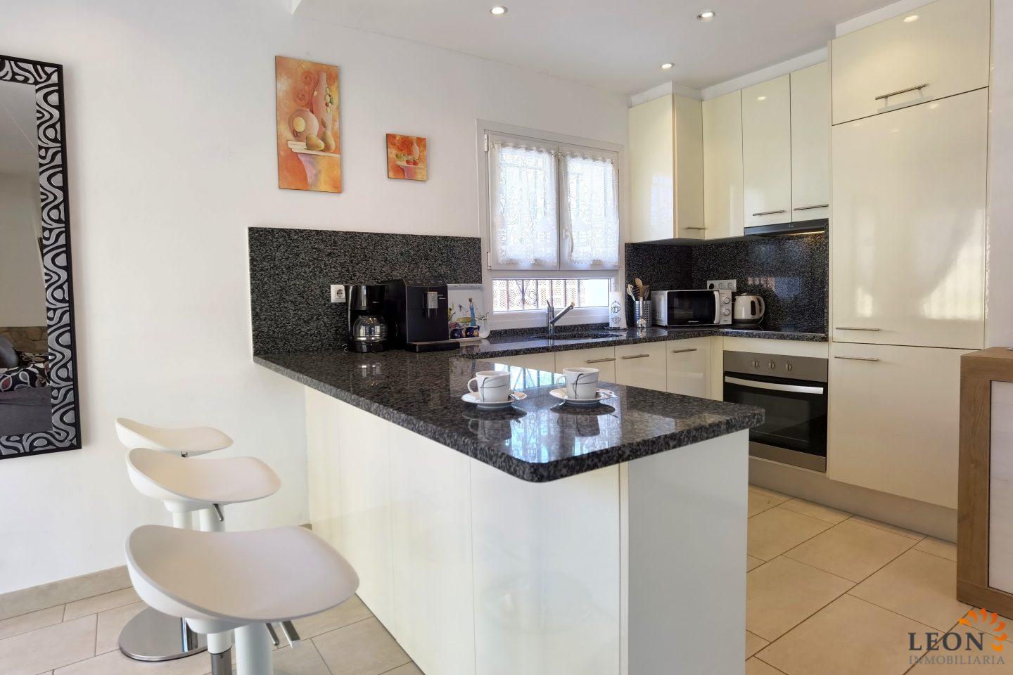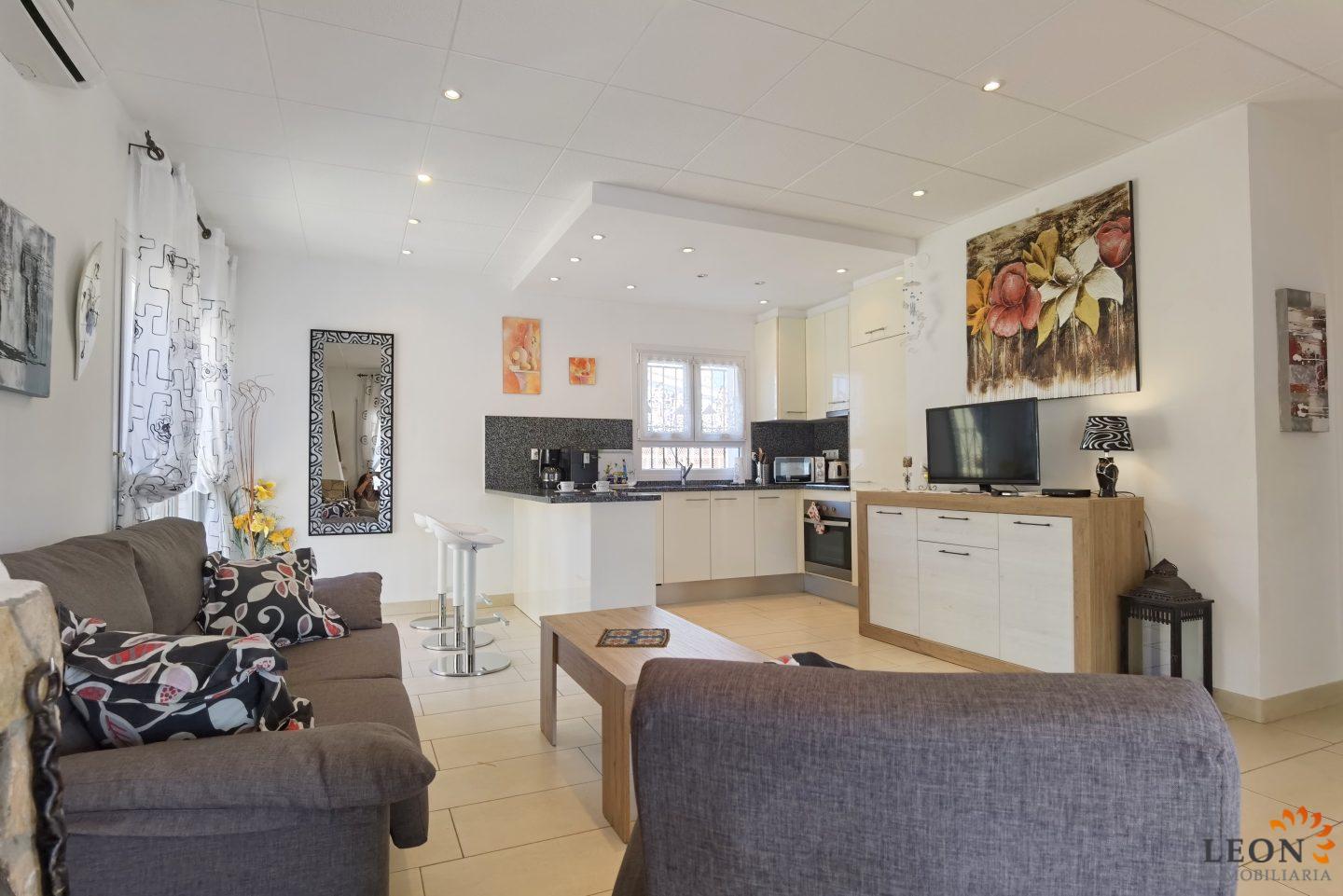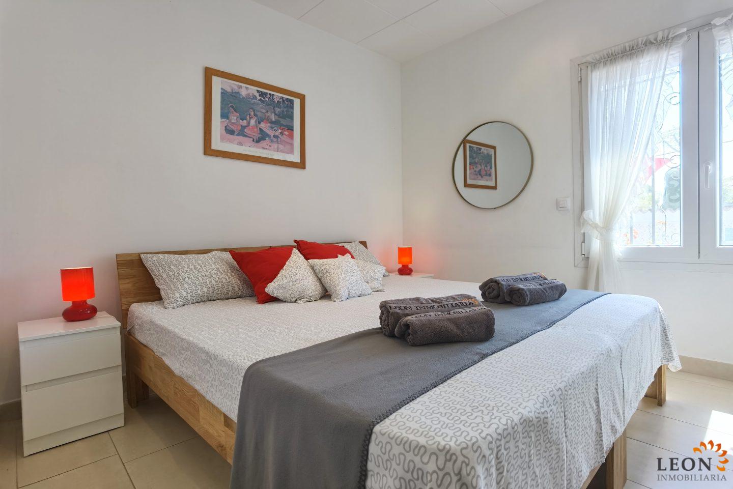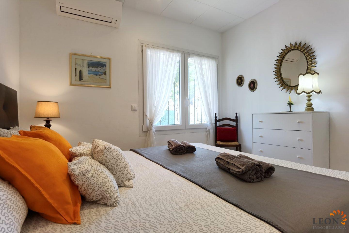 This charming house is located on a plot of 449 m² and has a living area of 64 m² with a bright living/dining room with air conditioning and open and well equipped kitchen, 2 bedrooms (1 bedroom with air conditioning) and 1 bathroom, a nice covered terrace with access to the terrace next to the private pool and parking space on the property for 1 car. This property is equipped with: Air conditioning in the living area and in one bedroom, cable/satellite TV (DE/ES), dishwasher, washing machine, barbecue, shutters, microwave, etc.. Empuriabrava has the largest marina in Europe with over 25 kilometers of navigable canals and about 5,000 moorings. In addition, Ampuriabrava is considered "Eldorado" paratroopers. In this European parachuting center you can also dare with tandem jumps throughout the year. The beach of Ampúriabrava is about 1.6 km long, is slightly inclined, light, with fine sand and one of the widest of the Costa Brava. Great for adults and children. The beautiful sandy beaches of Empuriabrava, Rosas or San Pedro Pescador invite you to take a bath. The place offers a variety of sports (diving, sailing, motorboat, yachting, surfing, kite surfing, jet skiing, water skiing, deep sea fishing, fishing, bowling, flying, parachuting, horseback riding, mini golf, tennis, go-kart track, hiking, bocce) , Next to the airfield is a flight wind tunnel where everyone can fly - from 4 years old! You will hardly find it anywhere else in Europe, it is absolutely sensational and safe. From the bar / restaurant you can also enjoy watching the flights. For further information about this property, or indeed other holiday properties, please contact LEON INMOBILIARIA by email or telephone at our main office in Empuriabrava: 0034 / 972 45 00 37.