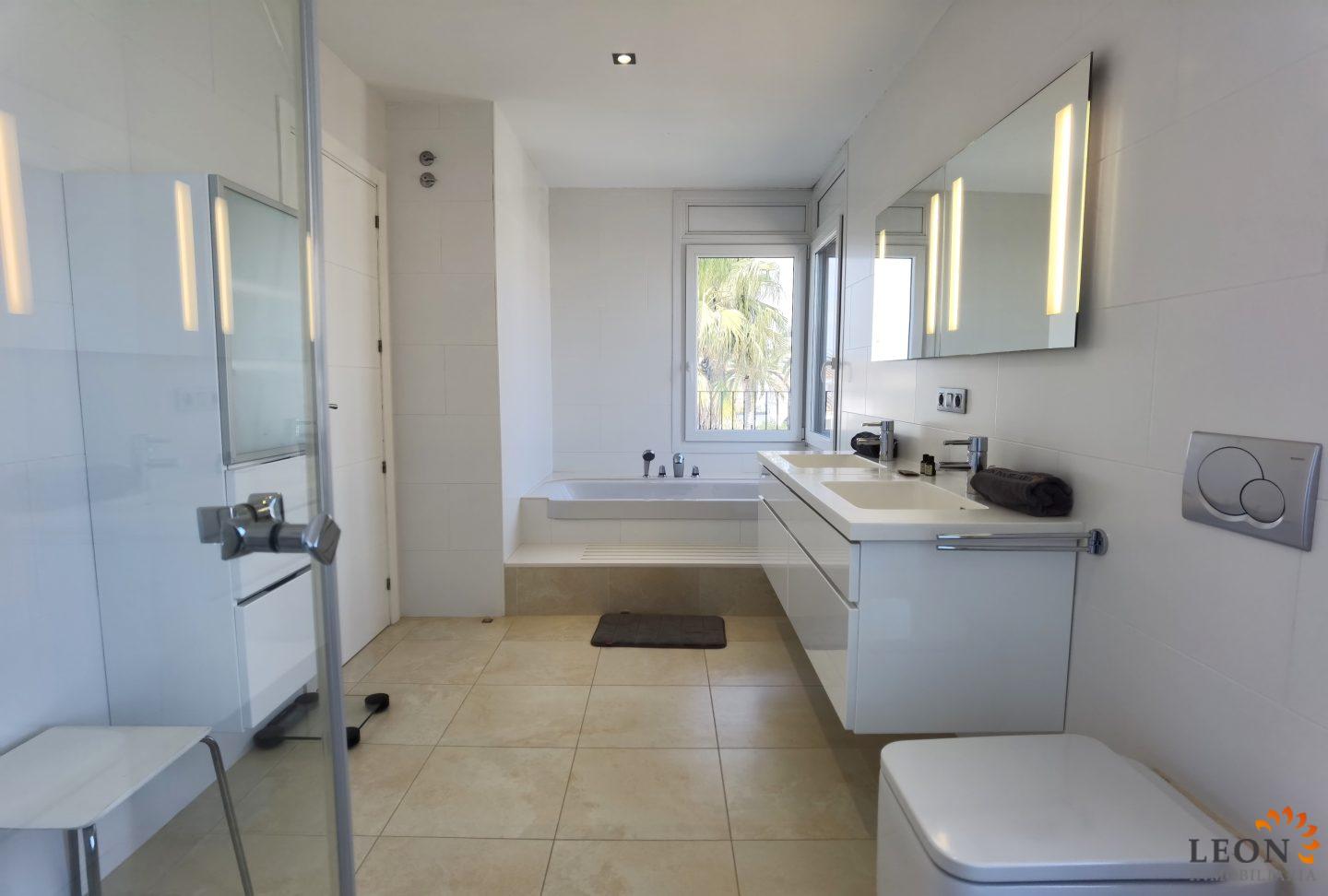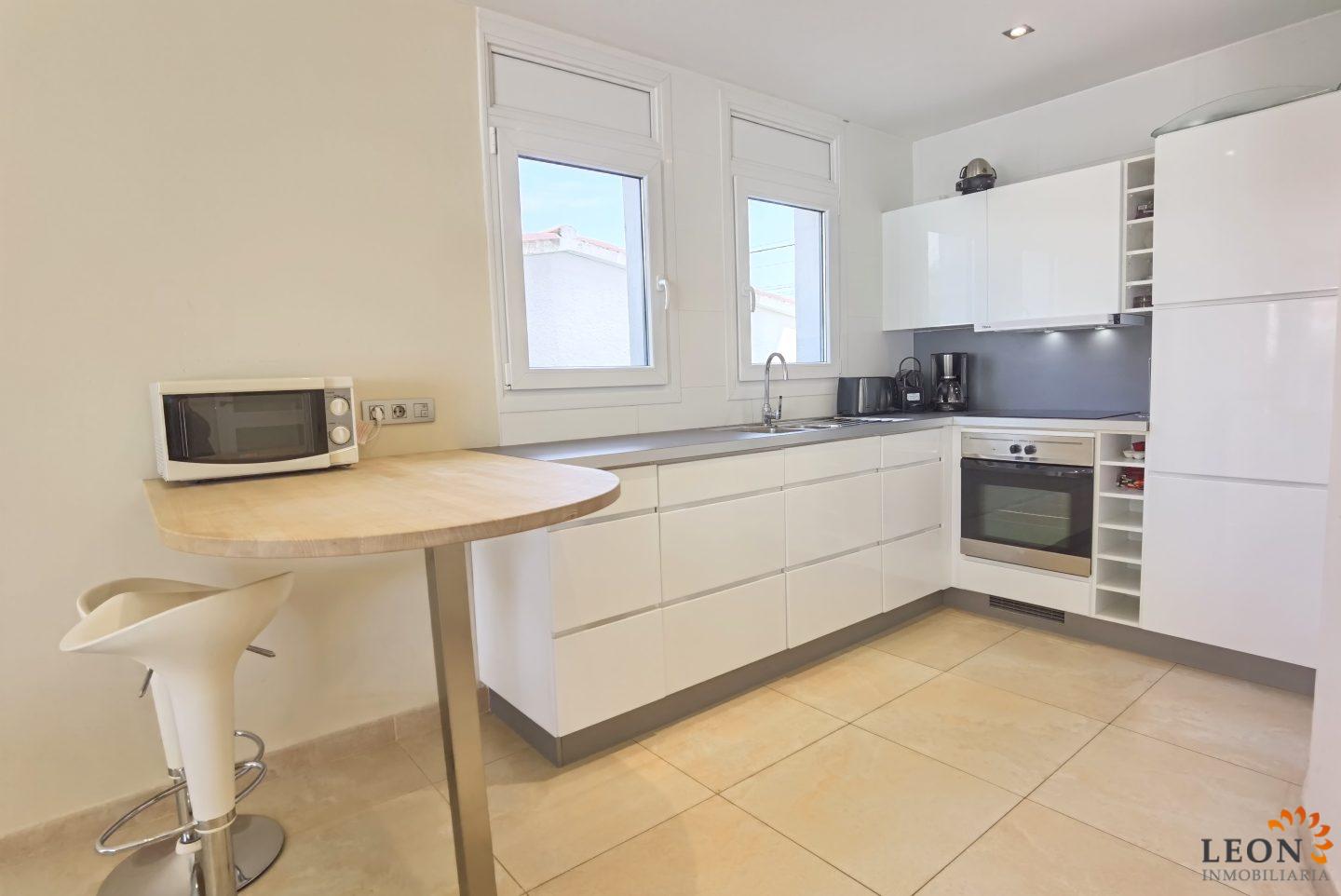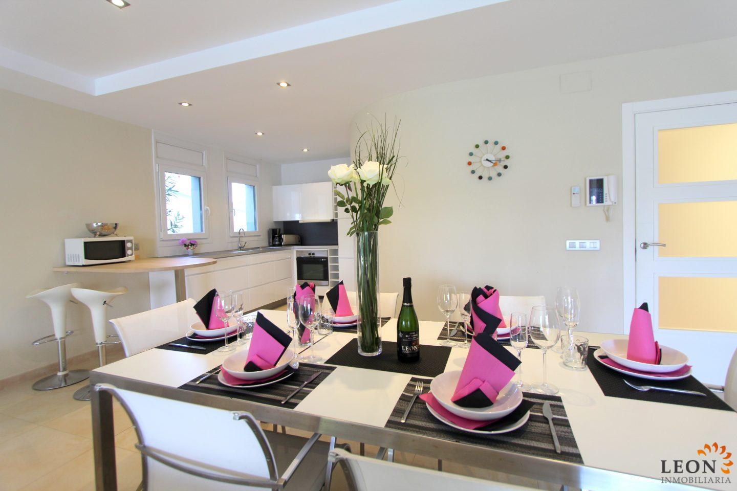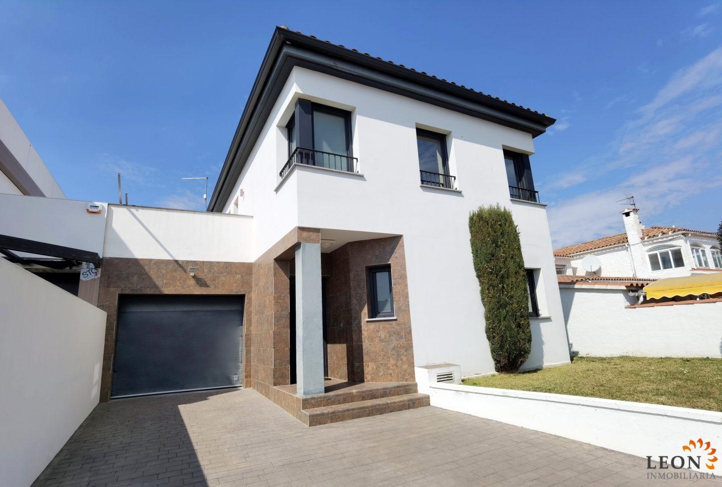 This modern and striking holiday villa near the centre of Empuriabrava is situated within a large garden on one of the canals (smal canal). Besides 4 double bedrooms and 3 bathrooms, the property boasts a spacious and light open plan living area with a fully fitted American style kitchen. The garden has a covered terrace with wonderful views over the swimming pool and canal, as well a deep 12 m long private mooring space. The views from the balcony are even more spectacular. Also worth mentioning are the barbecue, dishwasher, washing machine and cable television for extra comfort, as well as the off road private parking facility. The central location of the villa offers shops, restaurants and the sandy beach within easy walking distance. Additionally, Empuriabrava and the surrounding area offer unlimited recreational opportunities like skydiving, all kinds of water sport activities and golf, as well as a wide choice of cultural attractions such as the Dali museum in Figueres, the monastery of Sant Pere de Rodes and the Greek and Roman ruins of Ampurias. For further information about this property, or indeed other holiday properties, please contact LEON INMOBILIARIA by email or telephone at our main office in Empuriabrava: 0034 / 972 45 00 37.