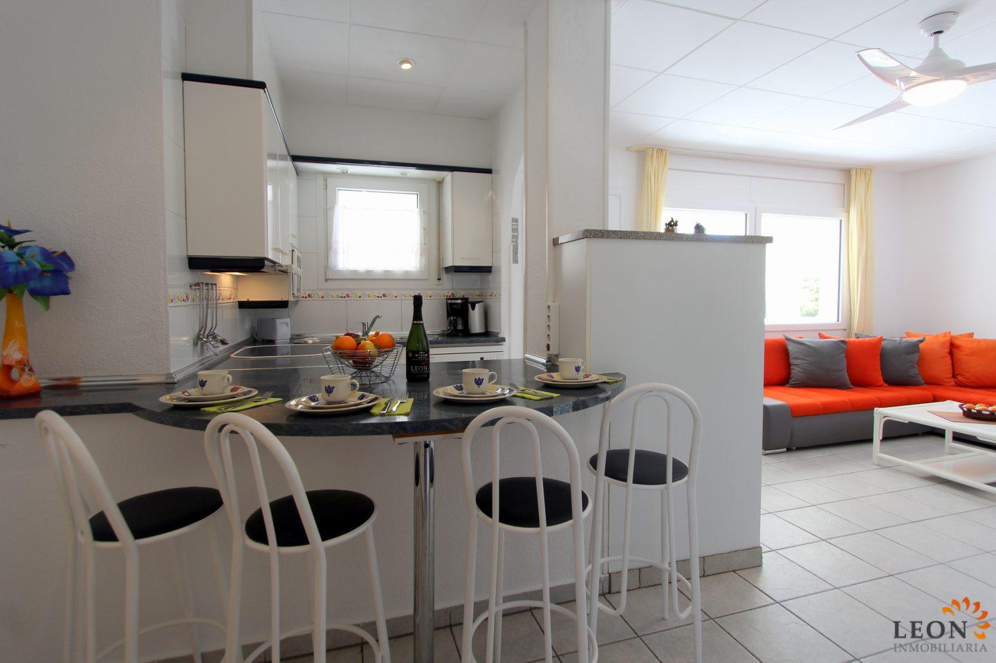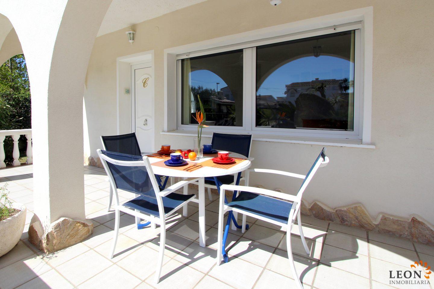 Holiday complex in Empuriabrava which rents out 4 holiday flats, well equipped (washing machine, dishwasher, etc ...(no oven)) and in different sizes, private terrace with awning, communal garden and pool with separated children's pool (open all year round) he can also be heated, you have the possibility to put the couches near the pool or under the big sun sail, this offers a pleasant shadow place, Barbecue area with dining table. The Plot area has 1.200 m2 and an enclosed parking (tenants have to arrange the parking, because is a row parked), Internet, close to the beach and the city (100 m). The central location of the apartment offers all the amenities for daily life, right on the doorstep the restaurants, the shops, the beach and the sea. The lively center with the pedestrian area and the shopping district, Empuriabrava also offers limitless recreational opportunities such as skydiving, all kinds of water sports and golf, as well as a large variety of cultural attractions, such as the Dali Museum in Figueres, the ruins of Ampurias and the monastery of Sant Pere de Rodes. For further information about this property, or indeed other holiday properties, please contact LEON INMOBILIARIA by email or telephone at our main office in Empuriabrava: 0034 / 972 45 00 37.