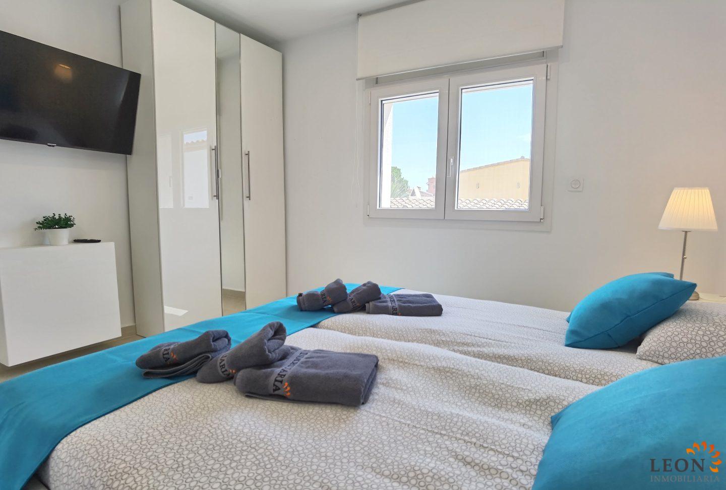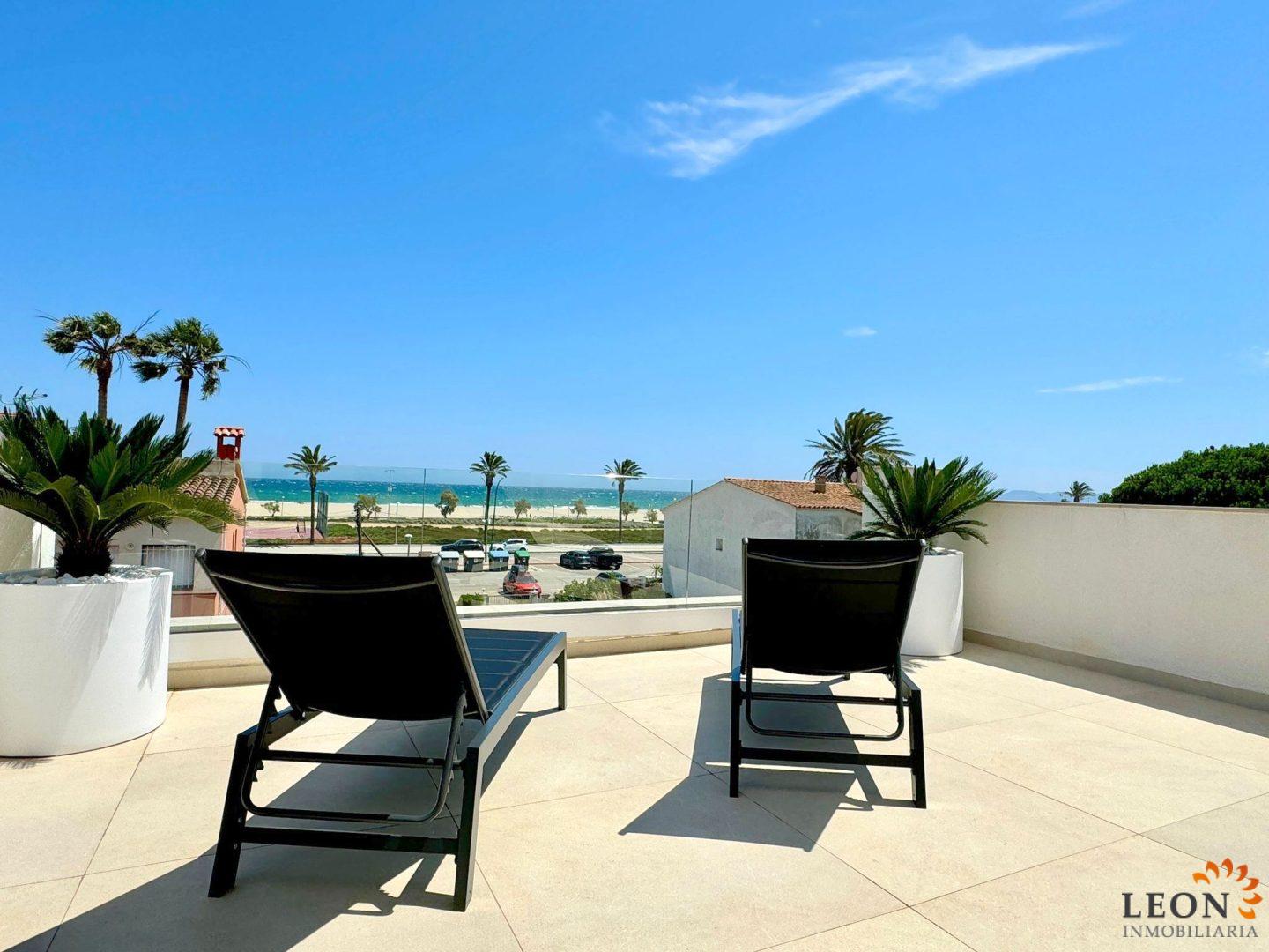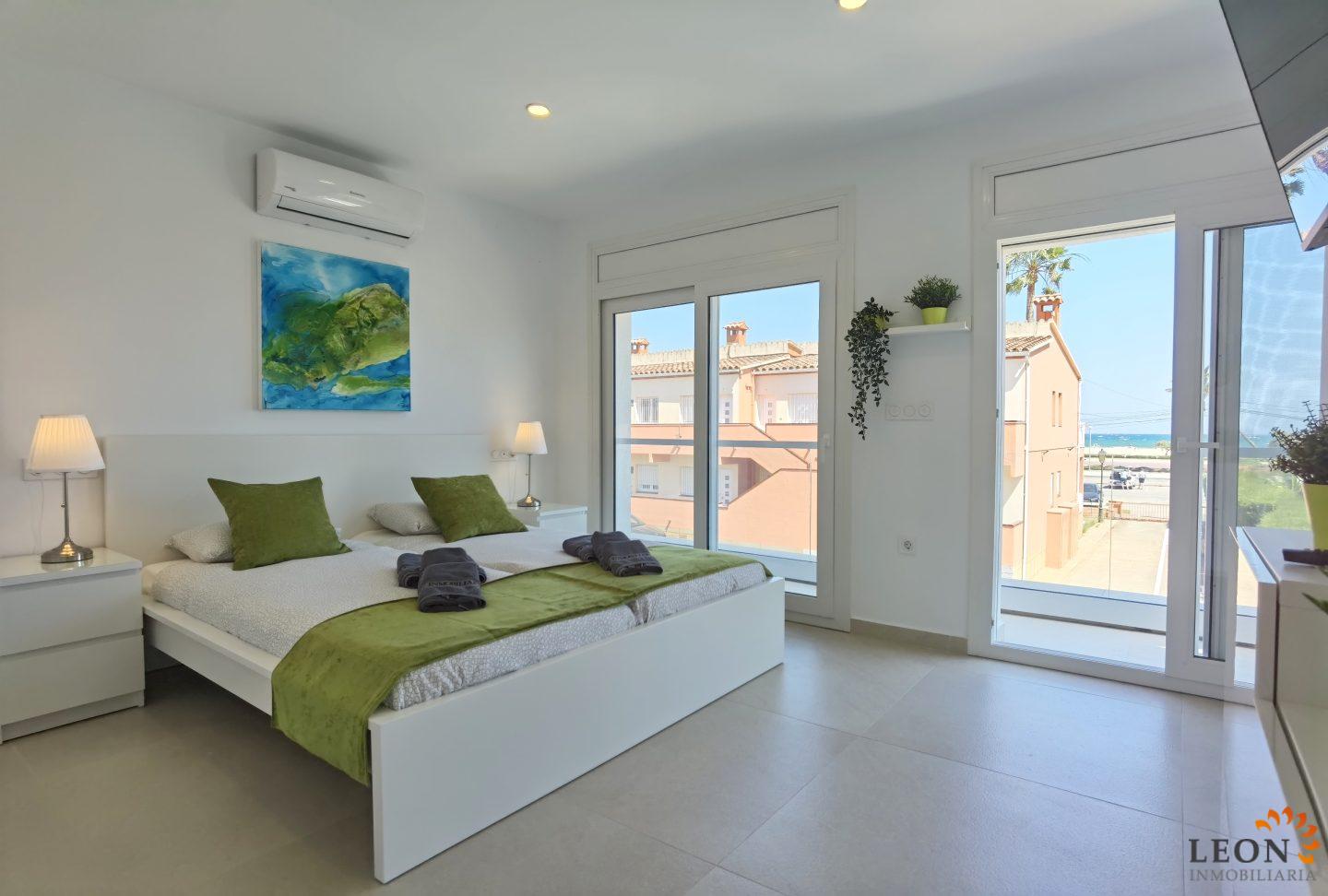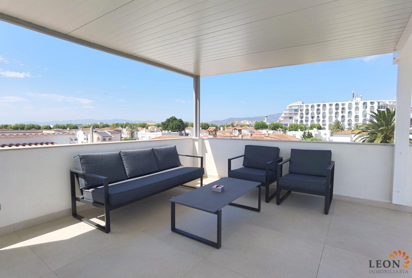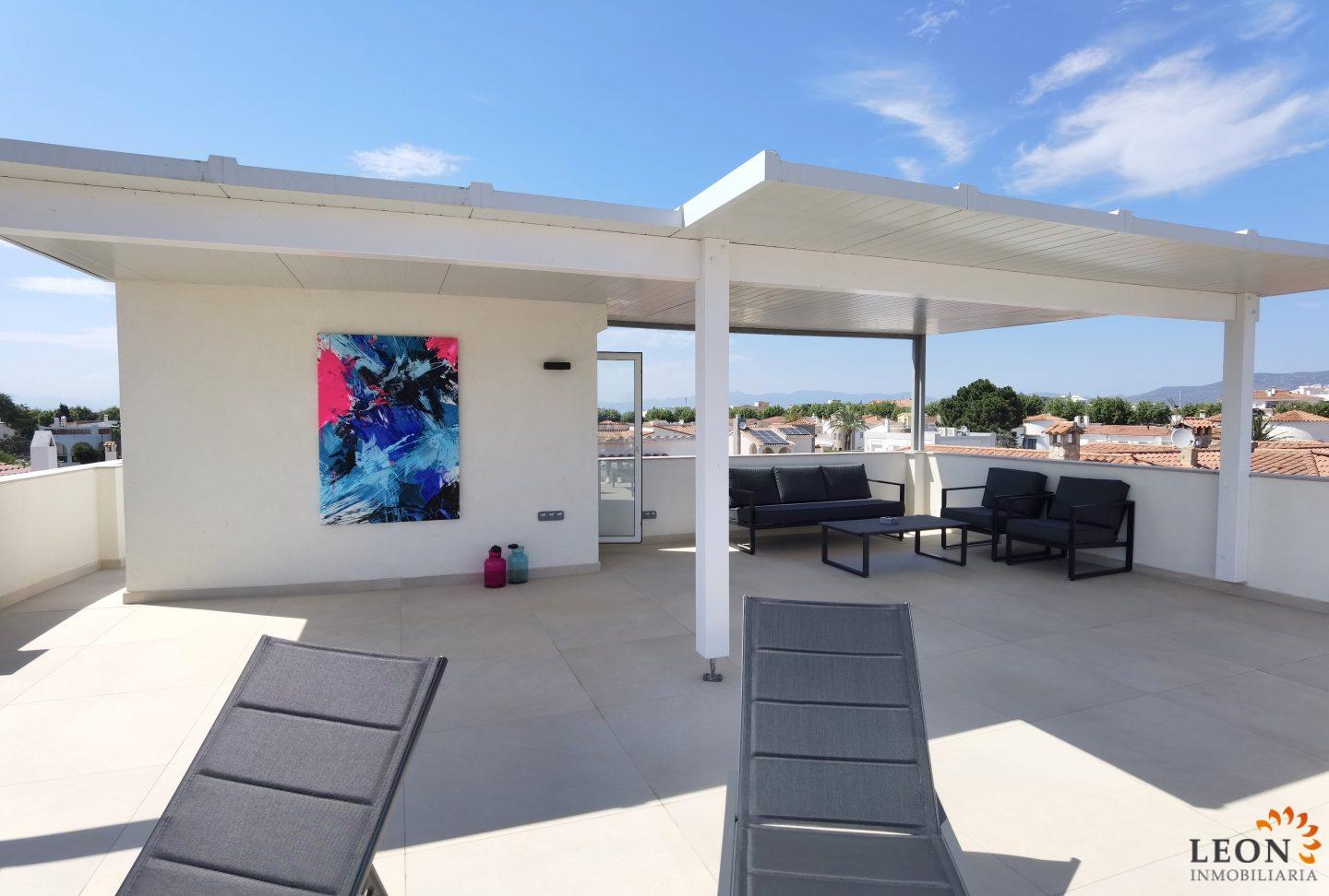 Luxurious beach villa for up to 8 people, 4 bedrooms, 3 bathrooms and a private pool. The villa is divided as follows: On the ground floor there is a spacious and bright living / dining room with access to the magnificent terrace with charcoal barbecue, private pool and sun loungers, an open and fully equipped kitchen, a guest toilet and a bedroom with en-suite bathroom (suite). The villa is decorated according to the colour concept of Feng Shui and makes you feel comfortable and relaxed while you can enjoy the sea views from all floors, the villa is south facing. On the first floor there are 3 double bedrooms with 2 bathrooms (shower). The top floor has a beautiful, spacious terrace overlooking the sea and Empuriabrava with sun loungers and a chill-out area to enjoy the warm evenings with a drink and good company. The house is equipped with reversible air conditioning (construction with thermal insulation), satellite TV (DE/FR/UK), a car park, a washing machine and a tumble dryer. The property is located in the center of Empuriabrava, all amenities are near, the beautiful golden sand beach of Empuriabrava, the restaurants, supermarkets, all within walking distance. Also the historic town of Castelló d'Empuries, Roses or the charming Küstendorf Cadaqués with its idyllic harbor are within easy reach by car. Empuriabrava and the surrounding area offer unlimited recreational opportunities like skydiving, all kinds of water sport activities and golf, as well as numerous cultural attractions such as the Dali museum in Figueres, the monastery of Sant Pere de Rodes and the Greek and Roman ruins of Ampurias. For further information about this property, or indeed other holiday properties, please contact LEON INMOBILIARIA by email or telephone at our main office in Empuriabrava: 0034 / 972 45 00 37.