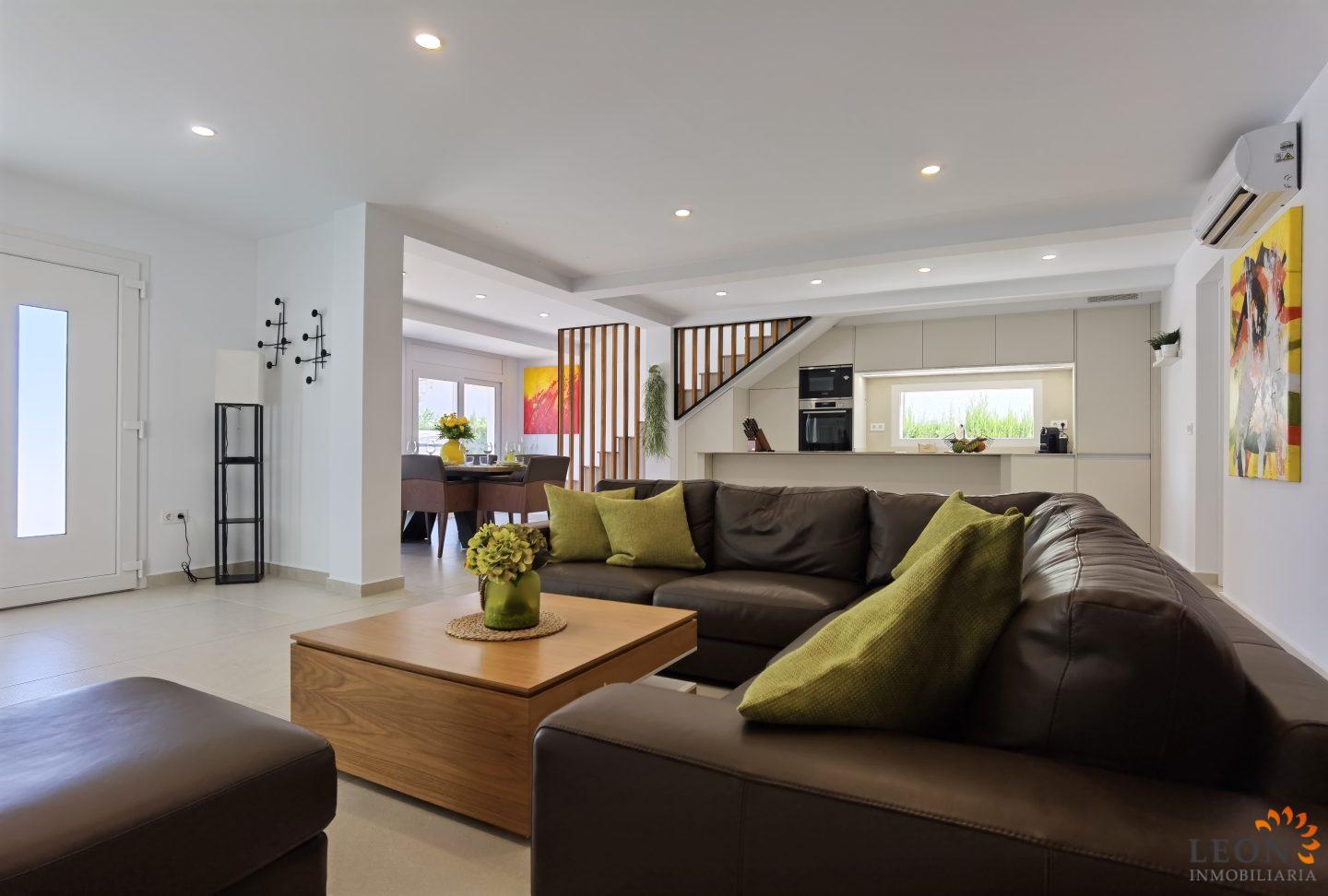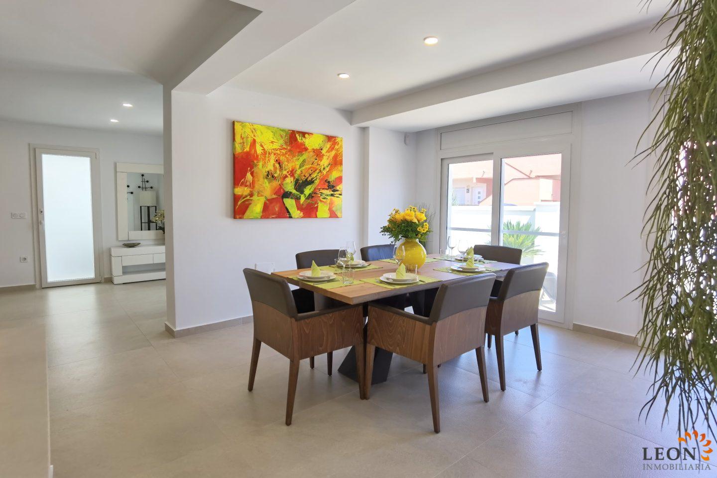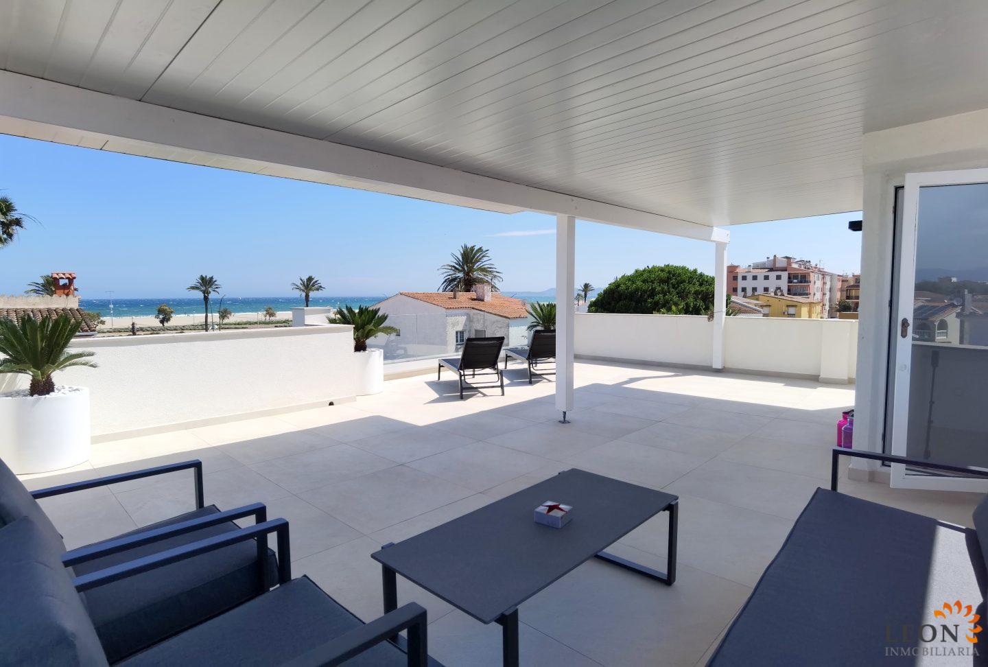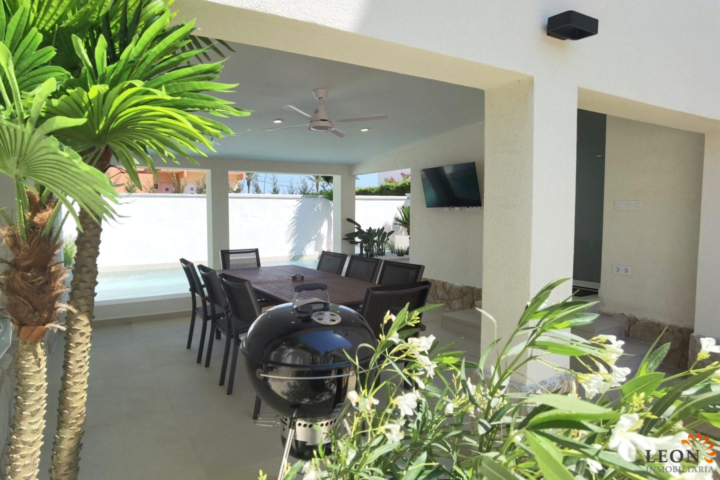 Luxurious beach villa for up to 8 people, 4 bedrooms, 3 bathrooms and a private pool. The villa is divided as follows: On the ground floor there is a spacious and bright living / dining room with access to the magnificent terrace with charcoal barbecue, private pool and sun loungers, an open and fully equipped kitchen, a guest toilet and a bedroom with en-suite bathroom (suite). The villa is decorated according to the colour concept of Feng Shui and makes you feel comfortable and relaxed while you can enjoy the sea views from all floors, the villa is south facing. On the first floor there are 3 double bedrooms with 2 bathrooms (shower). The top floor has a beautiful, spacious terrace overlooking the sea and Empuriabrava with sun loungers and a chill-out area to enjoy the warm evenings with a drink and good company. The house is equipped with reversible air conditioning (construction with thermal insulation), satellite TV (DE/FR/UK), a car park, a washing machine and a tumble dryer. The property is located in the center of Empuriabrava, all amenities are near, the beautiful golden sand beach of Empuriabrava, the restaurants, supermarkets, all within walking distance. Also the historic town of Castelló d'Empuries, Roses or the charming Küstendorf Cadaqués with its idyllic harbor are within easy reach by car. Empuriabrava and the surrounding area offer unlimited recreational opportunities like skydiving, all kinds of water sport activities and golf, as well as numerous cultural attractions such as the Dali museum in Figueres, the monastery of Sant Pere de Rodes and the Greek and Roman ruins of Ampurias. For further information about this property, or indeed other holiday properties, please contact LEON INMOBILIARIA by email or telephone at our main office in Empuriabrava: 0034 / 972 45 00 37.