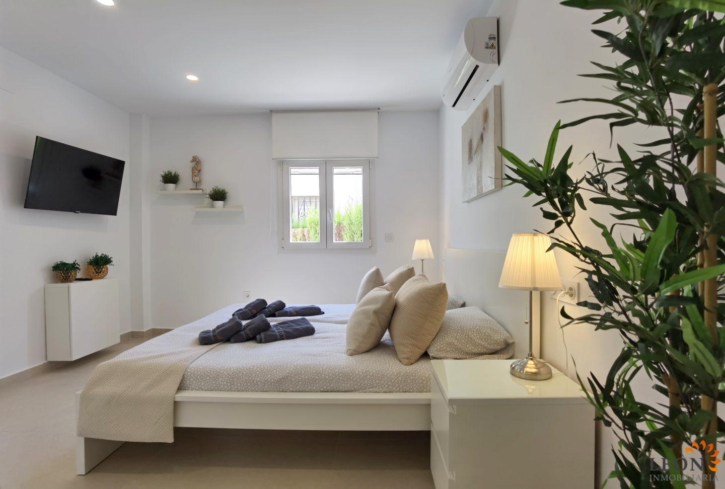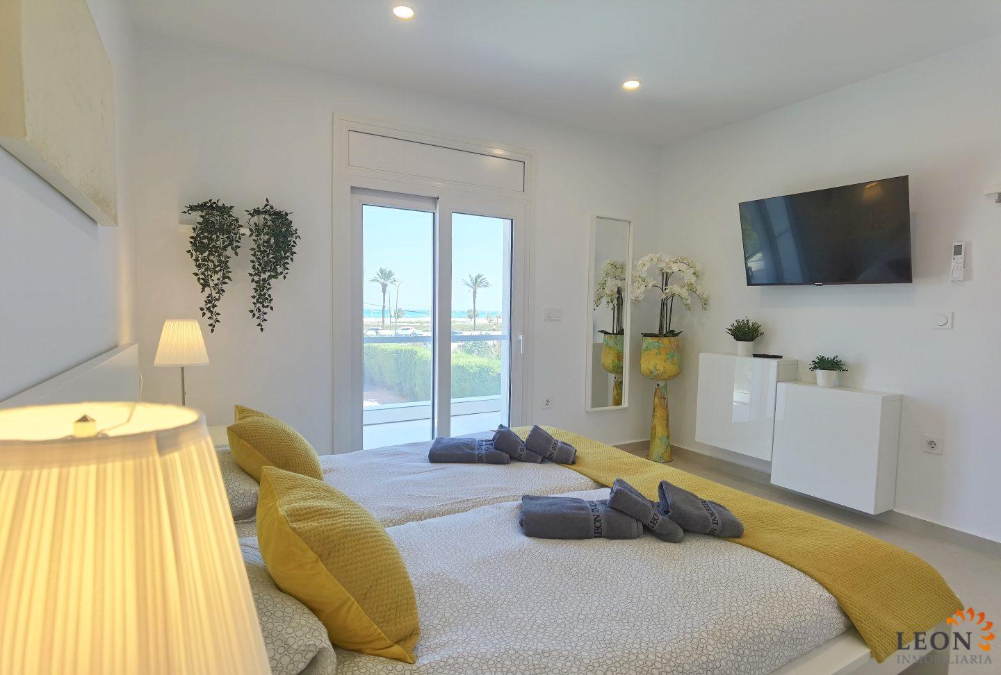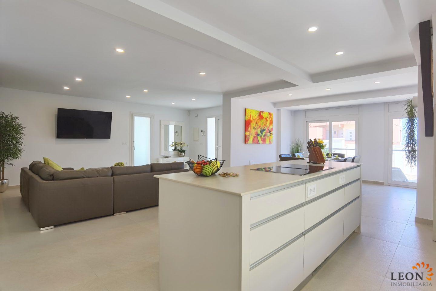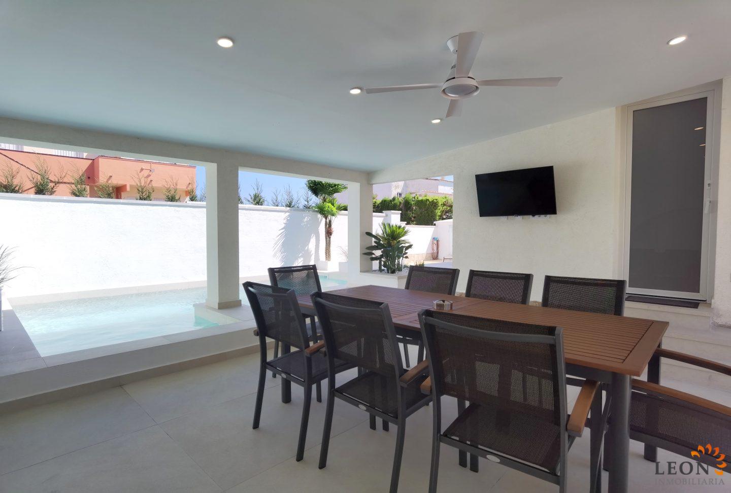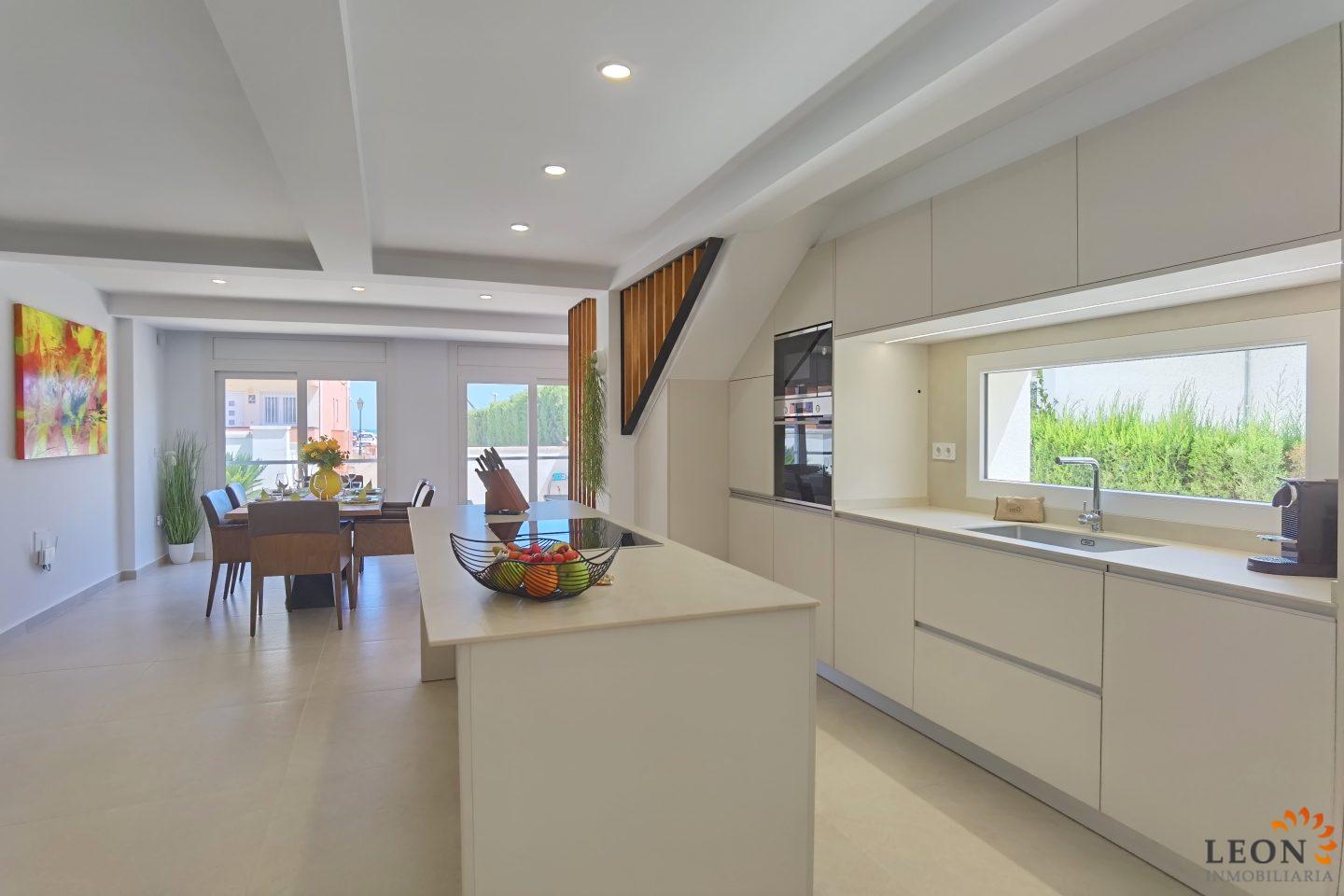 Luxurious beach villa for up to 8 people, 4 bedrooms, 3 bathrooms and a private pool. The villa is divided as follows: On the ground floor there is a spacious and bright living / dining room with access to the magnificent terrace with charcoal barbecue, private pool and sun loungers, an open and fully equipped kitchen, a guest toilet and a bedroom with en-suite bathroom (suite). The villa is decorated according to the colour concept of Feng Shui and makes you feel comfortable and relaxed while you can enjoy the sea views from all floors, the villa is south facing. On the first floor there are 3 double bedrooms with 2 bathrooms (shower). The top floor has a beautiful, spacious terrace overlooking the sea and Empuriabrava with sun loungers and a chill-out area to enjoy the warm evenings with a drink and good company. The house is equipped with reversible air conditioning (construction with thermal insulation), satellite TV (DE/FR/UK), a car park, a washing machine and a tumble dryer. The property is located in the center of Empuriabrava, all amenities are near, the beautiful golden sand beach of Empuriabrava, the restaurants, supermarkets, all within walking distance. Also the historic town of Castelló d'Empuries, Roses or the charming Küstendorf Cadaqués with its idyllic harbor are within easy reach by car. Empuriabrava and the surrounding area offer unlimited recreational opportunities like skydiving, all kinds of water sport activities and golf, as well as numerous cultural attractions such as the Dali museum in Figueres, the monastery of Sant Pere de Rodes and the Greek and Roman ruins of Ampurias. For further information about this property, or indeed other holiday properties, please contact LEON INMOBILIARIA by email or telephone at our main office in Empuriabrava: 0034 / 972 45 00 37.