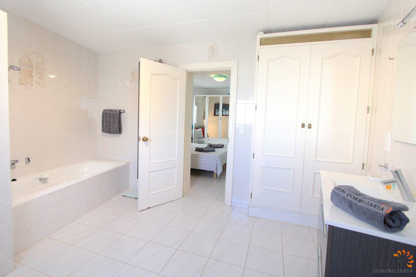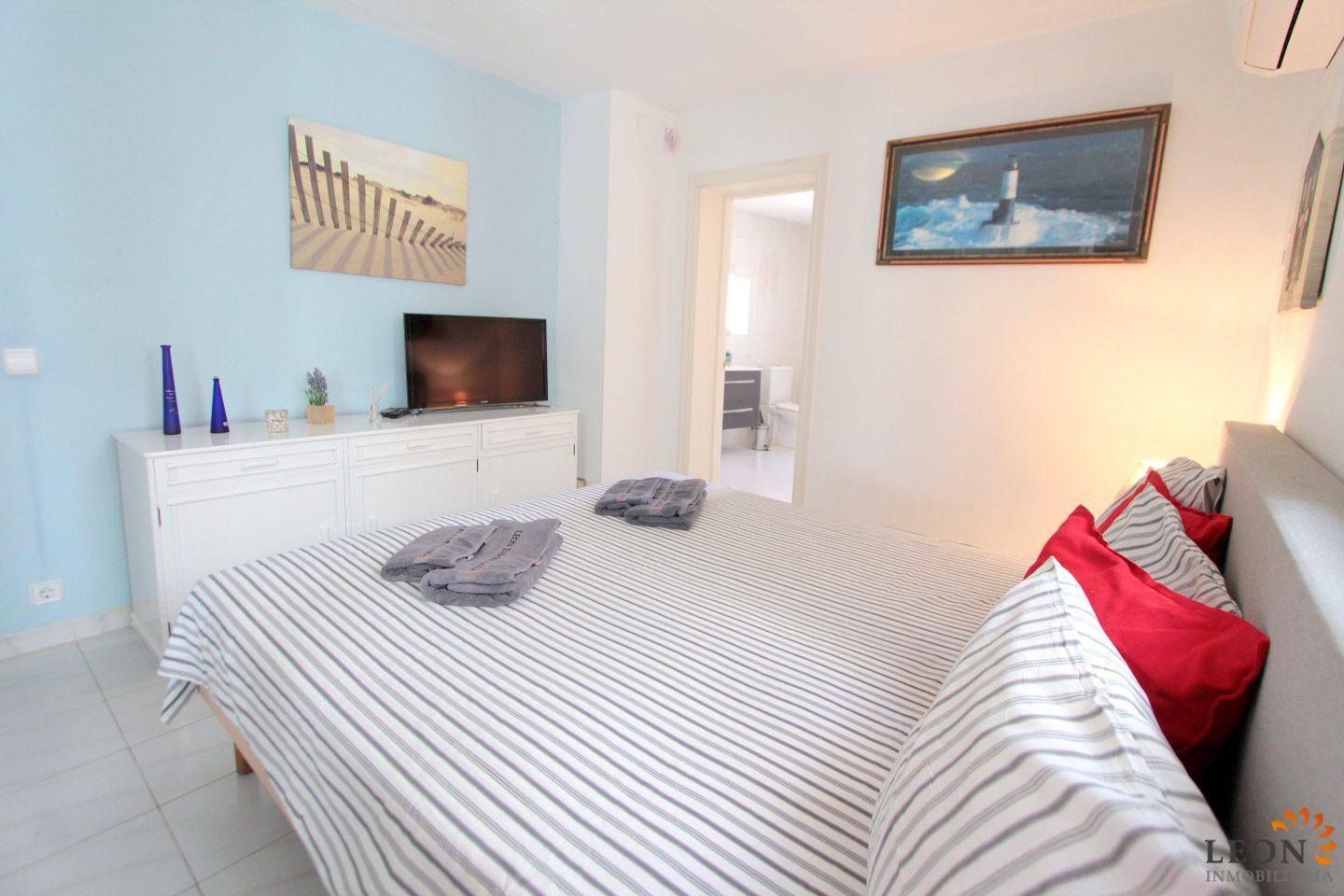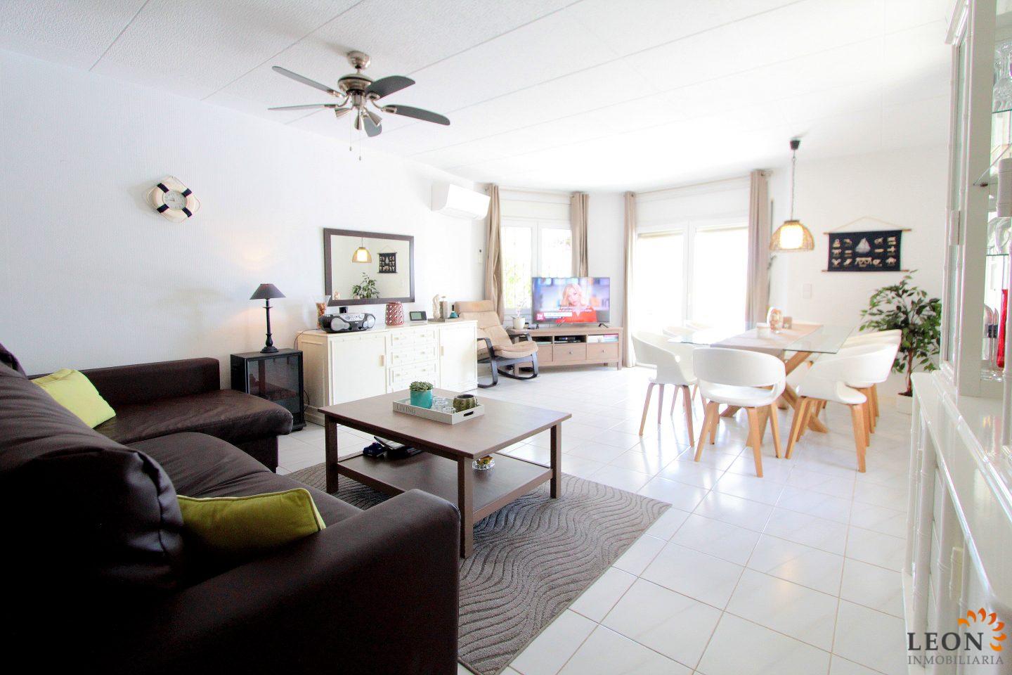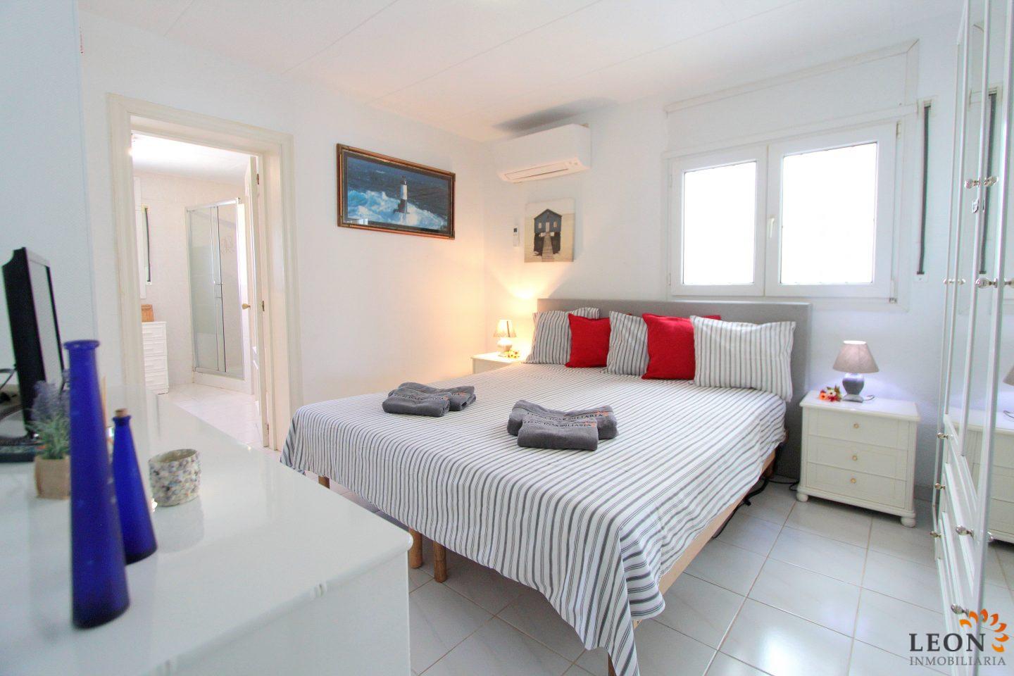 This beautiful villa is located near the entrance of Empuriabrava with a plot of 444 m2 and a living area of 171m2 and is divided as follows. On the ground floor there is a spacious and bright living area with access to the beautiful terrace with pool, 15 m jetty and a fantastic view over the canal, a well equipped separate kitchen, 1 bedroom with bathroom and a guest toilet. An outside staircase leads to the 1st floor, each bedroom with bathroom and separate entrance. Equipped with: Air conditioning, shutters, satellite TV. Outside there is a barbecue, an outdoor shower and a parking lot. Situated near the entrance of Empuriabrava, restaurants and shops are not far. The gorgeous sandy beach is a mere km away, whilst the beautiful beaches of Santa Margarita and Roses are easy and quick to reach by car. Additionally, Empuriabrava and the surrounding area offer unlimited recreational opportunities like skydiving, all kinds of water sport activities and golf, as well as a wide choice of cultural attractions such as the Dali museum in Figueres, the monastery of Sant Pere de Rodes and the Greek and Roman ruins of Ampurias. For further information about this property, or indeed other holiday properties, please contact LEON INMOBILIARIA by email or telephone at our main office in Empuriabrava: 0034 / 972 45 00 37.