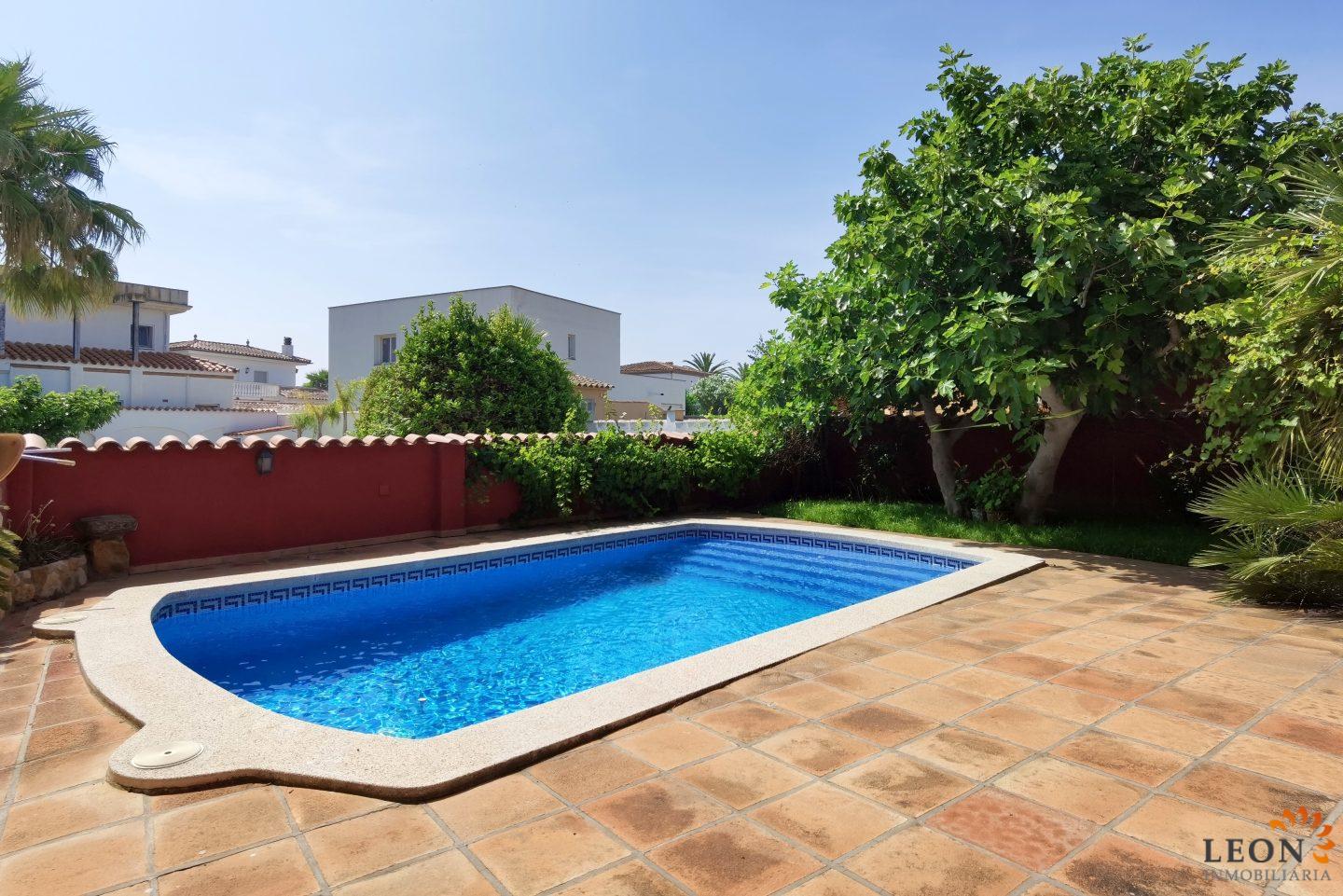 En una apacible zona residencial de Empuriabrava, a escasos minutos del centro y de todos los servicios, se encuentra esta encantadora casa unifamiliar con orientación sur, rodeada de vegetación y bañada por la luz natural. Un verdadero refugio de paz, ideal tanto como residencia habitual como segunda vivienda para disfrutar de la Costa Brava durante todo el año. La propiedad se distribuye en dos plantas y destaca por su funcionalidad y ambiente acogedor. En la planta baja, un amplio y luminoso salón-comedor con acceso directo al porche cubierto y al cuidado jardín invita al descanso y a las comidas al aire libre. La cocina, totalmente equipada, incluye un práctico lavadero independiente. Esta planta también cuenta con dos confortables dormitorios, dos baños con ducha y un aseo de cortesía para invitados. La planta superior alberga tres espaciosos dormitorios, todos con excelente luz natural, y dos baños completos con ducha. Además, dispone de un altillo versátil que puede adaptarse como sexto dormitorio, despacho, sala de juegos o zona de lectura, según las necesidades de cada familia. Entre los extras que ofrece esta magnífica vivienda destacan la piscina privada rodeada de zonas verdes, ventanas con doble acristalamiento, garaje y una sauna para momentos de relax. Todo ello en una propiedad que combina a la perfección el confort moderno con el encanto mediterráneo. Una oportunidad única para adquirir una vivienda amplia, bien equipada y ubicada en una de las zonas más deseadas de Empuriabrava. Para obtener más información sobre esta propiedad o sobre otros inmuebles de vacaciones les rogamos visiten LEON INMOBILIARIA, por email, o por teléfono a nuestra agencia central de Empuriabrava: 0034 / 972 45 00 37.
