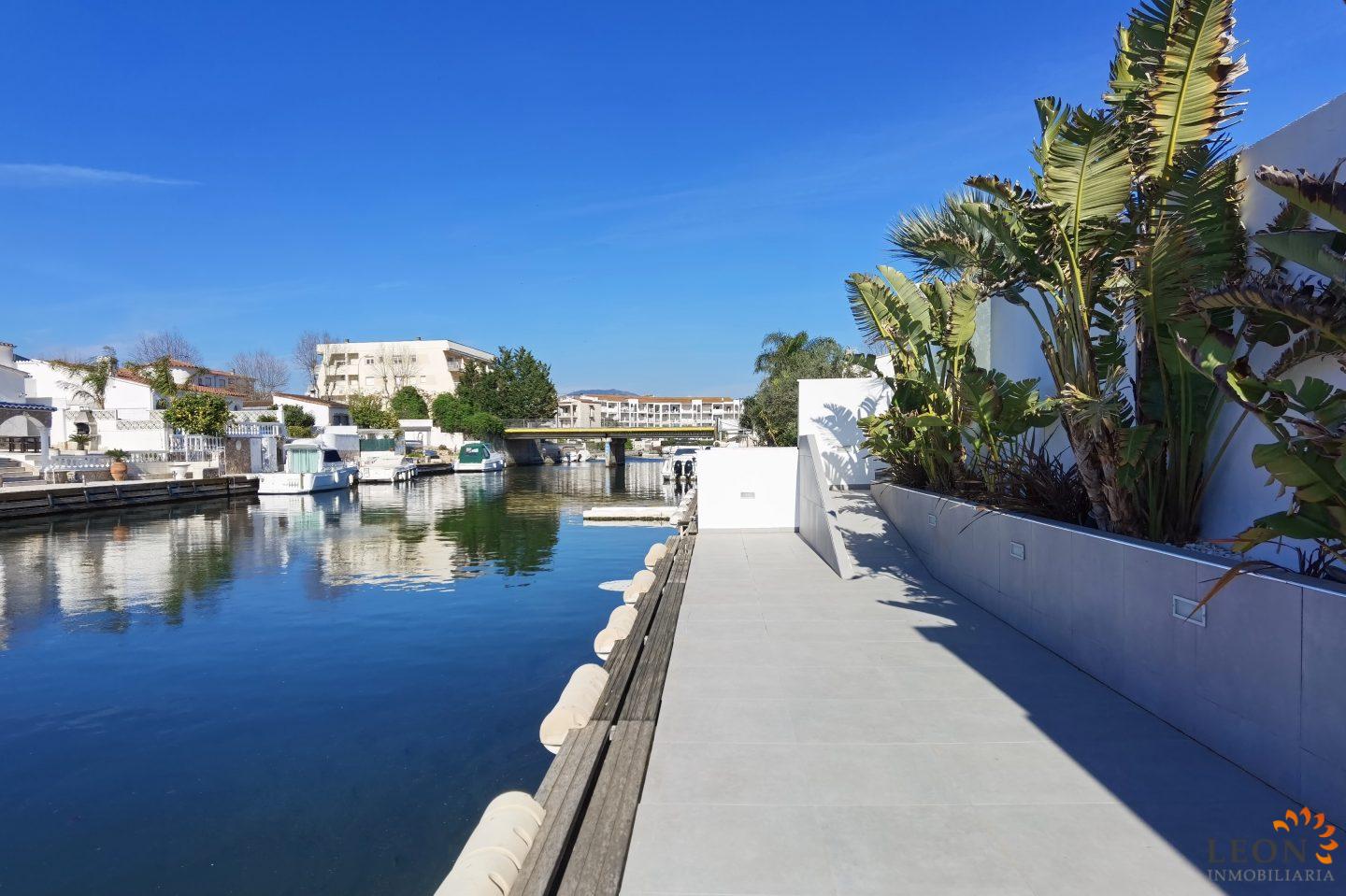 Geniet van de luxe van wonen aan het water in dit spectaculaire gerenoveerde huis in Empuriabrava. Gelegen op een perceel van 500 m² aan het hoofdkanaal, kenmerkt dit pand zich door zijn veelzijdige ontwerp verdeeld in twee onafhankelijke wooneenheden, ideaal voor gasten of grote gezinnen. Op de begane grond: Woon-eetkamer met open haard, goed uitgeruste keuken, 4 slaapkamers en 4 badkamers (waarvan 2 en suite). Directe toegang tot de garage. De bovenverdieping (aparte ingang): 3 slaapkamers, 2 badkamers en een privéterras met uitzicht op het kanaal. De gemoderniseerde tuin beschikt over een privézwembad, een buitenkeuken en een zithoek onder een pergola. Uitgerust met airconditioning (koud/warm), PVC-ramen met dubbel glas en inbouwkasten. Een unieke kans voor investeerders of watersportliefhebbers die op zoek zijn naar een woning met eigen aanlegplaats aan de Costa Brava. Klaar om in te trekken of voor toeristische verhuur (met toeristische verhuurvergunning)! Empuriabrava heeft de grootste jachthaven van Europa met meer dan 25 kilometer aan vaarroutes en ongeveer 5.000 ligplaatsen. Ampuriabrava wordt ook beschouwd als een "eldorado" voor skydivers. In dit Europese parachutespringcentrum kun je het hele jaar door tandemsprongen proberen. Het strand van Ampuriabrava is ongeveer 1,6 kilometer lang, zacht glooiend, met fijn zand en een van de breedste aan de Costa Brava. Geweldig voor volwassenen en kinderen. De prachtige zandstranden van Empuriabrava, Rosas of San Pedro Pescador zijn ideaal om te zwemmen. De stad biedt een verscheidenheid aan sporten (duiken, zeilen, motorboot varen, zeilen, surfen, kitesurfen, jetskiën, waterskiën, diepzeevissen, vissen, bowlen, vliegen, parachutespringen, paardrijden, minigolf, tennis, karting, wandelen, jeu de boules). Naast het vliegveld is een windtunnel waar iedereen vanaf 4 jaar kan vliegen! Dit vind je bijna nergens anders in Europa, het is absoluut sensationeel en veilig. Je kunt de vluchten ook bekijken in de bar/restaurant. Voor meer informatie over dit object of andere vastgoedobjecten in Spanje kunt u contact opnemen met LEON INMOBILIARIA via e-mail of telefonisch via het hoofdkantoor in Empuriabrava: 0034 / 972 45 00 37.