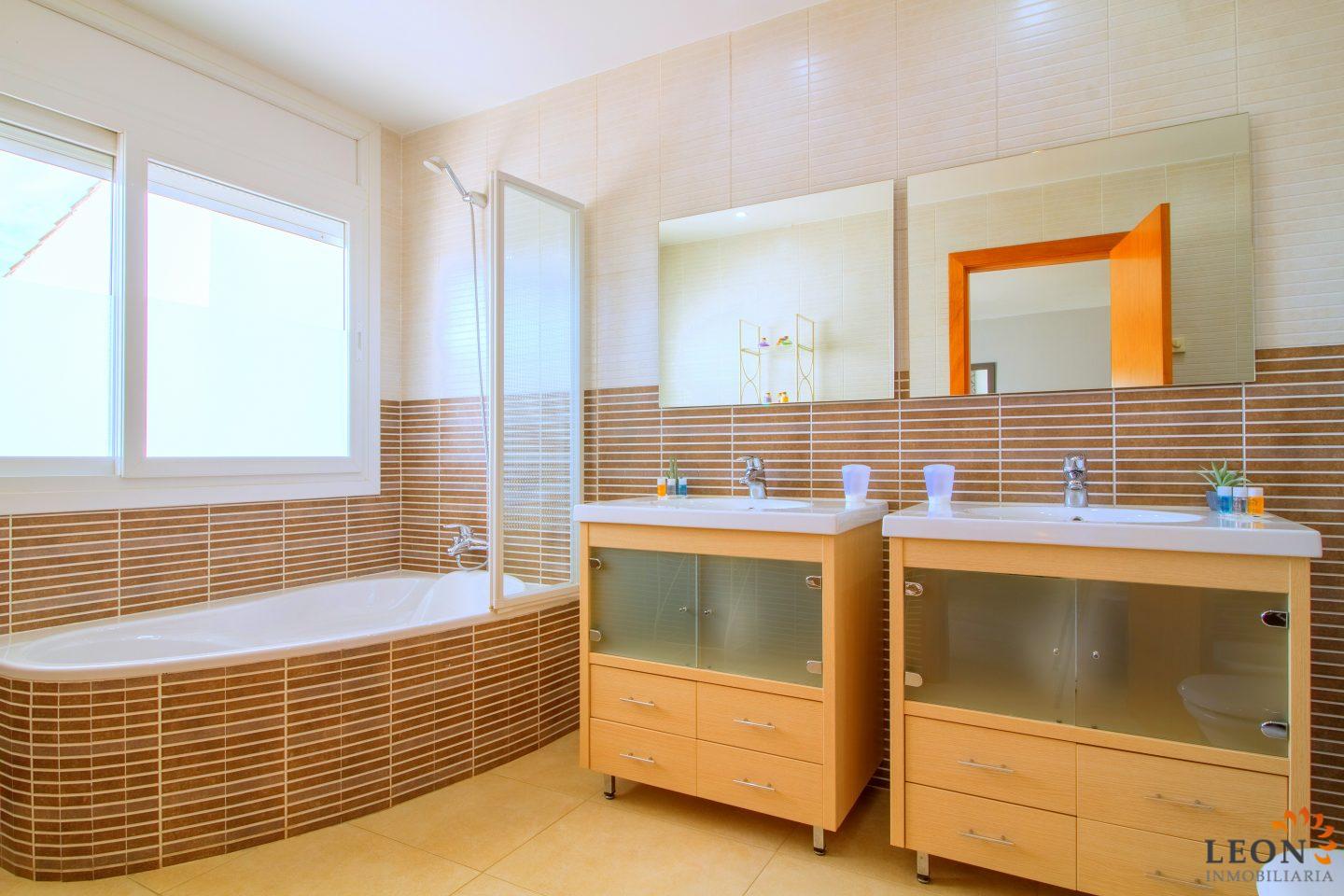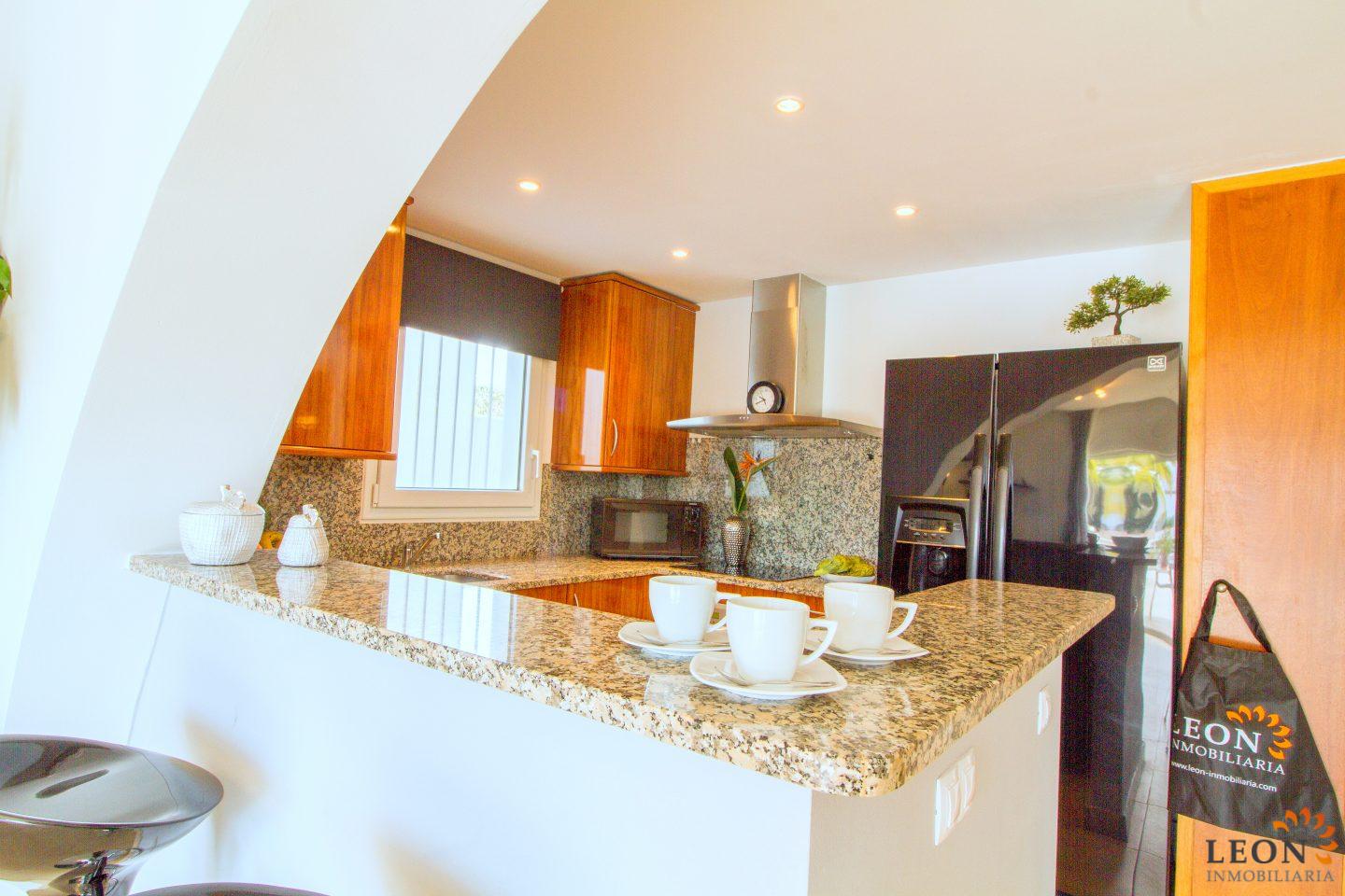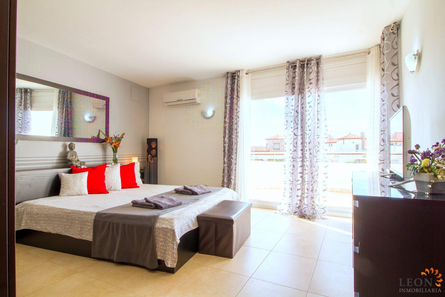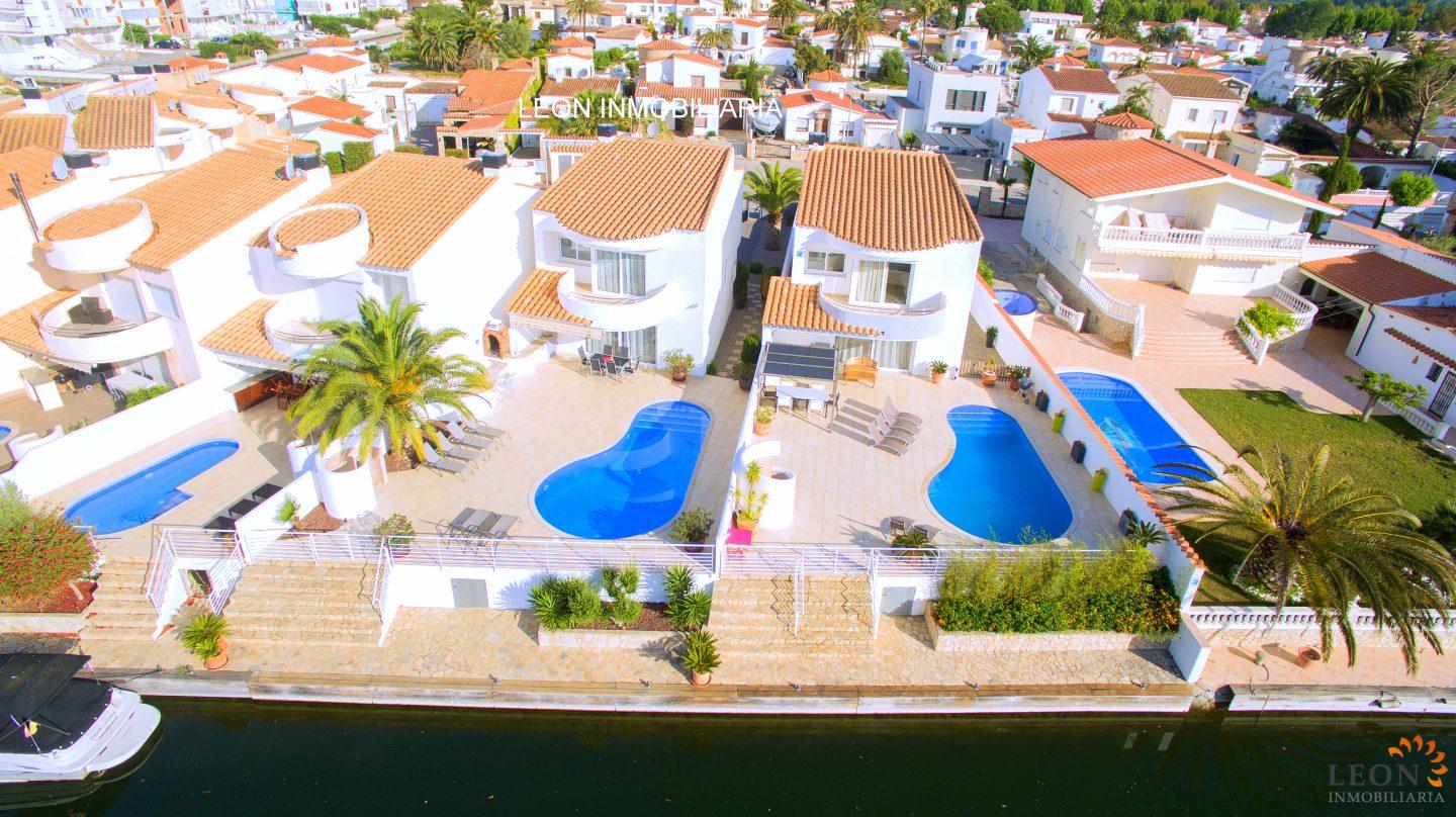 Dit elegante vakantiehuis heeft een royale woonruimte verdeeld over twee verdiepingen. Buiten staan de zacht vloeiende lijnen van de villa, die herhaald worden in de vorm van het zwembad en de buitendouche, in scherp contrast met het briljante wit van het gebouw zelf, terwijl binnen de architectuur modern, strak en elegant is. Naast 3 slaapkamers en 2 badkamers heeft deze ideale villa een mooie ruime woon-/eetkamer met een volledig ingerichte open keuken. Kenmerken zijn omkeerbare airconditioning in de woonkamer en in alle slaapkamers, een groot terras met zwembad en prachtig uitzicht op de gracht, evenals parkeergelegenheid op de binnenplaats. Vanwege de ligging van de villa dicht bij het centrum van Empuriabrava bevinden zich de restaurants, winkels en het fijn zandige strand op loopafstand. De prachtige stranden van Santa Margarita en Roses zijn gemakkelijk en snel met de auto te bereiken. Een ruime keuze aan culturele attracties is binnen een half uur te bereiken, zoals het Dali museum in Figueres, de ruïnes van Ampurias en het klooster van Sant Pere de Rodes. Het nabij liggende Peralada, waar enkele van de beste wijnen uit de omgeving worden gemaakt, organiseert het jaarlijkse internationale muziekfestival en heeft een 18-hole golfbaan met pitch & putt faciliteiten. Voor meer informatie over deze object, of een andere vakantiewoning kunt u contact opnemen met LEON INMOBILIARIA per email of telefonisch op ons hoofdkantoor in Empuriabrava: 0034 / 972 45 00 37.