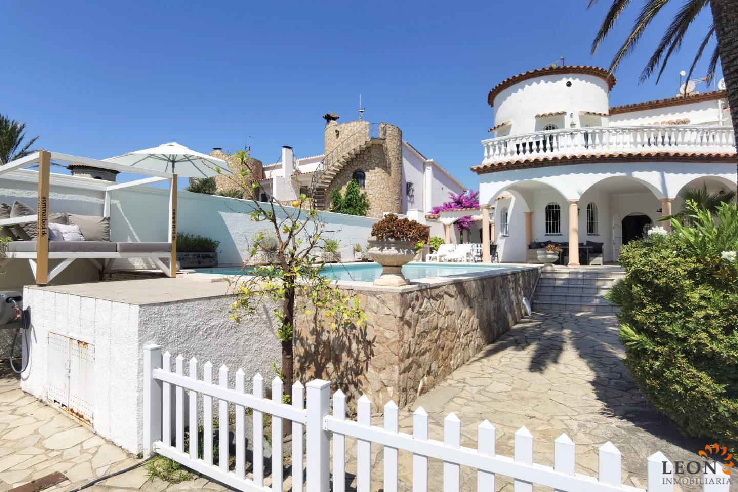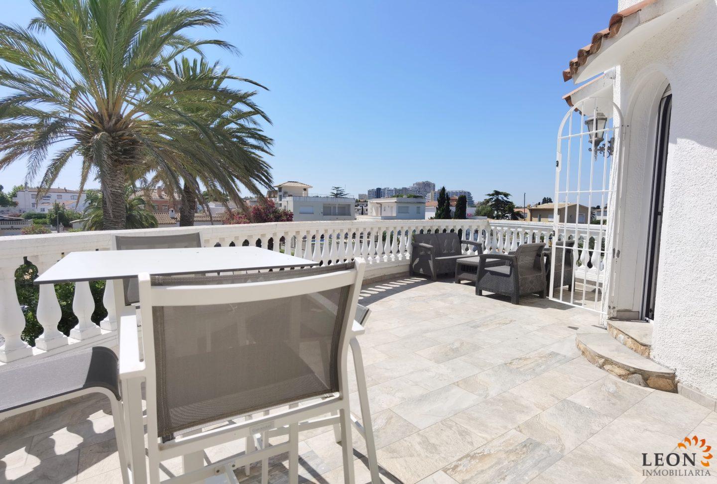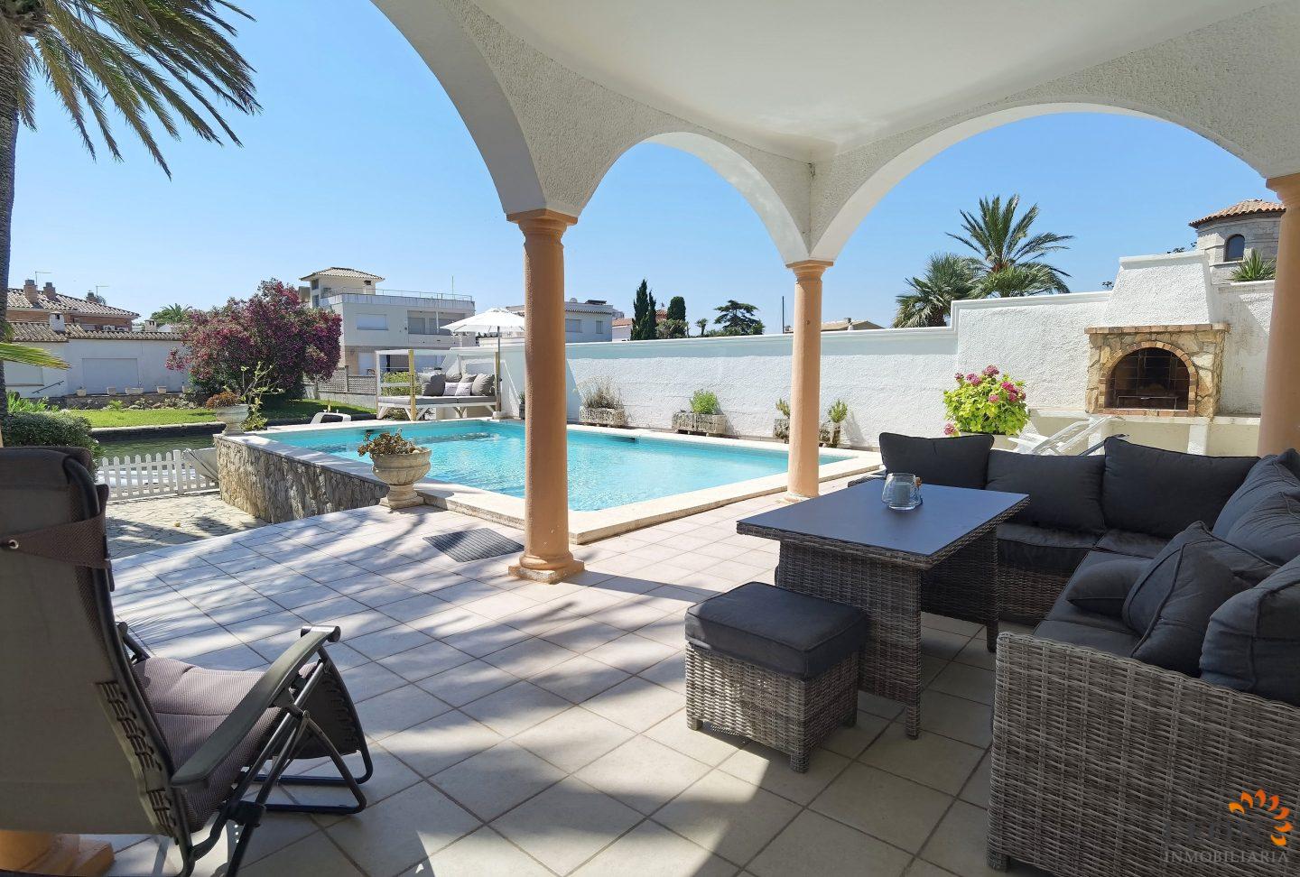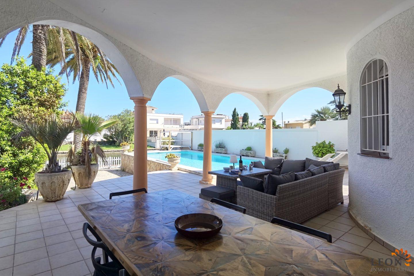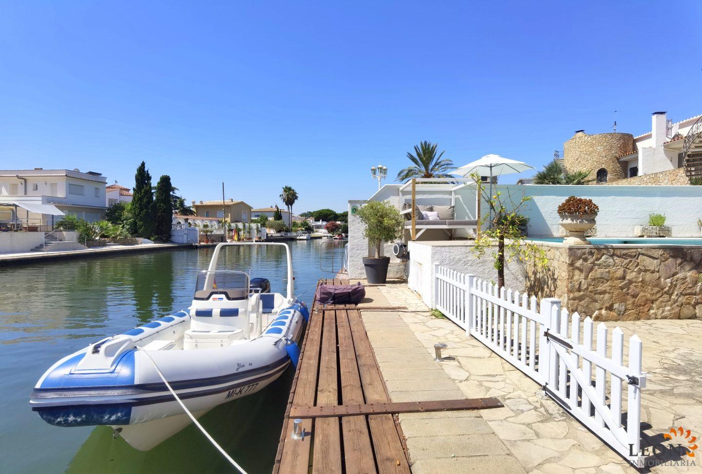 This cosy holiday villa is situated in a quiet residential area, close to the centre of Ampuriabrava. This villa offers a cosy and open living - room with access to the lovely covered terrace, swimming pool with terrace and jetty of 12 m, well equipped kitchen, 3 bedrooms (one suite), in total 2 bathrooms and a guest toilet. This holiday villa has; air conditioning in the bedrooms and living room, dishwasher, microwave, SAT-TV (UK/DE/FR/ES), Internet connection, washing machine, central heating (oil), parking space on the closed plot. The property is located near the center of Empuriabrava, all amenities are near, the beautiful golden sand beach of Empuriabrava, the restaurants, supermarkets, all within walking distance. Also the historic town of Castelló d'Empuries, Roses or the charming Küstendorf Cadaqués with its idyllic harbor are within easy reach by car. Empuriabrava and the surrounding area offer unlimited recreational opportunities like skydiving, all kinds of water sport activities and golf, as well as numerous cultural attractions such as the Dali museum in Figueres, the monastery of Sant Pere de Rodes and the Greek and Roman ruins of Ampurias. For further information about this property, or indeed other holiday properties, please contact LEON INMOBILIARIA by email or telephone at our main office in Empuriabrava: 0034 / 972 45 00 37.