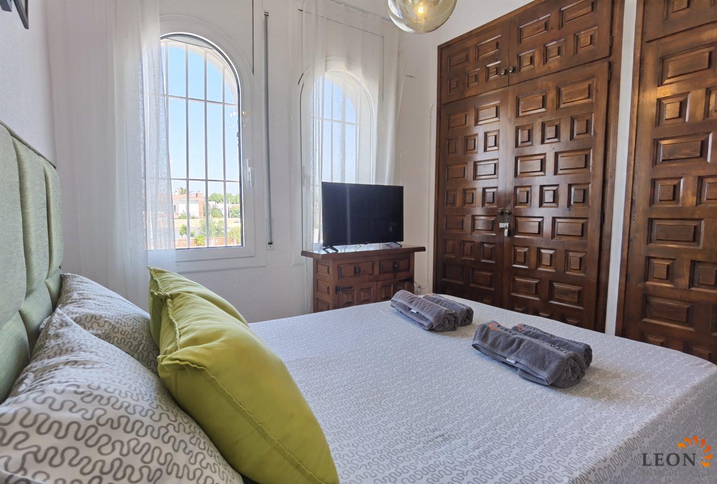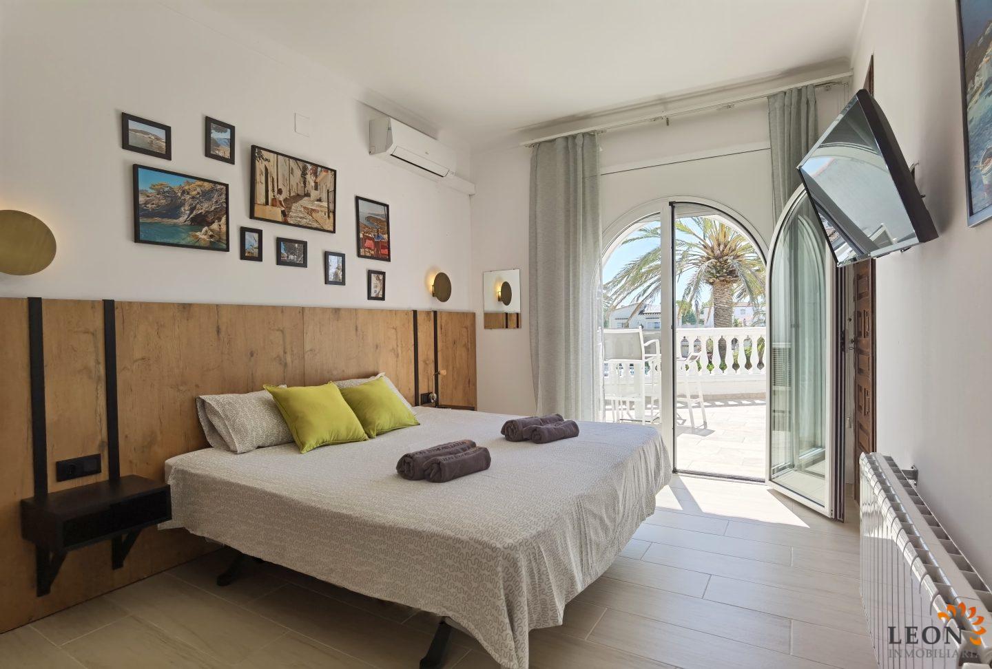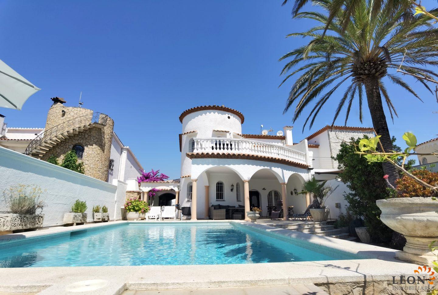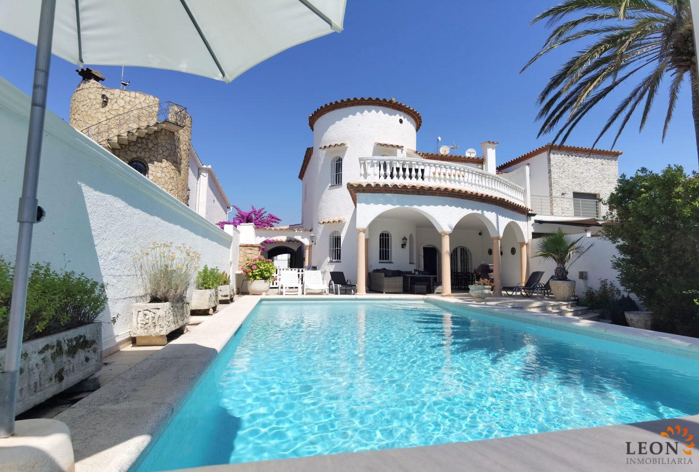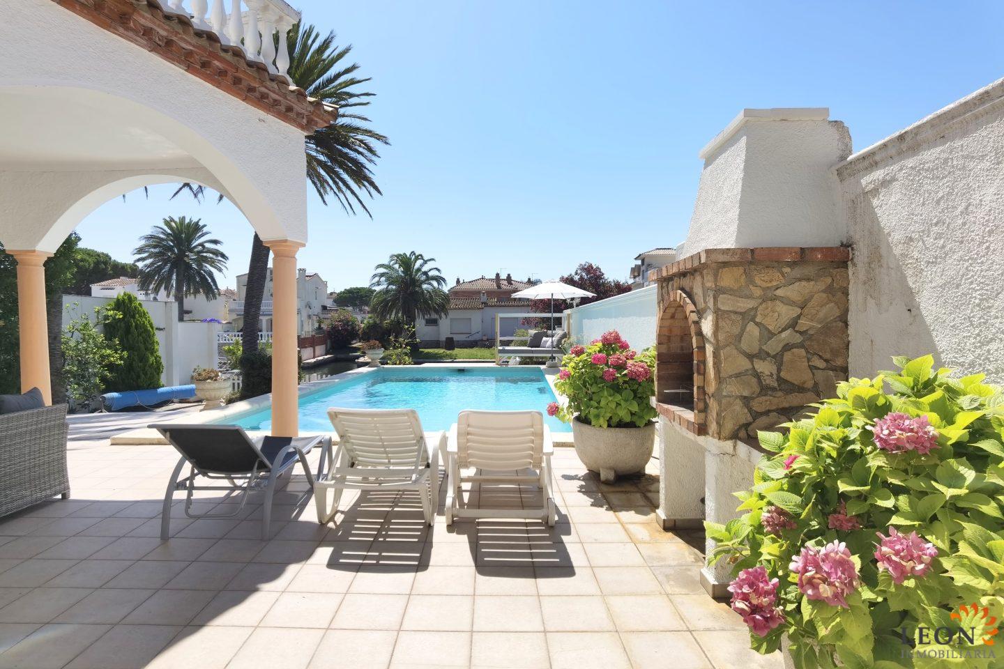 This cosy holiday villa is situated in a quiet residential area, close to the centre of Ampuriabrava. This villa offers a cosy and open living - room with access to the lovely covered terrace, swimming pool with terrace and jetty of 12 m, well equipped kitchen, 3 bedrooms (one suite), in total 2 bathrooms and a guest toilet. This holiday villa has; air conditioning in the bedrooms and living room, dishwasher, microwave, SAT-TV (UK/DE/FR/ES), Internet connection, washing machine, central heating (oil), parking space on the closed plot. The property is located near the center of Empuriabrava, all amenities are near, the beautiful golden sand beach of Empuriabrava, the restaurants, supermarkets, all within walking distance. Also the historic town of Castelló d'Empuries, Roses or the charming Küstendorf Cadaqués with its idyllic harbor are within easy reach by car. Empuriabrava and the surrounding area offer unlimited recreational opportunities like skydiving, all kinds of water sport activities and golf, as well as numerous cultural attractions such as the Dali museum in Figueres, the monastery of Sant Pere de Rodes and the Greek and Roman ruins of Ampurias. For further information about this property, or indeed other holiday properties, please contact LEON INMOBILIARIA by email or telephone at our main office in Empuriabrava: 0034 / 972 45 00 37.