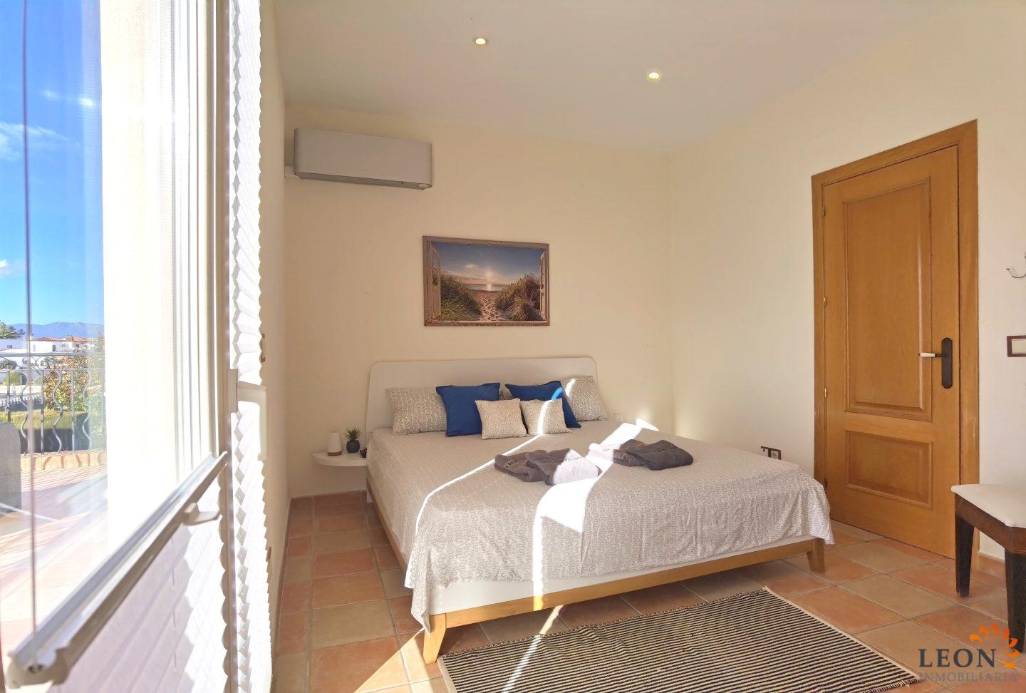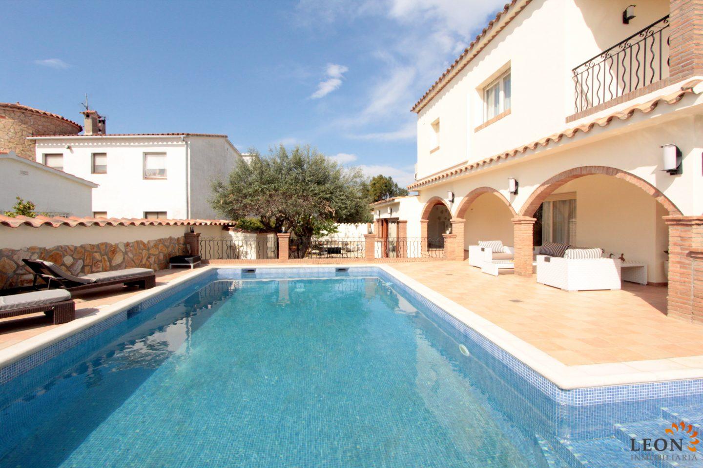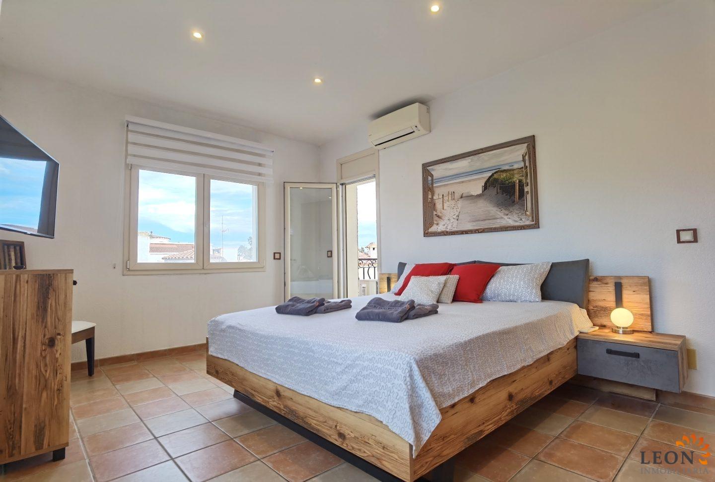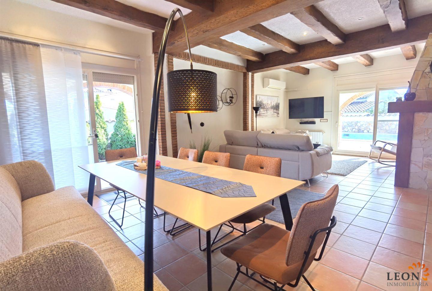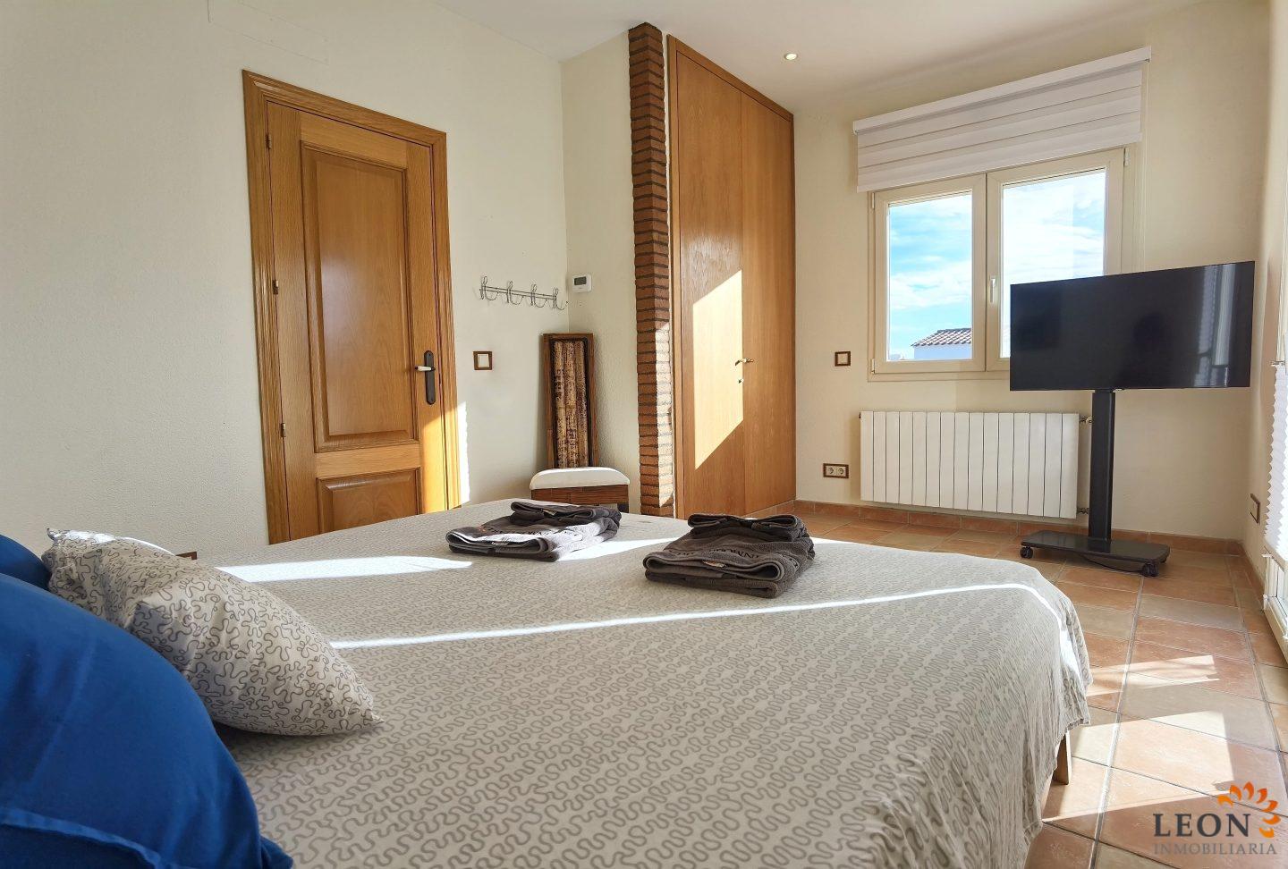 Elegant holiday villa with a comfortable living/dining room area and an open plan fully equipped kitchen, a guest toilet, from the living room you have access to the beautiful terrace with pool and garden, small garage (not suitable for cars). A pleasant internal staircase leads to the 1st floor where there are 4 bedrooms, 3 bedrooms, 1 bathroom and the 4th bedroom with a double bed and a French bed is en suite (with its own bathroom). A real holiday dream with all amenities such as; air conditioning, washing machine, dishwasher, microwave, SAT-TV (UK/DE/FR/ES), central heating and parking for 2 cars (enclosed property). Empuriabrava is considered one of the most beautiful places and famous for its port, not only on the Costa Brava, but also throughout Spain. ¨Pequeña Venecia¨ is the most important residential marina in Europe, with some 24 km of navigable channels. Empuriabrava is located 20 km from France and 140 km from Barcelona. This is a very popular tourist area, characterized by a mild climate, a developed infrastructure, ports, hotels, restaurants, etc. Every year, hundreds of thousands of tourists from all over the world come to the city. In a radius of 100 km from Empuriabrava are the places of historical and cultural interest of the region. 125 monuments of medieval architecture. For more information about this property or about other holiday properties, please visit LEON INMOBILIARIA, by email, or by phone to our central agency in Empuriabrava: 0034/972 45 00 37.