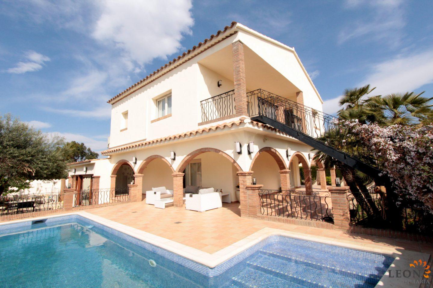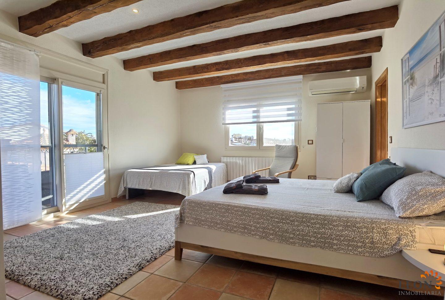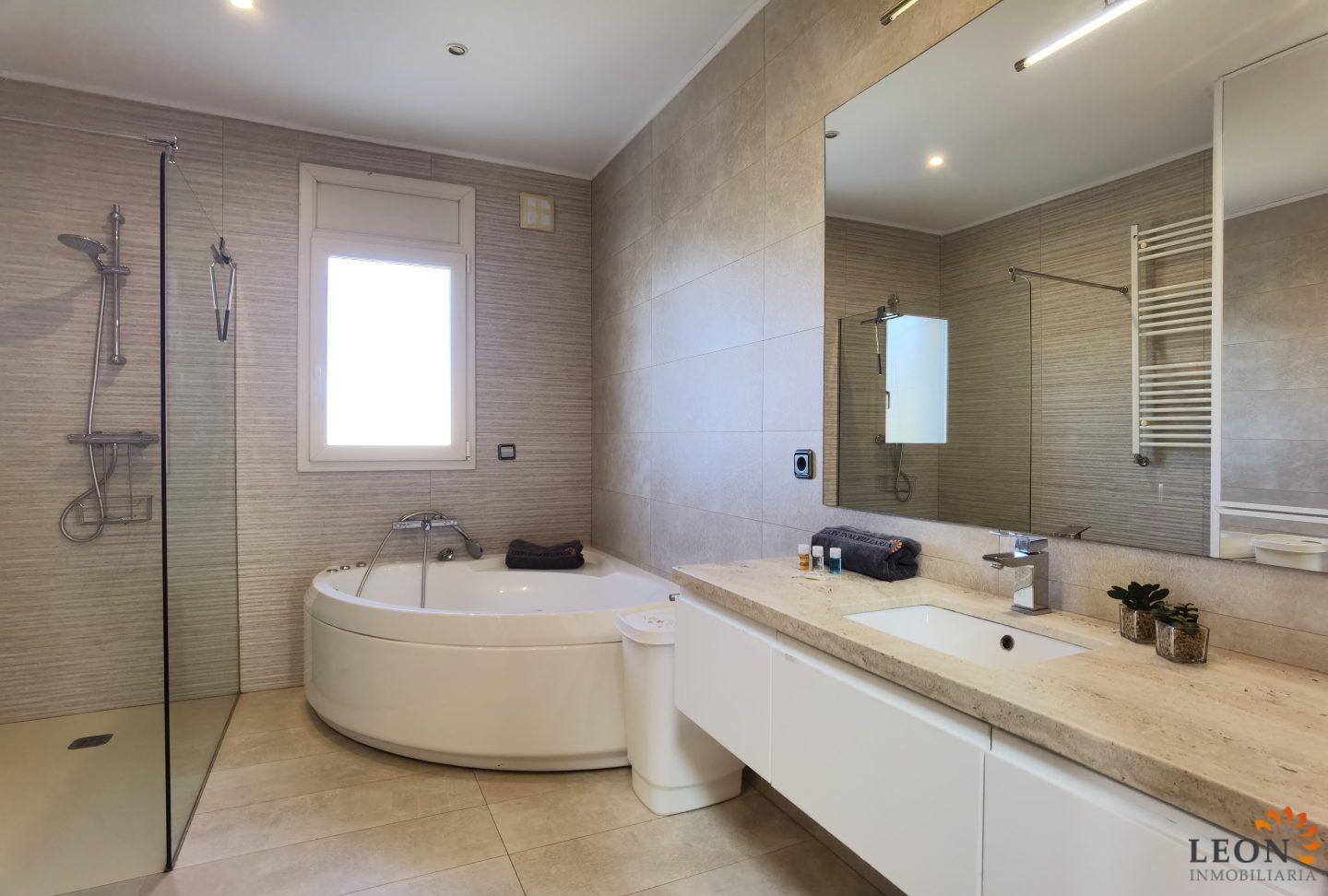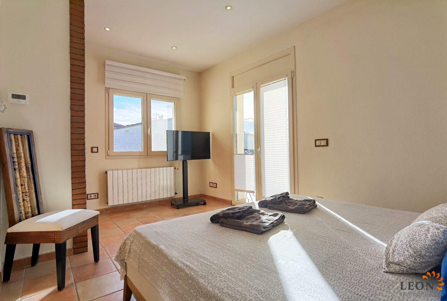 Elegant holiday villa with a comfortable living/dining room area and an open plan fully equipped kitchen, a guest toilet, from the living room you have access to the beautiful terrace with pool and garden, small garage (not suitable for cars). A pleasant internal staircase leads to the 1st floor where there are 4 bedrooms, 3 bedrooms, 1 bathroom and the 4th bedroom with a double bed and a French bed is en suite (with its own bathroom). A real holiday dream with all amenities such as; air conditioning, washing machine, dishwasher, microwave, SAT-TV (UK/DE/FR/ES), central heating and parking for 2 cars (enclosed property). Empuriabrava is considered one of the most beautiful places and famous for its port, not only on the Costa Brava, but also throughout Spain. ¨Pequeña Venecia¨ is the most important residential marina in Europe, with some 24 km of navigable channels. Empuriabrava is located 20 km from France and 140 km from Barcelona. This is a very popular tourist area, characterized by a mild climate, a developed infrastructure, ports, hotels, restaurants, etc. Every year, hundreds of thousands of tourists from all over the world come to the city. In a radius of 100 km from Empuriabrava are the places of historical and cultural interest of the region. 125 monuments of medieval architecture. For more information about this property or about other holiday properties, please visit LEON INMOBILIARIA, by email, or by phone to our central agency in Empuriabrava: 0034/972 45 00 37.