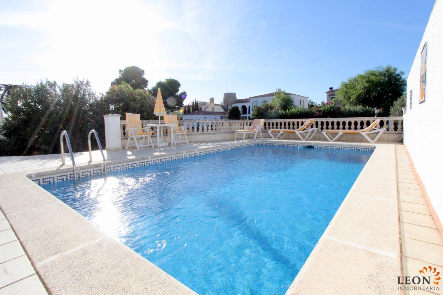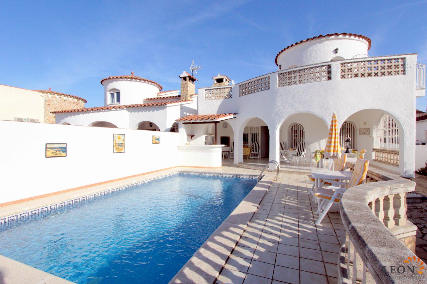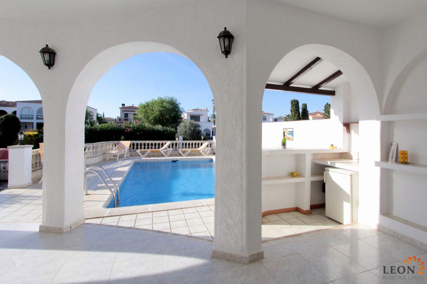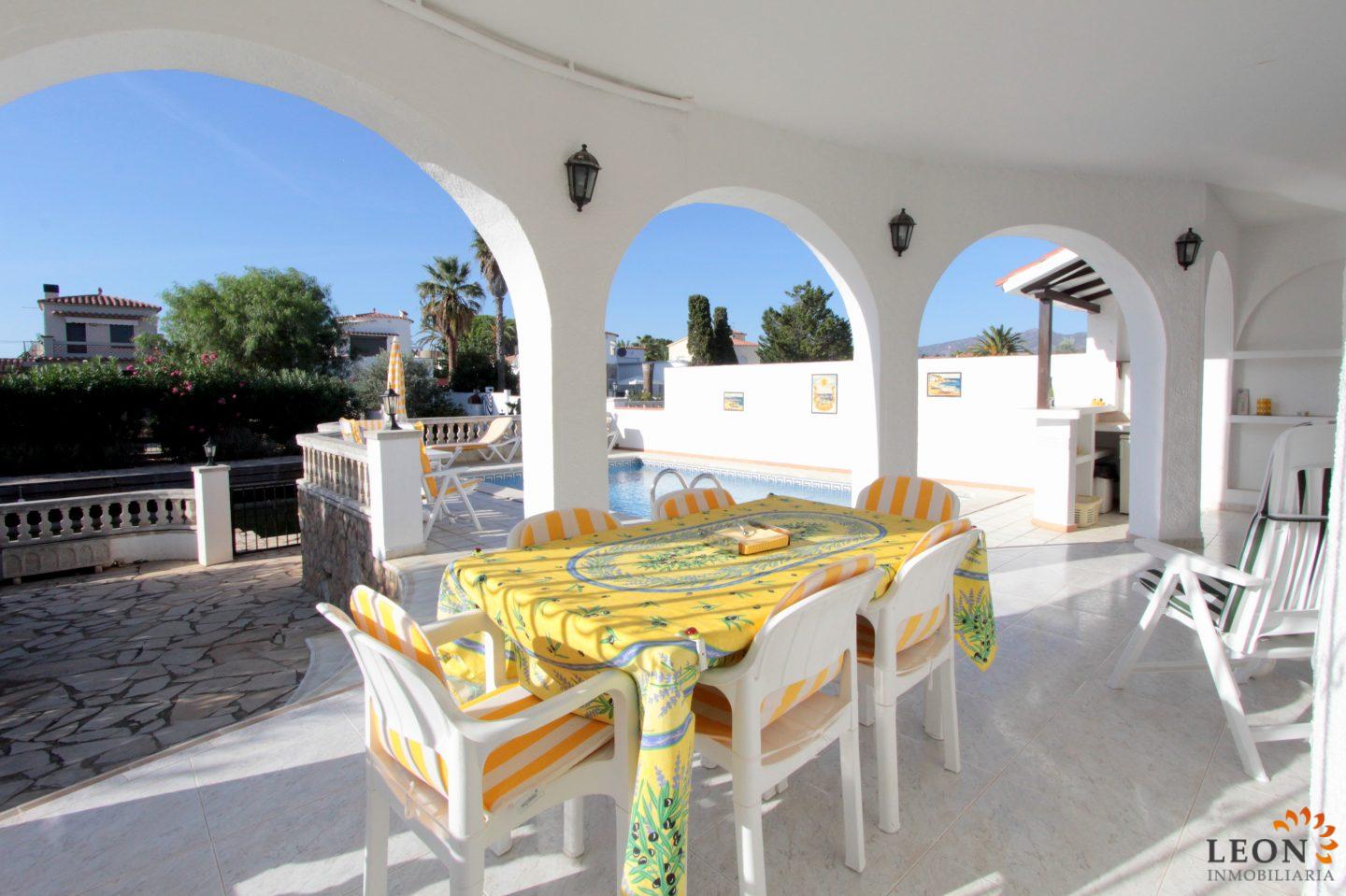 Ця чудова і акуратна вілла з житловою площею 120 м ², розташована на красивому ділянці, площею 500 м ². В основна частина будинку розташовані відкрита вітальня з повністю обладнаною кухнею, з посудомийній і пральною машиною, в американському стилі створює комфортну і світлу атмосферу, 2 великі спальні. Третя спальня з ванною кімнатою перебувати в башті з окремим входом і великим балконом. На відкритій майданчик розподілена крита тераса з барбекю і баром, з видом на красивий басейн. Вихід з тераси до прекрасного внутрішнього дворику з чудовим видом на канал, дає доступ до особистого причалу. Поруч з будинком є вулична парковка. Найкращі ресторани, магазини і пляж з дрібним піском знаходяться в лічених хвилинах ходьби від вілли, завдяки своєму центральному розташуванню. Крім того, Емпуріабрава і околиці пропонують величезний вибір розваг, різні види водного спорту, гольф, стрибки з парашутом, а також багато культурних пам'яток. Для отримання додаткової інформації про цей об'єкт, або інший ексклюзивної нерухомості Іспанії, будь ласка, зв'яжіться з LEON Inmobiliaria по електронній пошті або по телефону нашого головного офісу в Емпуріабрава (Empuriabrava): (+34) 972 45 00 37.