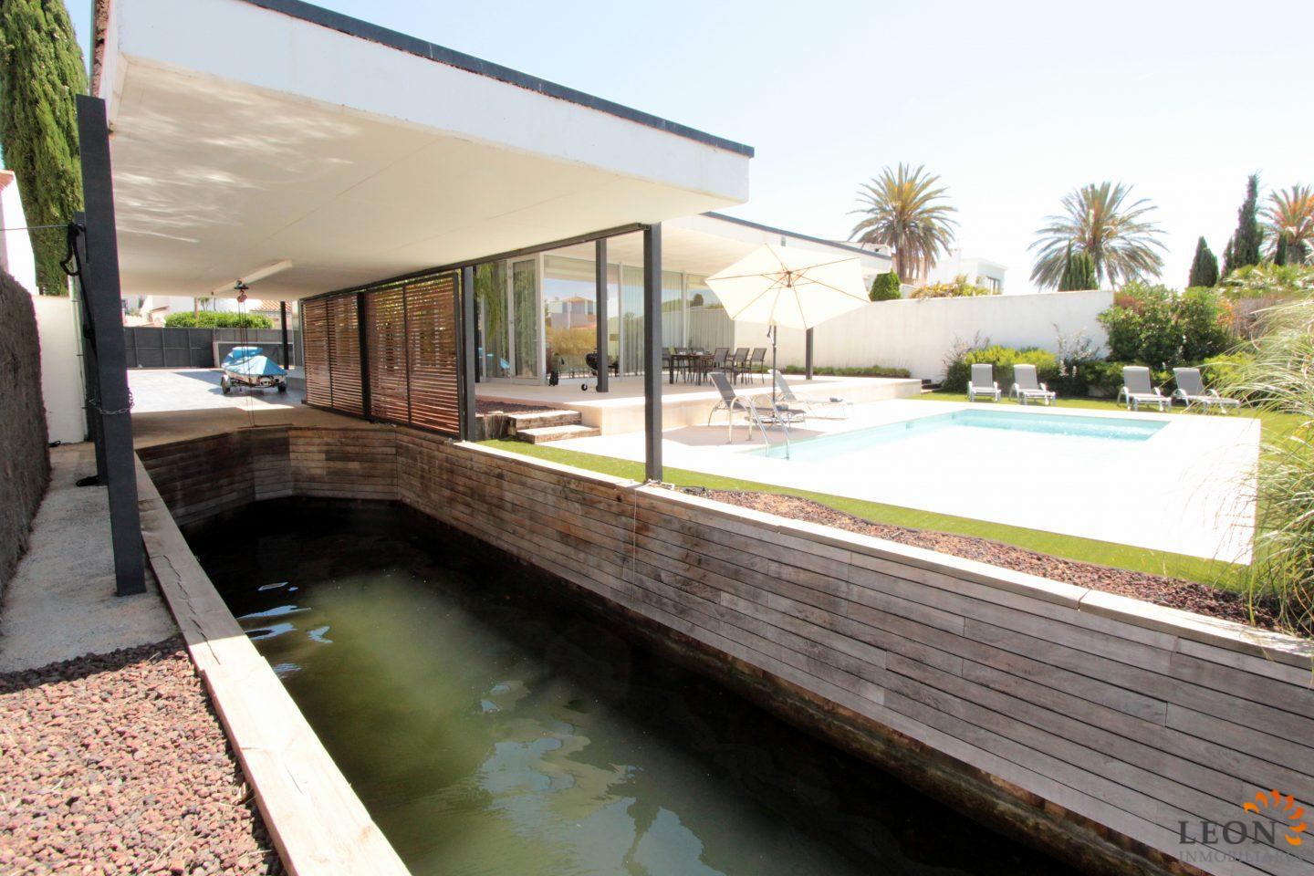 Дом-Лофт обставлен элегантно и роскошно, с уютной гостиной-столовой и с выходом на великолепную террасу с бассейном и причалом 22 м. В доме 3 спальни ( спальни с разделением - раздвижные двери), каждая спальня имеет собственную ванную комнату. Со стороны входа в дом расположена полностью оборудованная кухня. Дом оснащен системой центрального кондиционирования, Wi-Fi, спутниковым телевидением, садовой мебелью, штора, итд... Останні 4 фото виставлені на продаж, можливо будівельний проект в 3D, в разі купівлі, якщо ви захочете надбудувати ще один поверх. Майно знаходиться недалеко від центру Empuriabrava, всі зручності поруч, гарний золотий піщаний пляж Empuriabrava, ресторани, супермаркети, все в декількох хвилинах ходьби. Також історичне місто Castelló d'Empúries, Roses або чарівний Cadaqués з його ідилічною гаванню знаходяться в межах легкої досяжності на машині. Empuriabrava розташований в затоці Roses, в оточенні природного парку «Ельс-Айгуамоллс» і є найбільшою житлової гаванню в Європі, протяжністю 24 км. До великої кількості культурних пам'яток можна дістатися за півгодини на машині, наприклад, в музеї Далі в Фігерас, руїнах Ампурія і монастирі Сан-Пере-де-Родес. Красивые пляжі затоки річки знаходяться в межах легкої доступності. Для отримання додаткової інформації про цей об'єкт чи про інші властивості в Іспанії, будь ласка, зв'яжіться з Leon Inmobiliaria по електронній пошті або по телефону в нашому головному офісі в Empuriabrava: 0034/972 45 00 37.